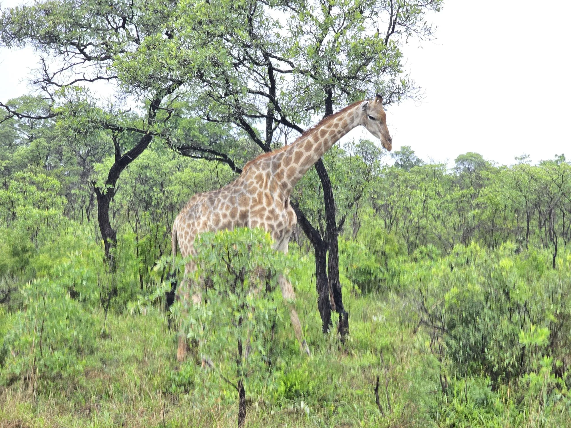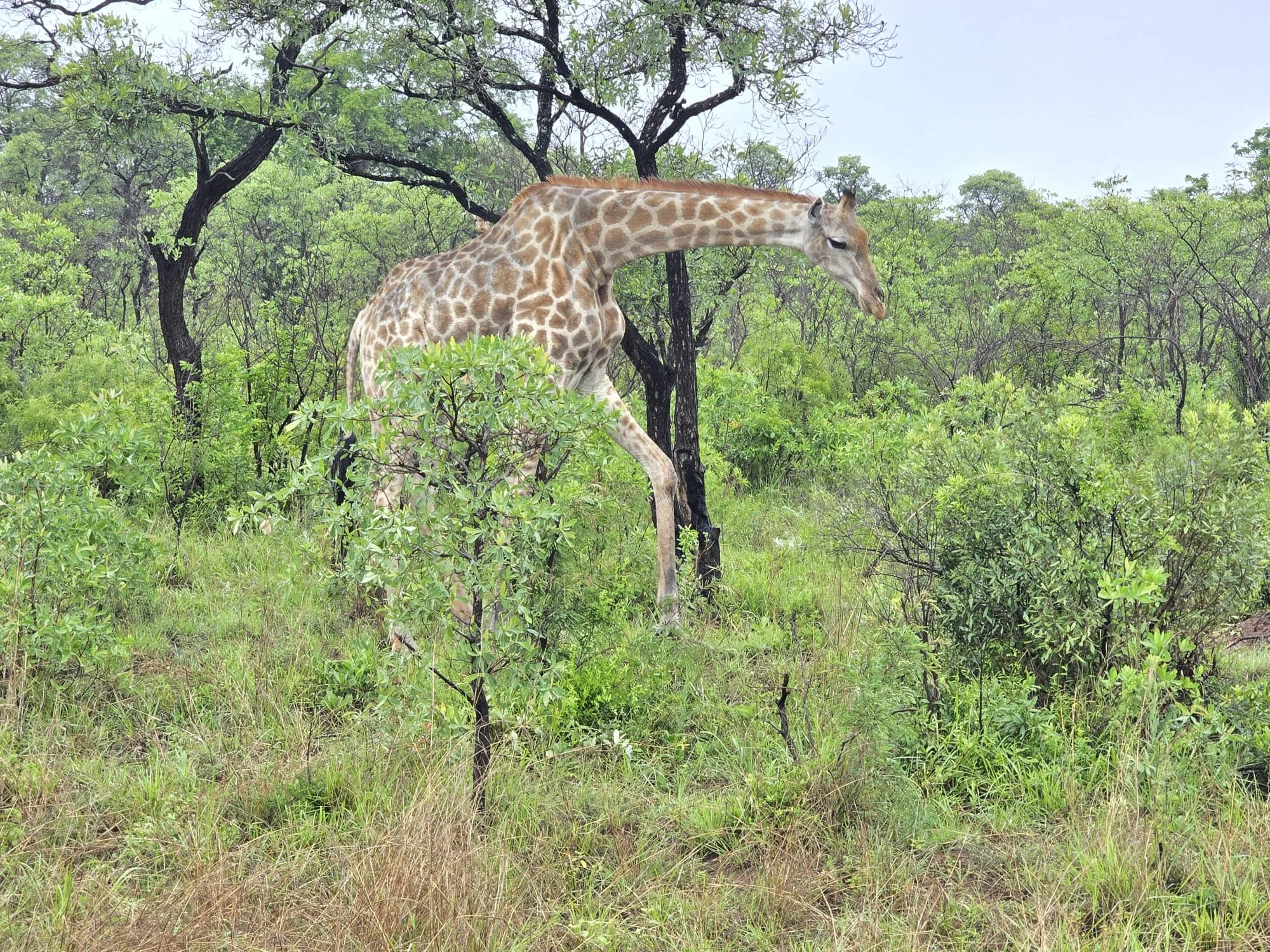 Aamulla satoi, vaikka olisi saanut paistaa. Lämpöä oli vain +11 C, vaikka olisi voinut olla +25C. Upeaa auringon nousua ei näkynyt lainkaan, koska taivas oli täysin pilvessä. Klo 5.30 lähdettiin tyylikkäästi ajamaan Safari Pick Upin lavalla keltaiset sadeasut hulmuten kohti Krugerin luonnonpuistoa. Meno oli kun prätkän selässä olisi ollut, ainoastaan kypärä ja ajovarusteet puuttuivat. Jaoimme ryhmän puoliksi, jolloin yhteen ajoneuvoon mahtui mukavasti 6 henkilöä kahdella autolla ajaen.