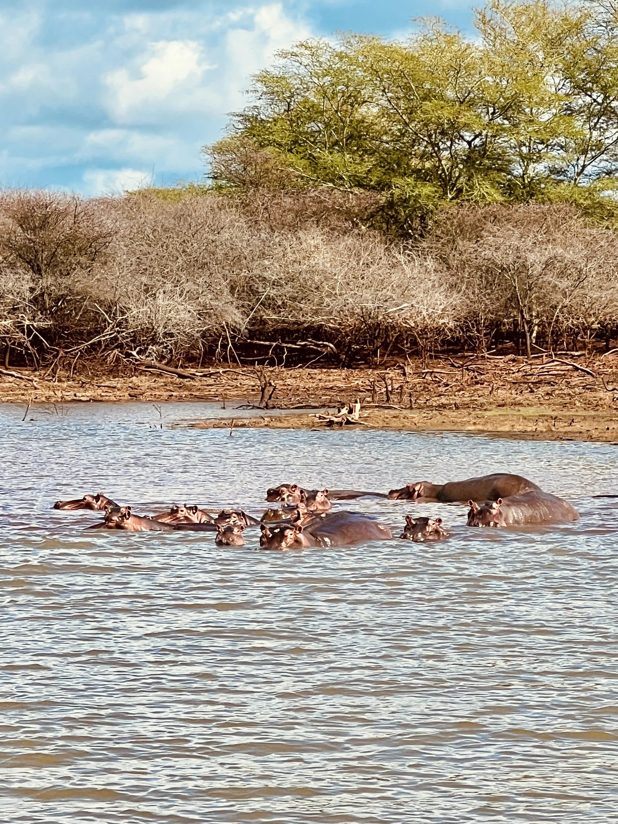 Näimme kymmenittäin virtahepoja, krokotiilejä, vesilintuja, villisikoja ja tulvan tukahduttamia pensaikkoja sekä vedessä uivia monneja. Upeiden maisemien lisäksi tietenkin.