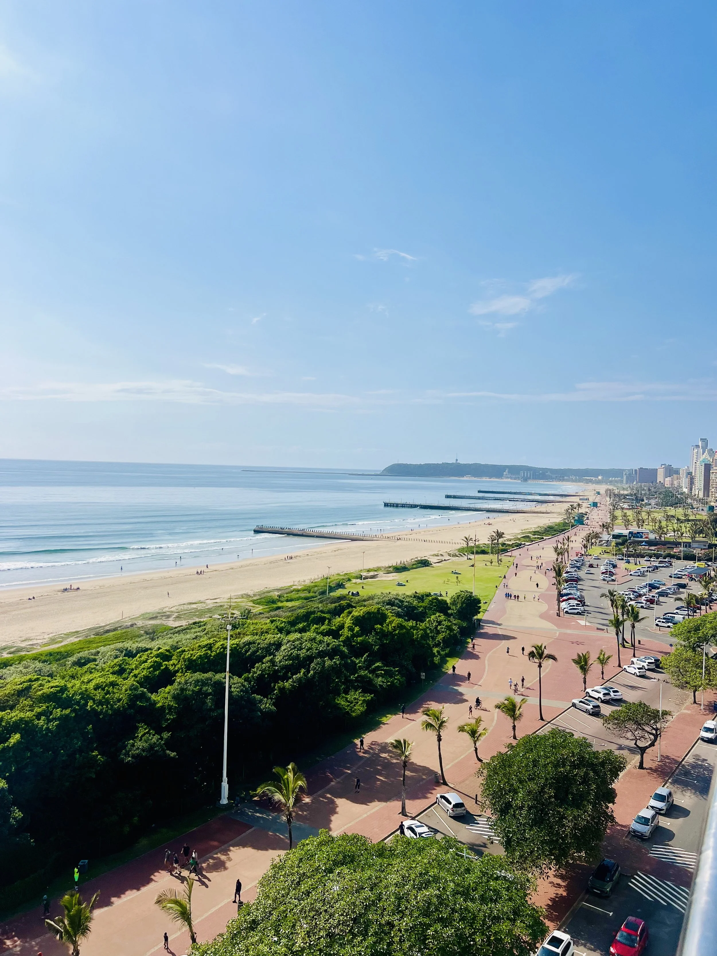 Durbanissa aurinko nousi jo klo 4.30. Lämpötila kipusi jo aamun tunteina + 23 C.n tuntumaan. Durbanin kuusi kilometriä pitkän Golden Mail -rannan kävelykatu suorastaan vilisi aamulenkillä olevia ihmisiä.