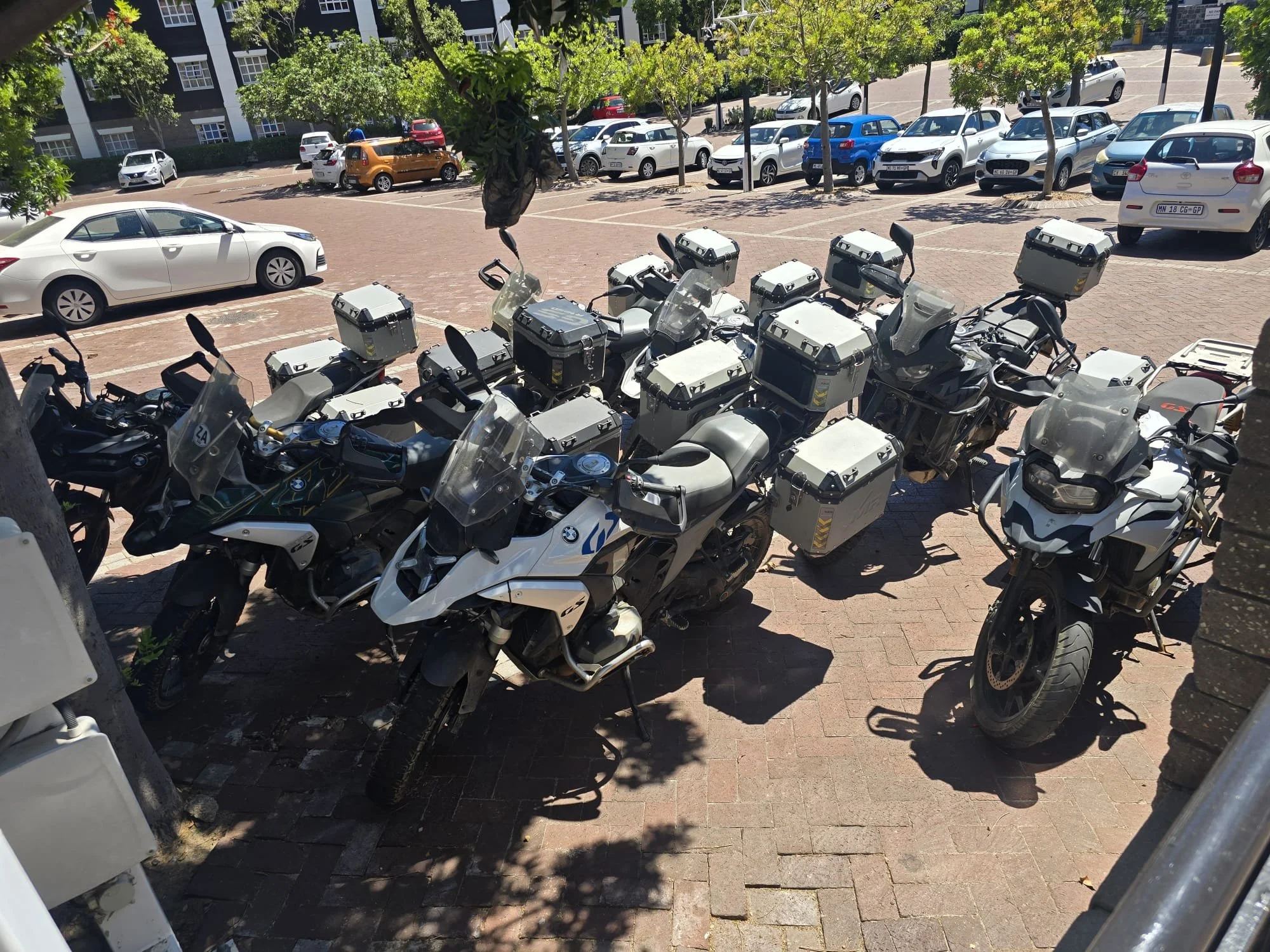 Ajopeleinä meillä oli upo-uudet R 1300 Gessut, neljä kappaletta, sekä F 800 Gessut, kaksi kappaletta ja yksi Africa Twin. Yhteensä seitsemän pyörää, 14 sylinteriä ja 8000 cc, eli kuutiota. Yhteistehoa noin 1000 hv.