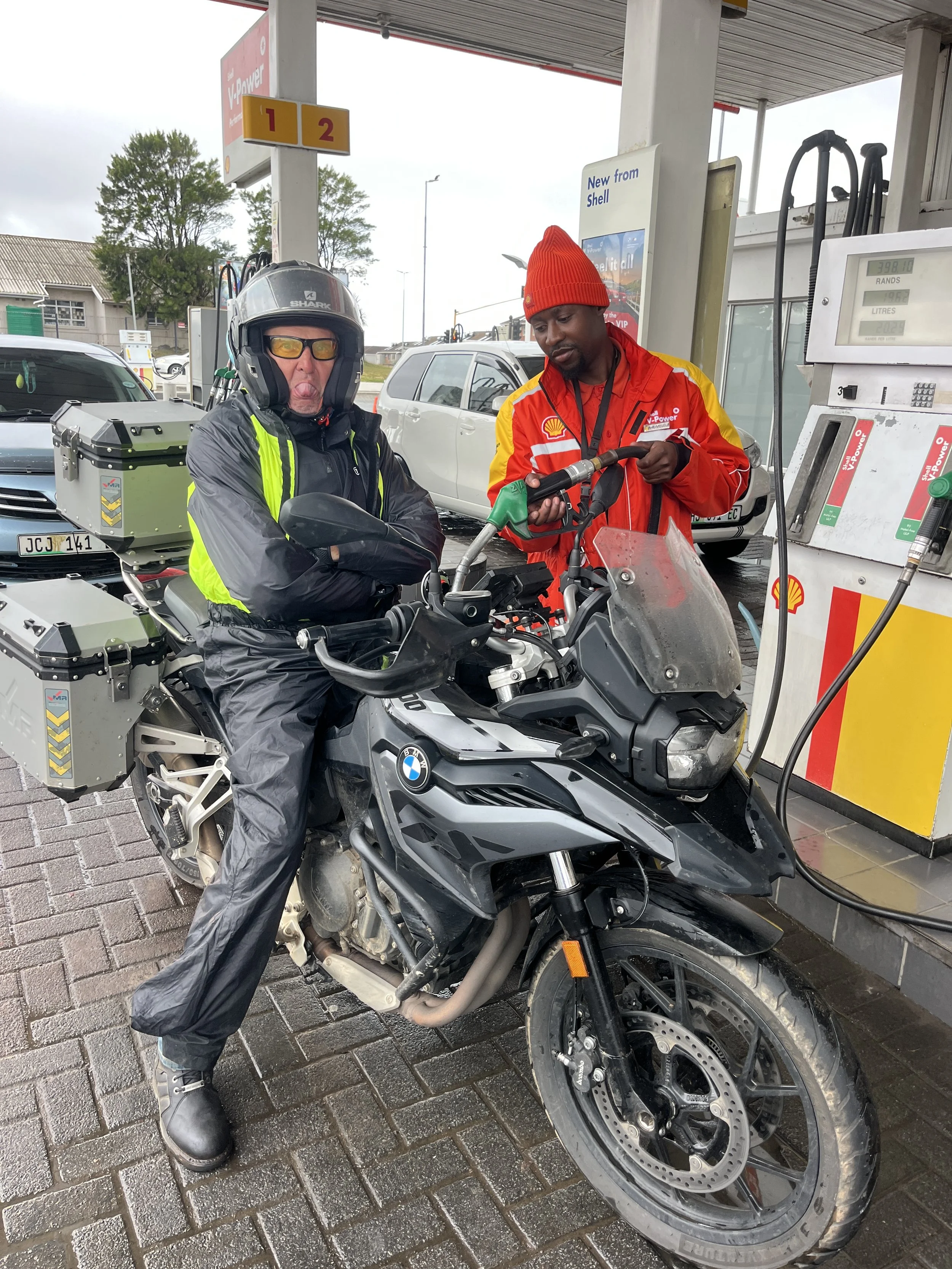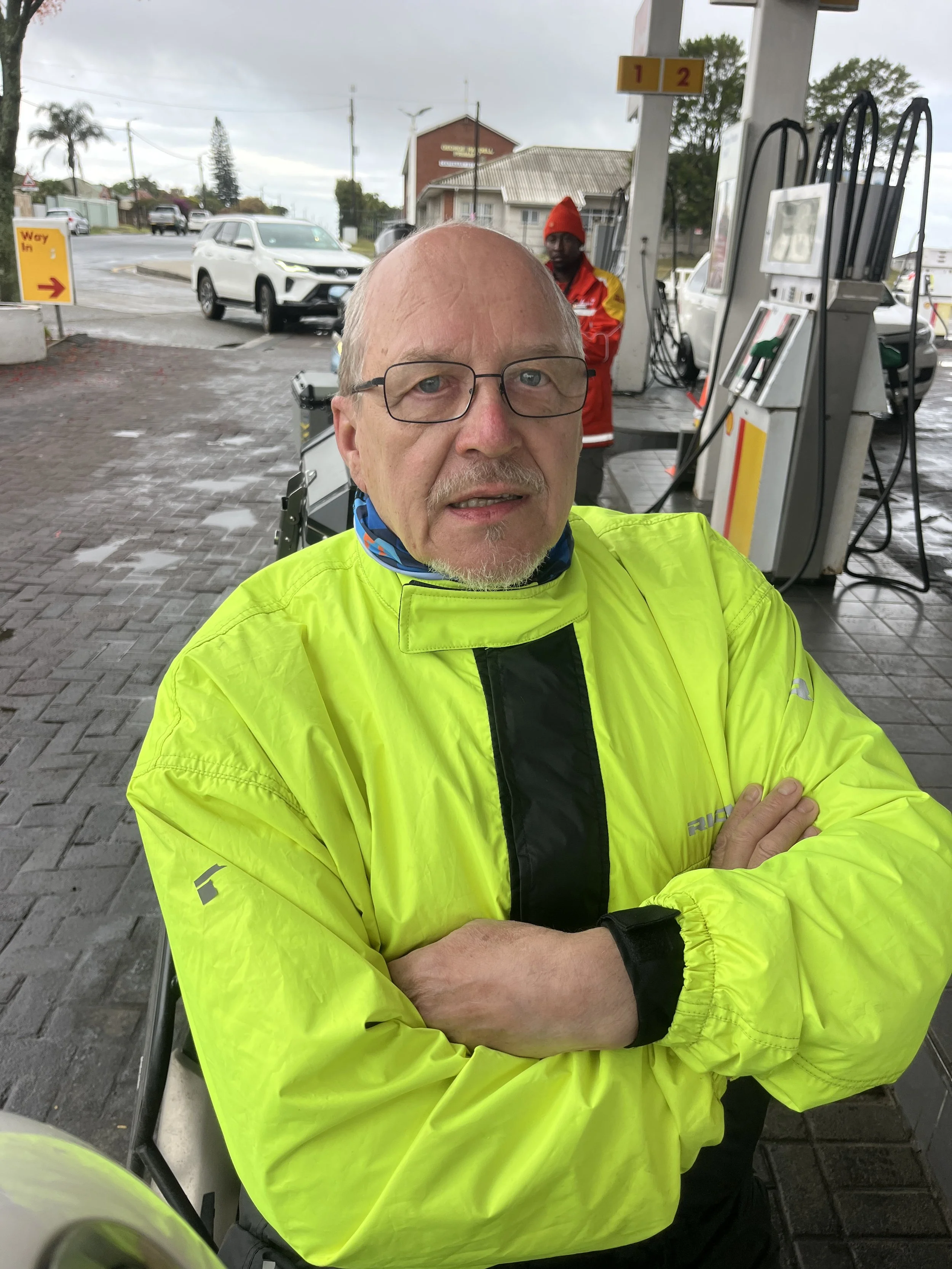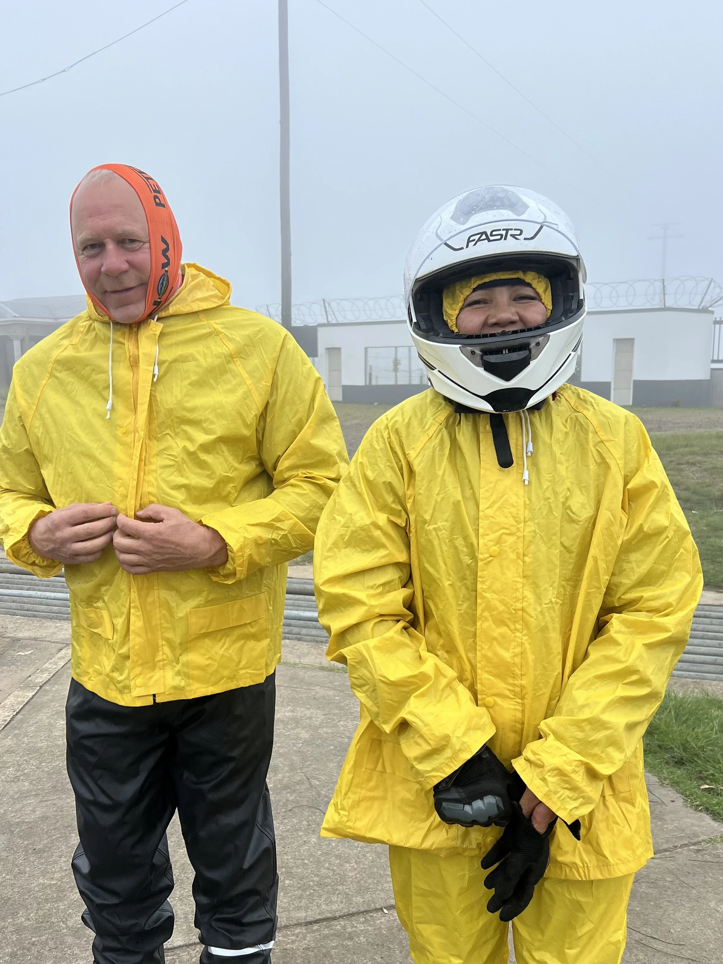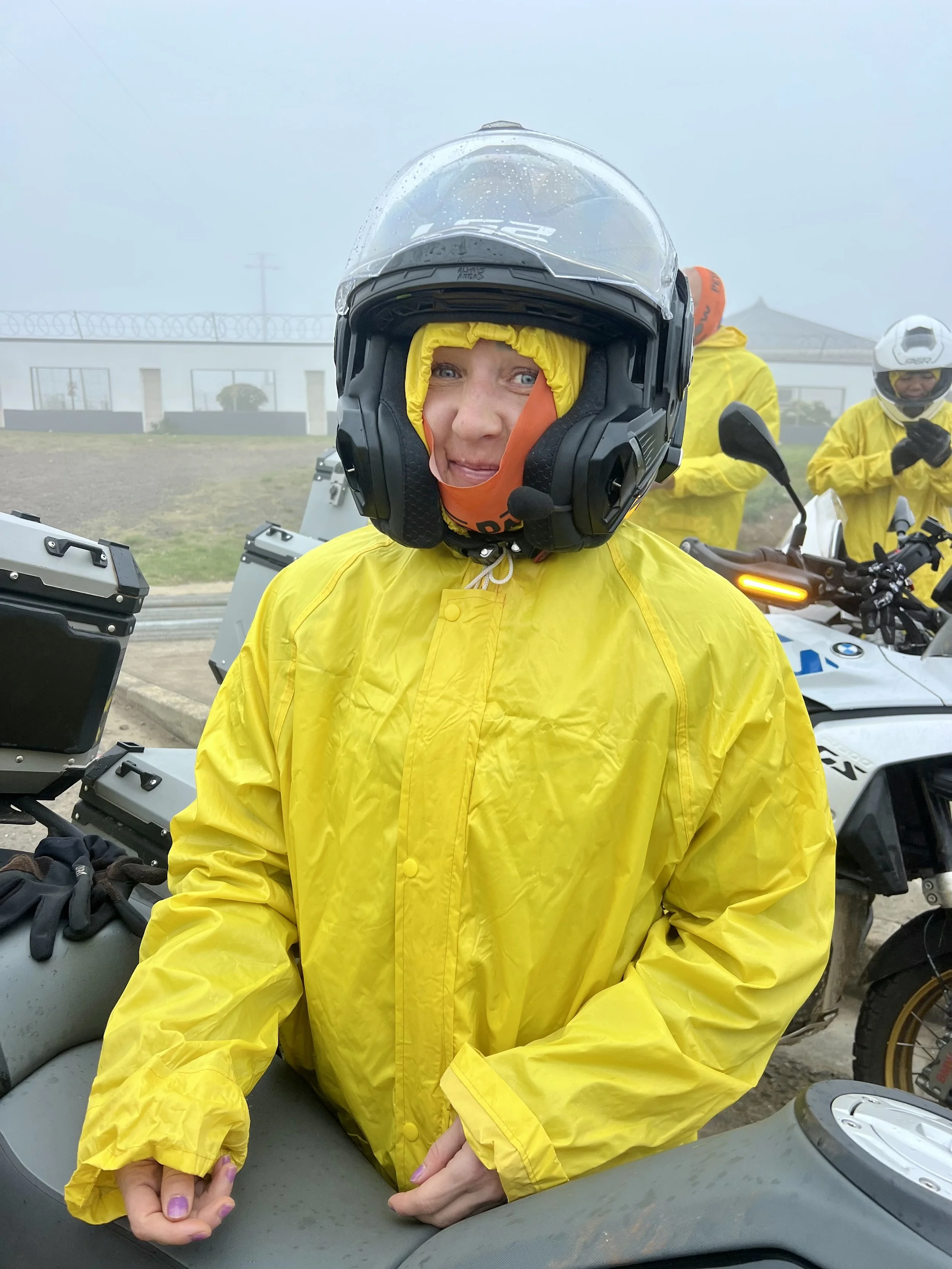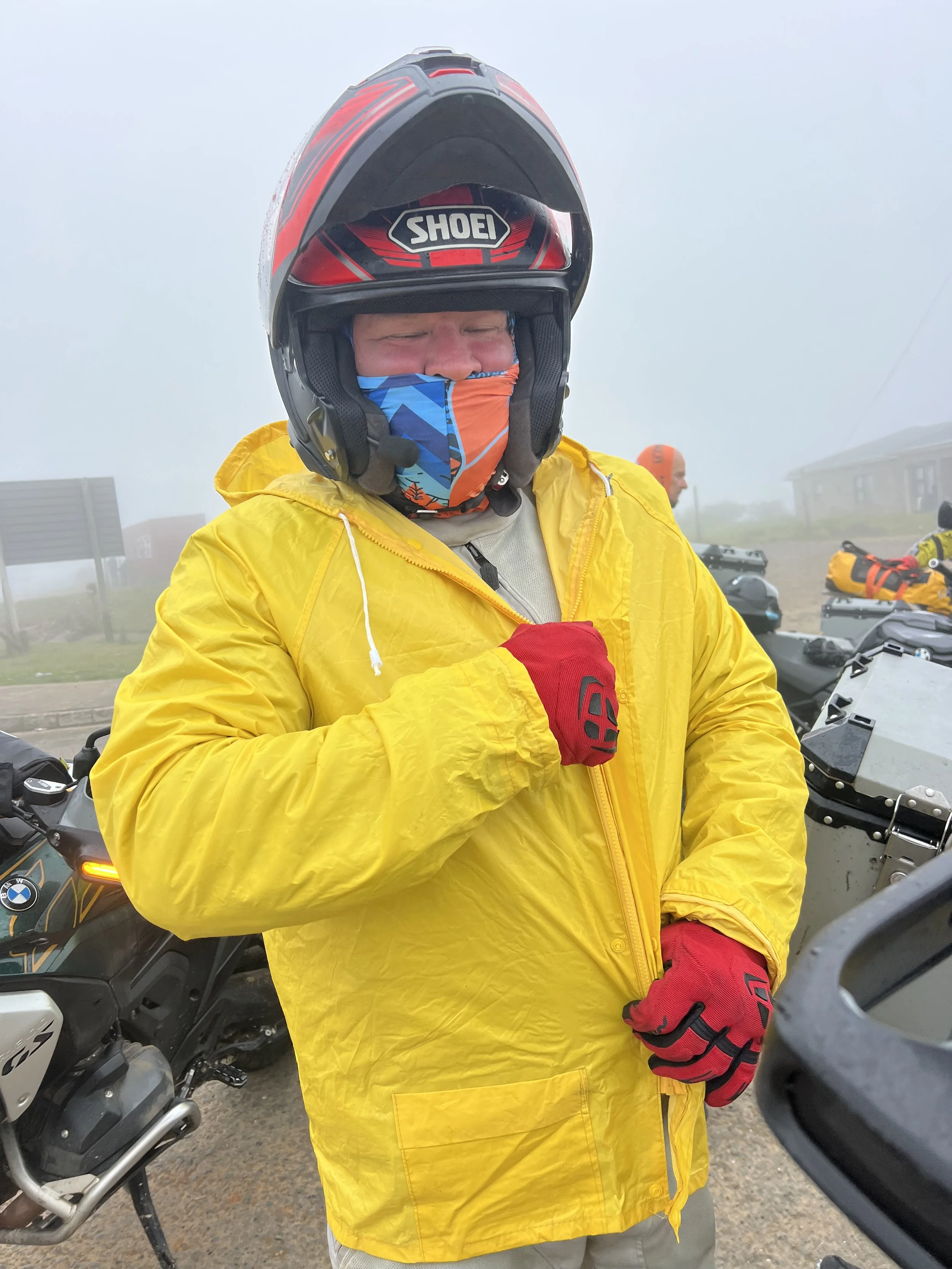 Seurueemme eteni hernerokkasumussa jälleen kuin ankan poikaset, iloisen keltaiset, Johannesburgista hankitut sadeasut päällä. Matkaa taitettiin hätävilkut päällä havaittavuuden parantemiseksi, sillä paikoin näkyvyys oli vain noin 50 metriä. Paikallisia autoilijoita tämä ei tuntunut haittaavan, sillä harva oli huomannut laittaa autonsa valoja päälle lainkaan. Autoja putkahteli kuin tyhjästä näkökenttään, ymmärrettävästi. Ennen East Londonia päätettiin palata takaisin rannikon tuntumaan selkeämmän näkyvyyden toivossa.