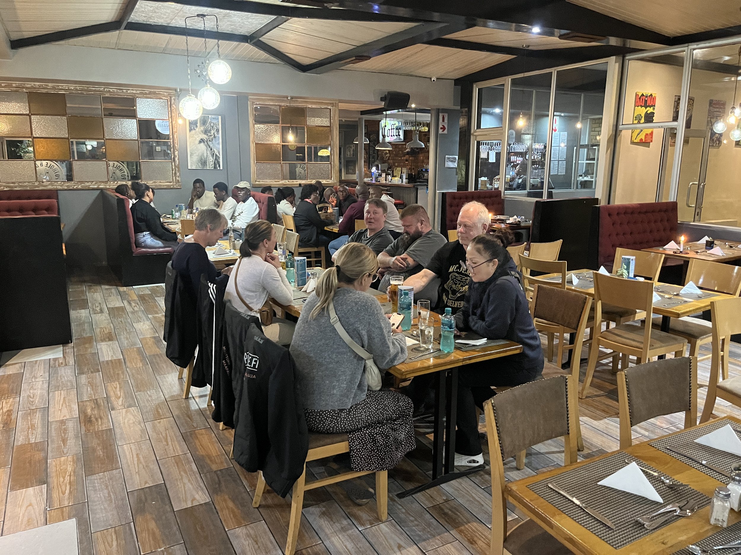 Varsinaista vaaraa tai uhkaa emme ole kokeneet missään vaiheessa matkaa, ja matkan teko tuntuu turvalliselta, vaikka joku Polo kuljettaja onkin esitellyt kuinka autolla pitää ajaa. Liikenne on usein afrikkalaisen joustavaa jossa ei turhia pysähdellä ja nopein ehtii ensin… Erityisesti Toyotan Van “lähiliikenne kuskit” ovat erityisen luovia tässä, hätävilkut päälle vaan ja olet vapaa toteuttamaan itseäsi.