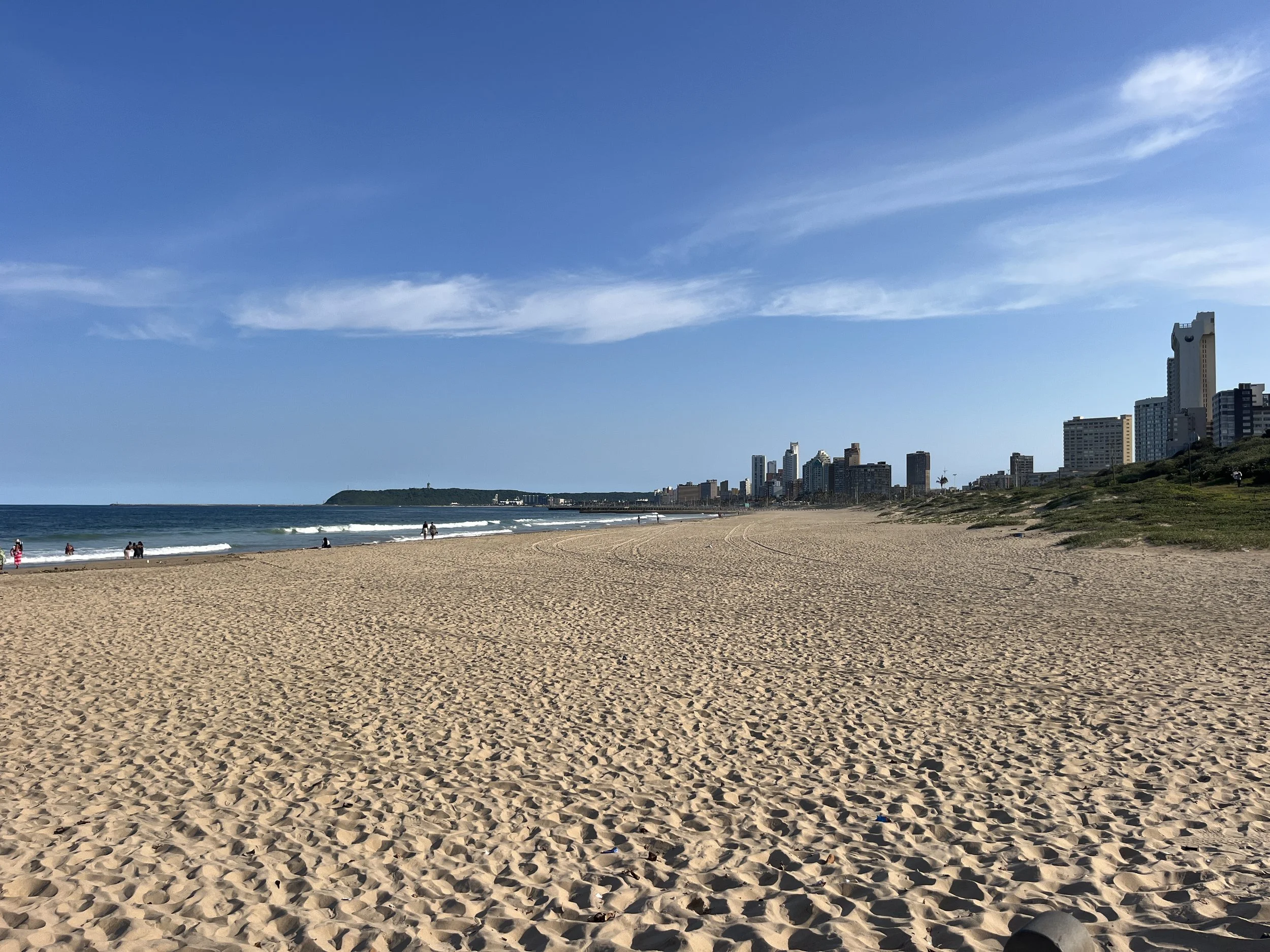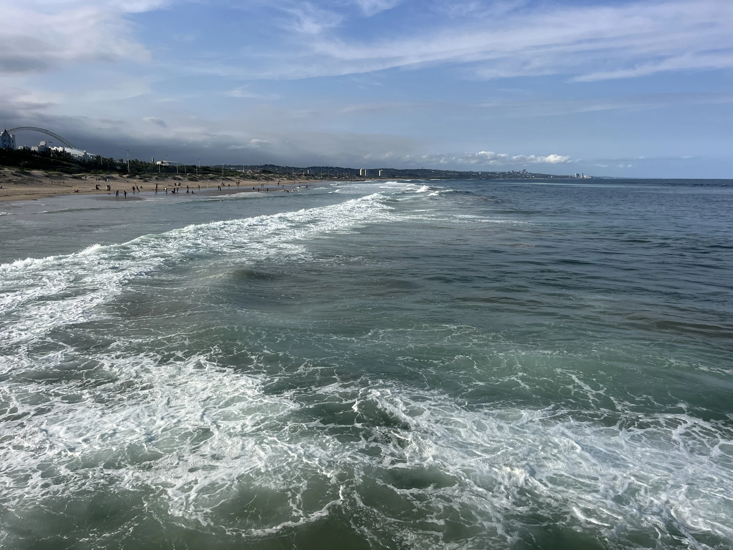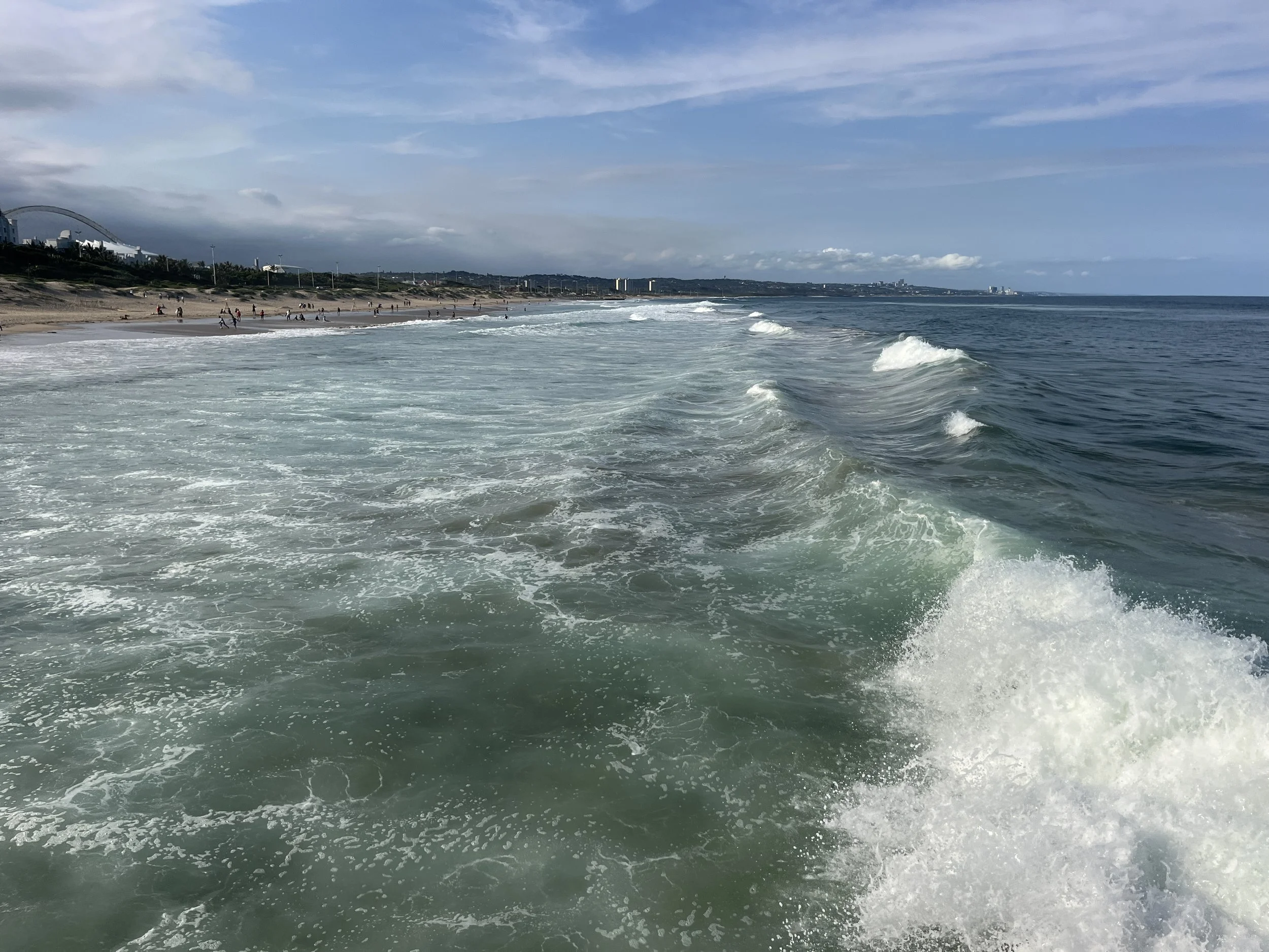 Ensimmäinen kosketus Intian valtamereen tehtiin heti, kun päästiin rannikon tuntumaan noin 30 km ennen Durbania. Uiminen meresä oli kielletty Hai -uhan takia. Se ei meitä juurikaan haitannut, koska emme edes aikoneet mennä uimaan.