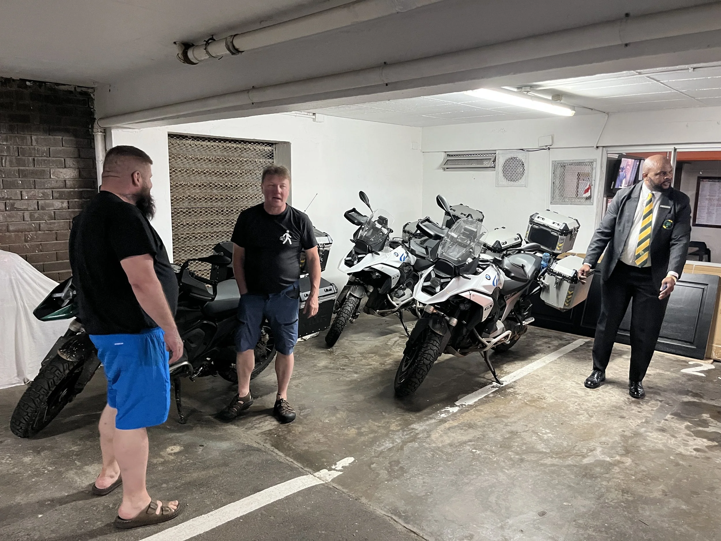 Illlan päätteeksi pyörät siirrettiin kadulta hotellin autoitalliin yöpymään, varma on varmaa ja jämpti jämptiä.