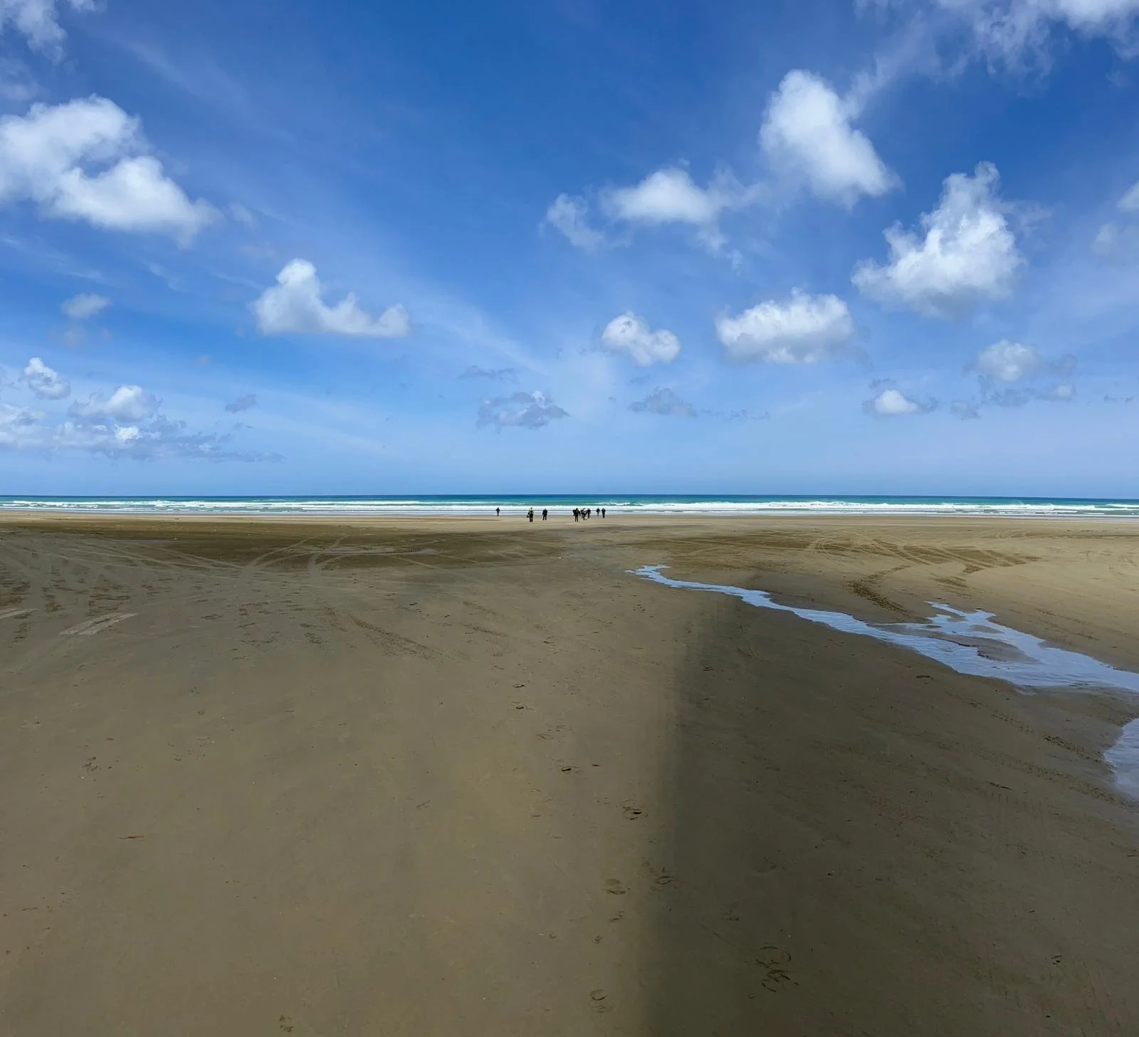Tämän jälkeen keulat takaisin sinne, mistä tultiinkin, muutamalla pysähdyksellä. Ensin jäätelö/piirakkatauko ja sitten aivan järjettömän isolle 90 Mile Beachille, jonne päästäkseen täytyy ajella hiekkaista metsätietä tovin matkaa.