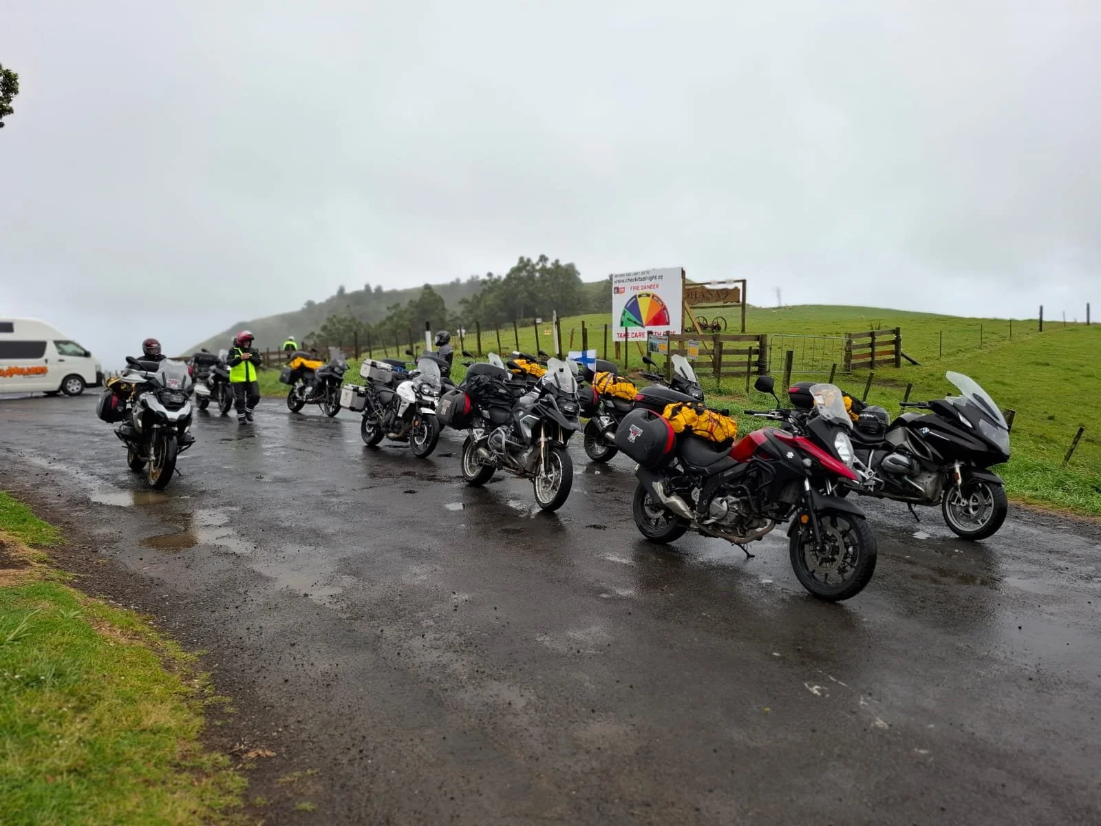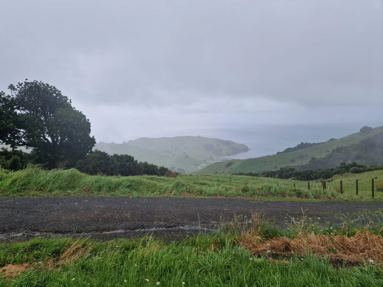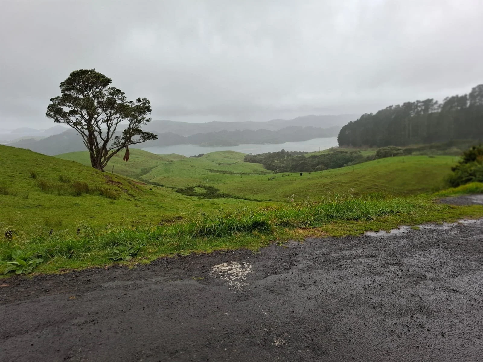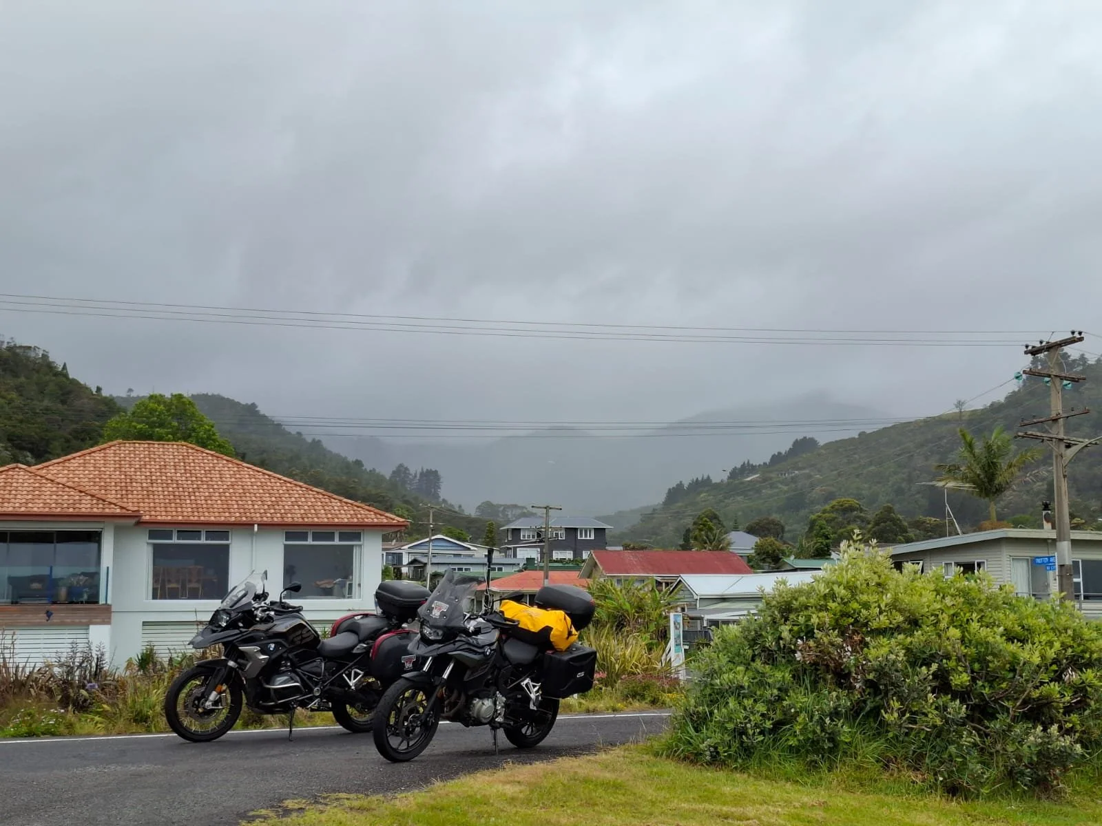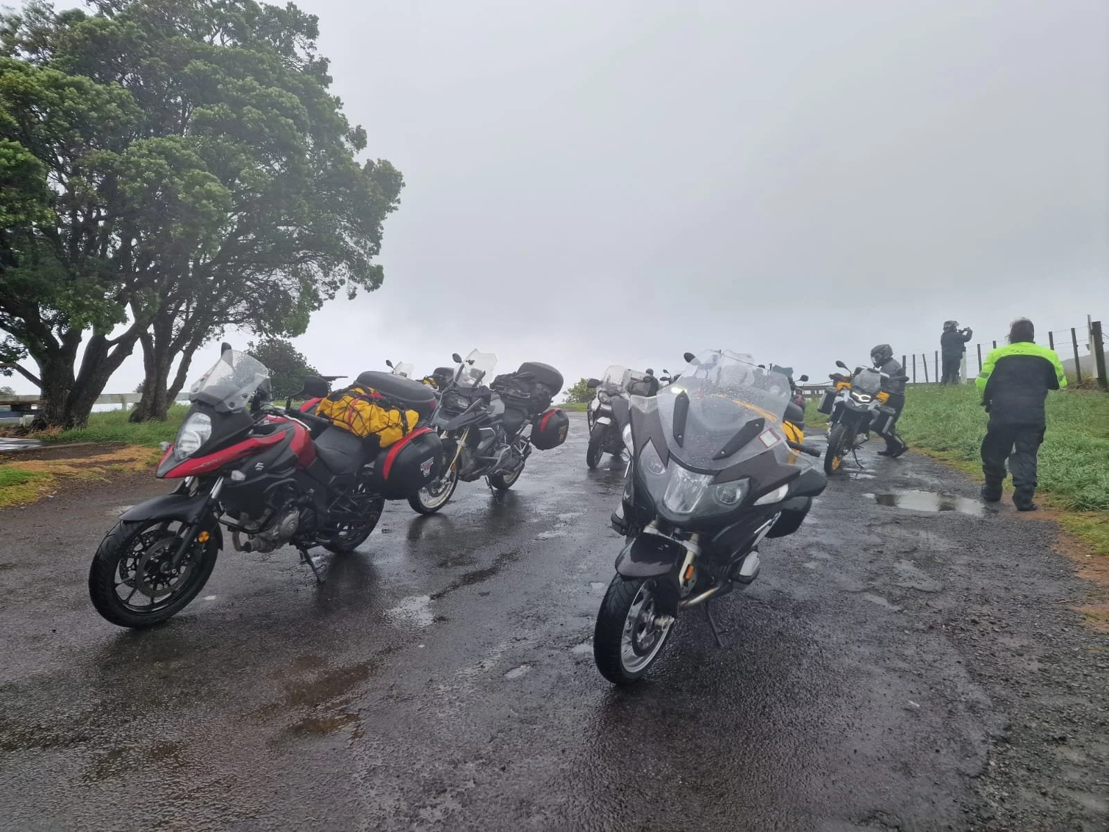 Kahden aurinkoisen ajopäivän jälkeen päästiin sitten ajelemaan sateessakin. Aamu alkoi aamiaisella kyläkahvilassa ja ensimmäiset kilometrit Aucklandin ohitukseen asti päästiin kuitenkin kuivana. Pian sen jälkeen alkoi sade, joka kestikin sitten ihan iltaan asti.