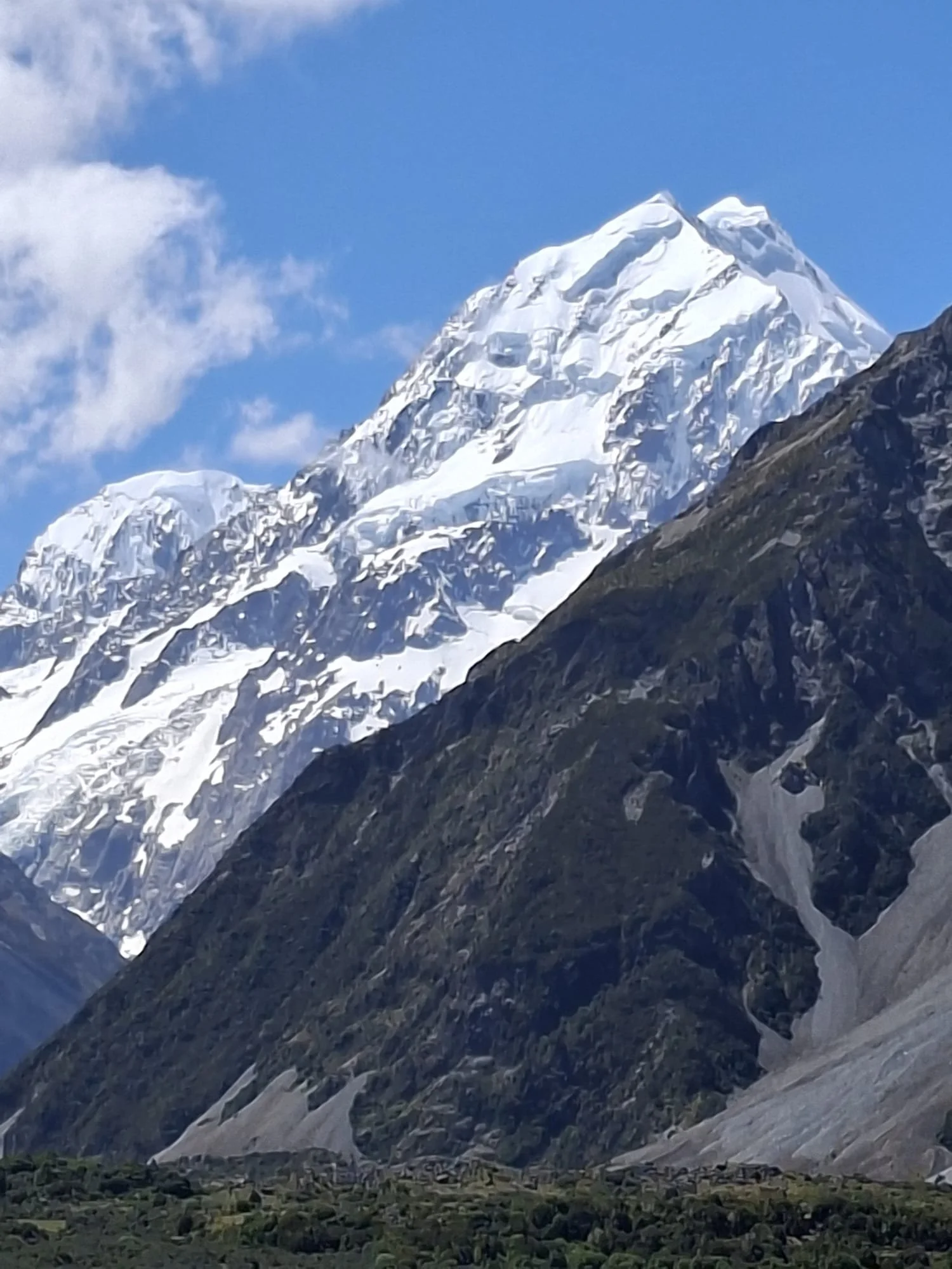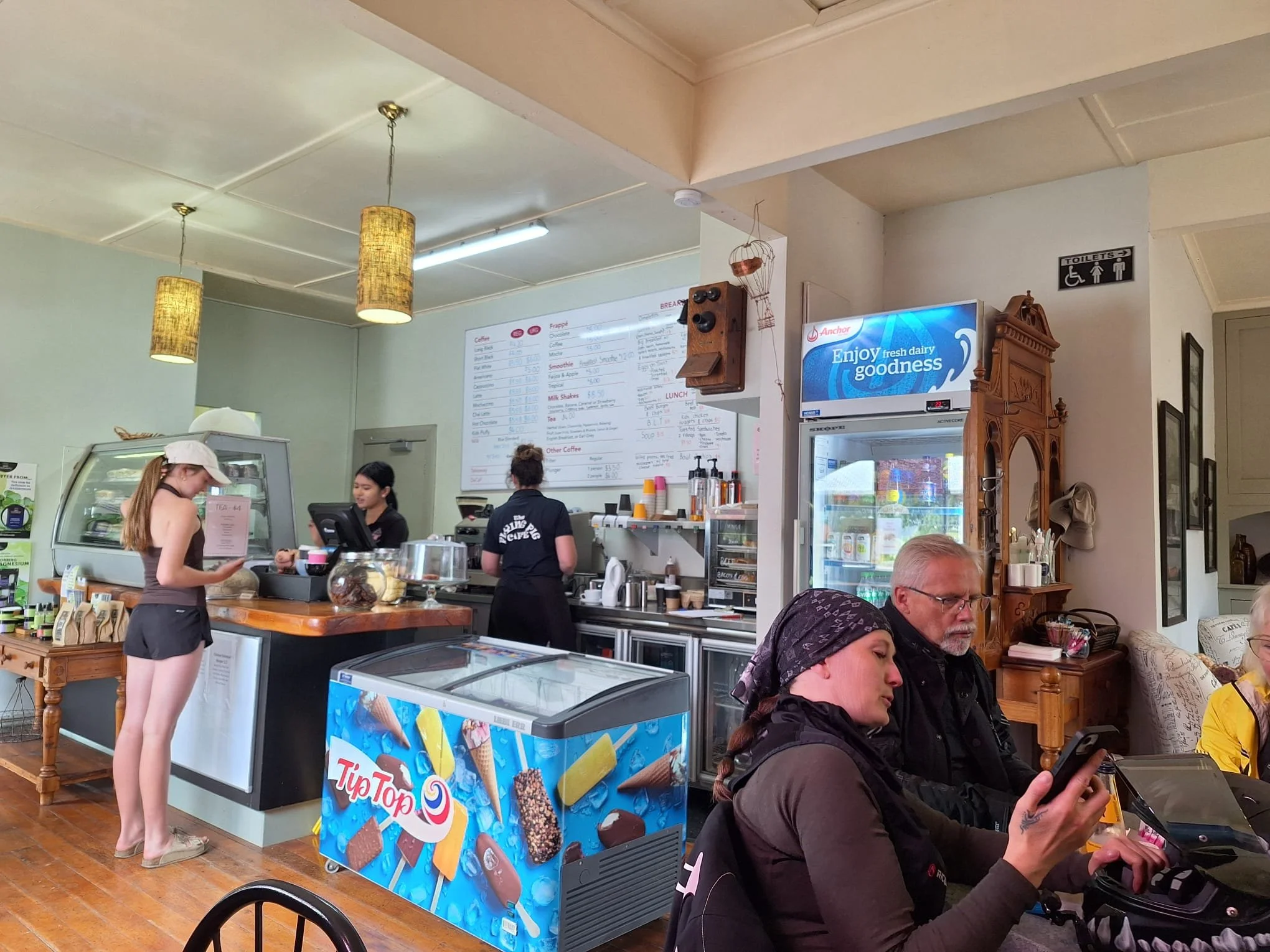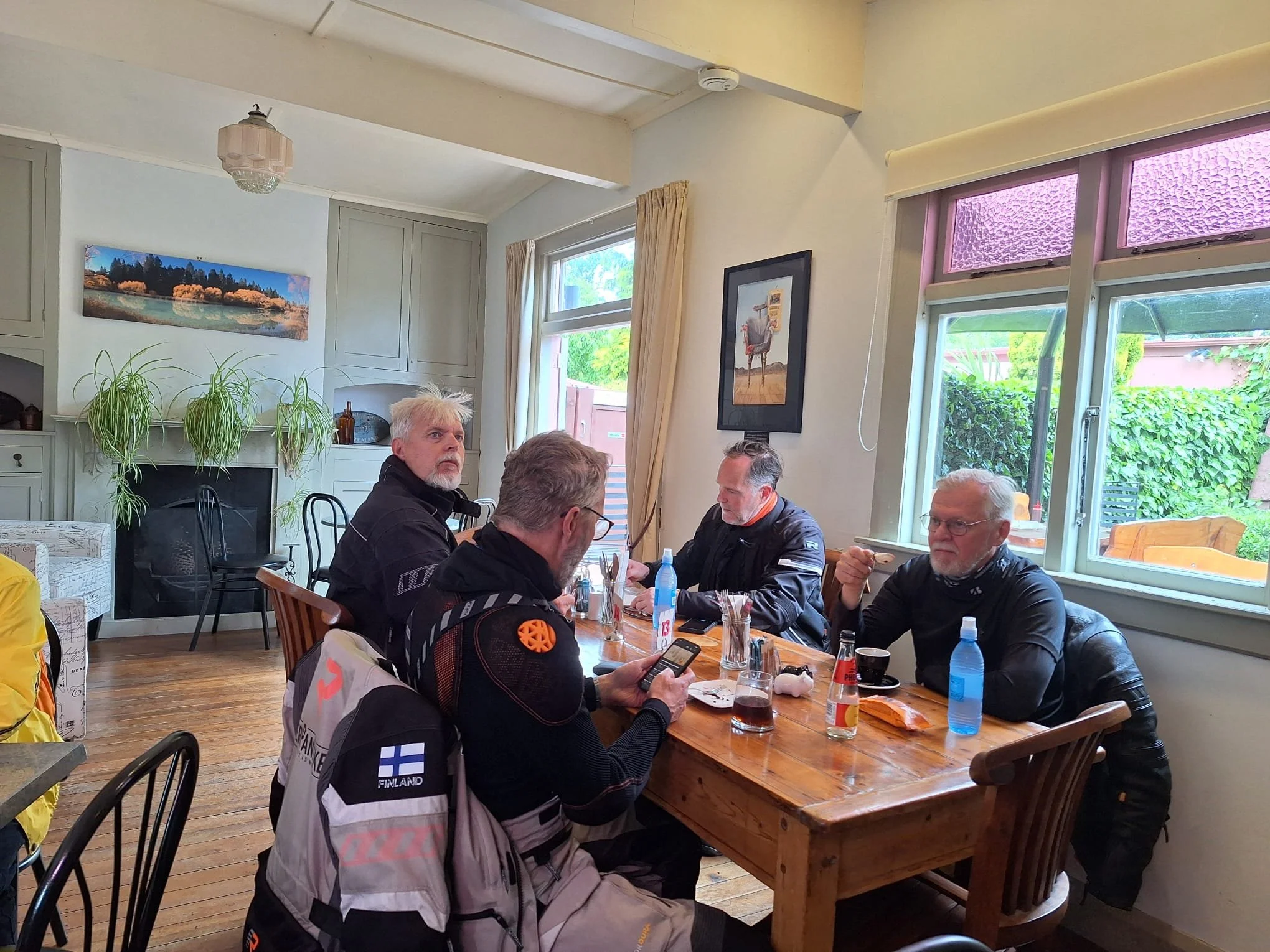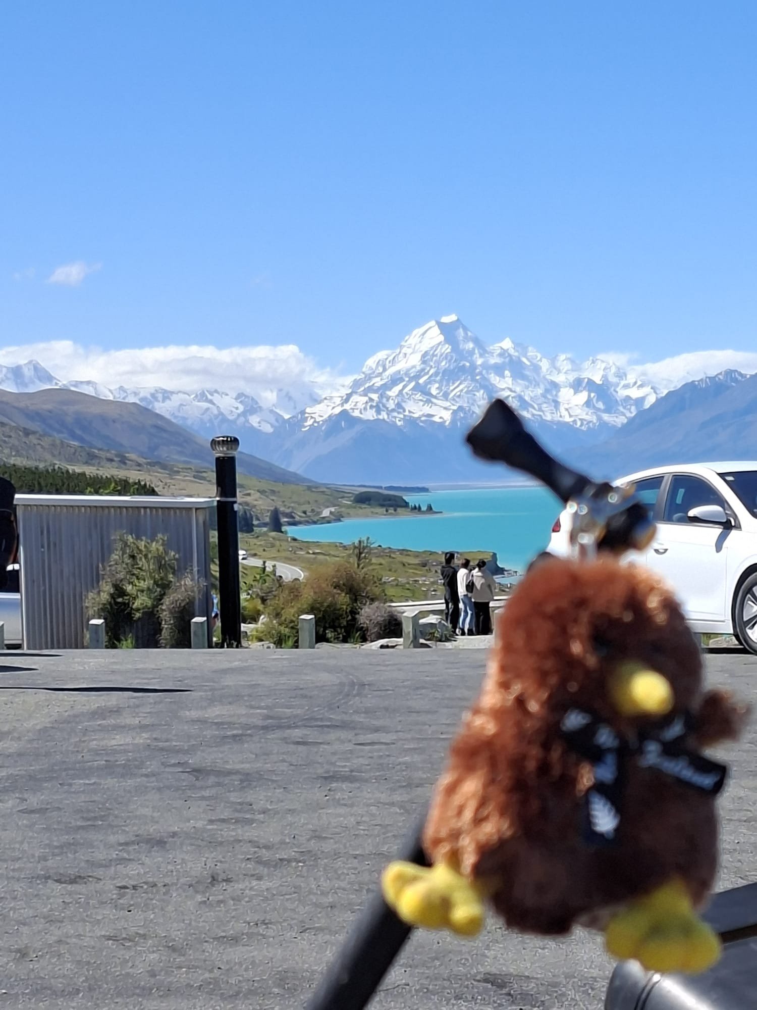 Lähtö oli sovittu 7:30, kun piti etsiä aamiaispaikka, mutta mukava hotellinjohtaja kertoikin, että melkein vastapäätä oli hyvä aamiaispaikka. Ei muuta, kun sinne ja sen jälkeen aurinkoisia teitä pitkin majesteettiselle Mount Cookille.