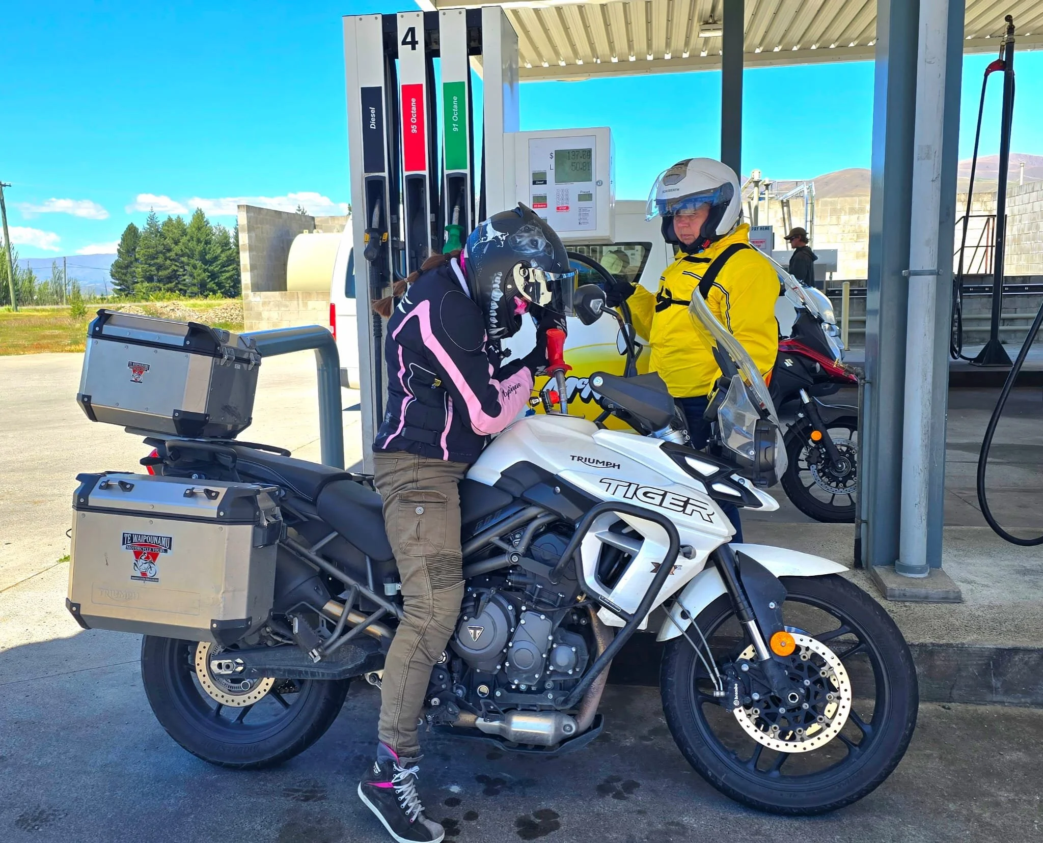 Moottoripyöräilyssä ja varsinkin tällaisessa moottoripyörämatkailussa, jossa on olemassa jonkinlainen aikataulukehys ajopäiville, ei oikein voi jäädä odottelemaan sateen loppumista – ellei sitten ole kyse jostain hirmumyrskystä. Aamiaisen jälkeen sadetta riittikin vain noin tunniksi ja taas saatiin ajaa kuivassa kelissä. Toki päivälle osui reissun kovimmat tuulet ja matkalla Bluffiin jouduttiin oikein hartiavoimin taistelemaan niitä vastaan.