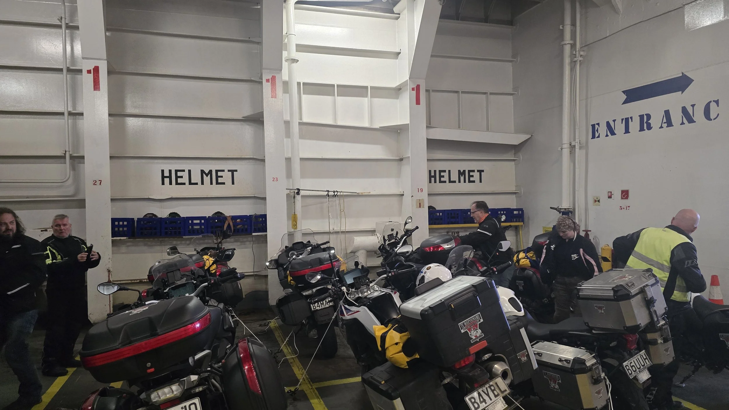 Pyörät tukevasti naruilla kiinni, kypärät seinän koreihin ja kohti aamiaispaikkaa yläkannelle.