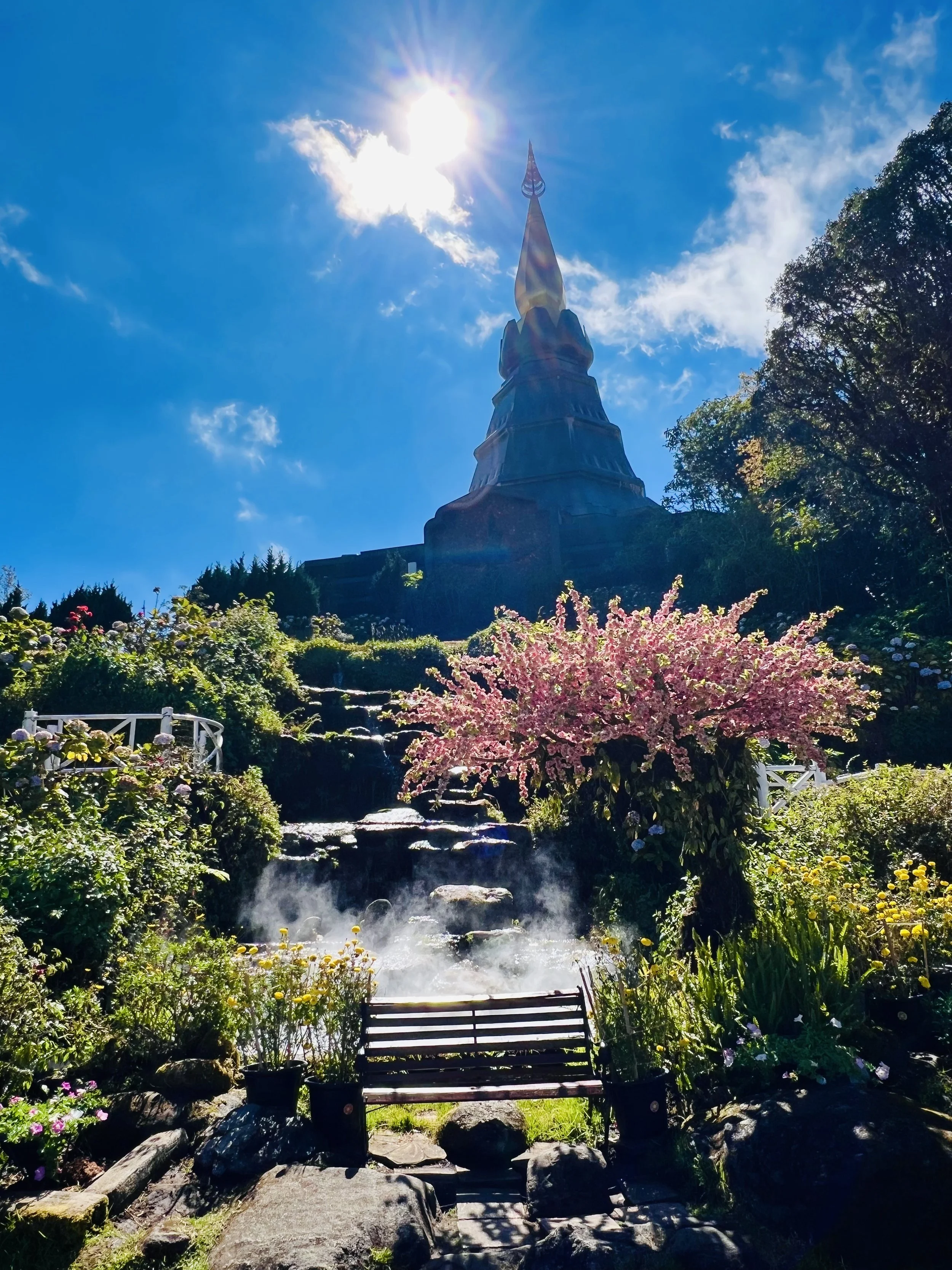 Vuorella sijaitsee myös kaksi temppeliä noin 2100 metrin korkeudessa, ne Thaimaan kuningas rakennutti kuningattarelle lahjaksi tämän 60 -vuotispäivänään, joskus 1980 -luvun lopulla. Vuorella on luonnollisesti laajat patikkaretkeilymahdollisuudet ja vuoren itäpuolella on mukavan näköisiä leirintäalueita. Tämä on hyvä tietää, jos joskus myy pyöränsä ja ostaa vaikka kunnon retkeilyvarusteet tilalle.
