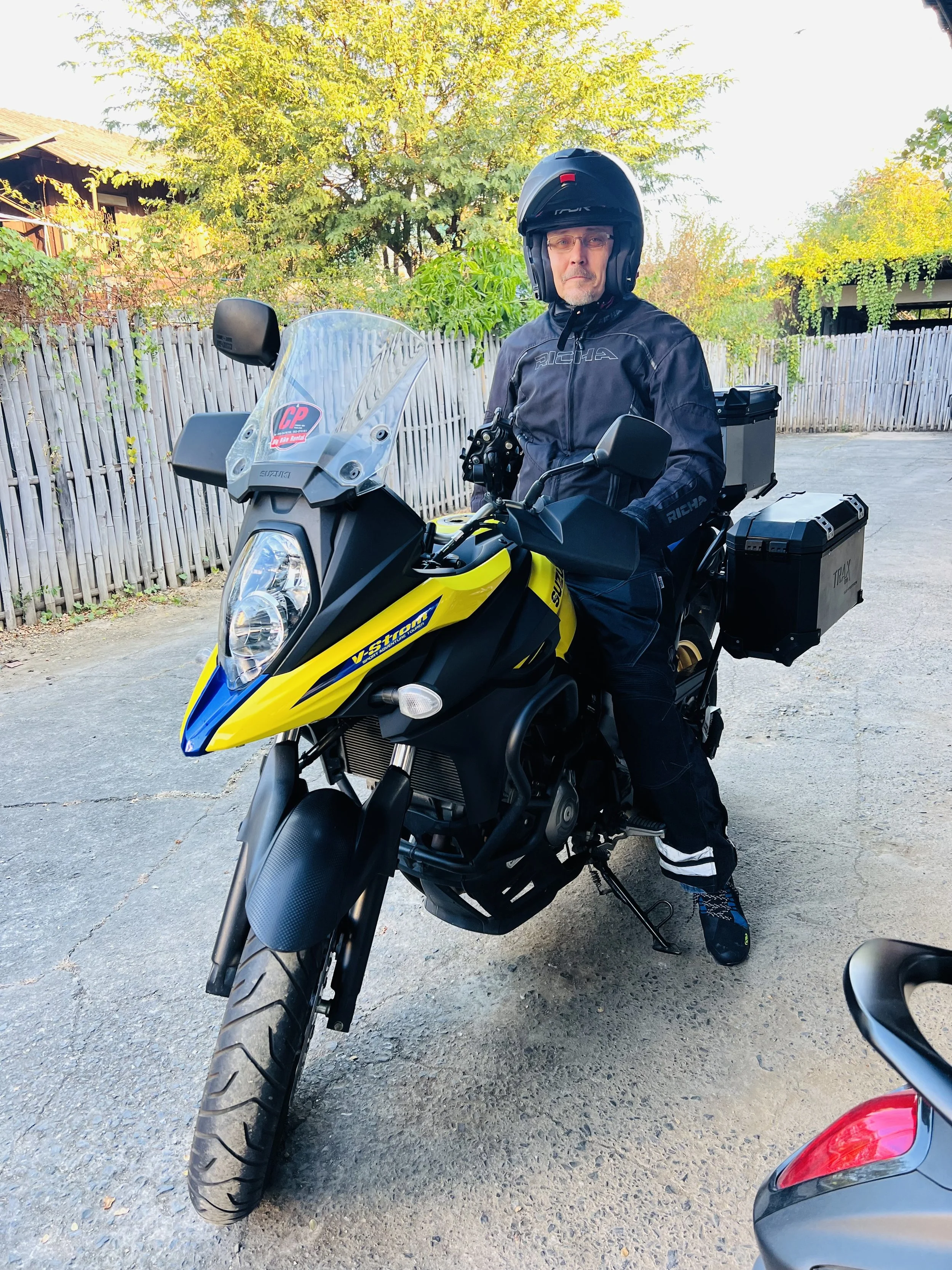 Jyrki antaa Jermiakselle ajoon liittyviä käytännön vinkkeja. Jeremiaksen taskussa on tuliterä ajokortti, joten mikäpä muutkaan, kuin Thaimaan mutkaisimmat tiet ovat luonnollisesti luontevin paikka aloittaa harrastus. Ajamaan oppii ajamalla… Jyrkin Rukka Air Tacama ajoasu hohtaa uutuuttaan.