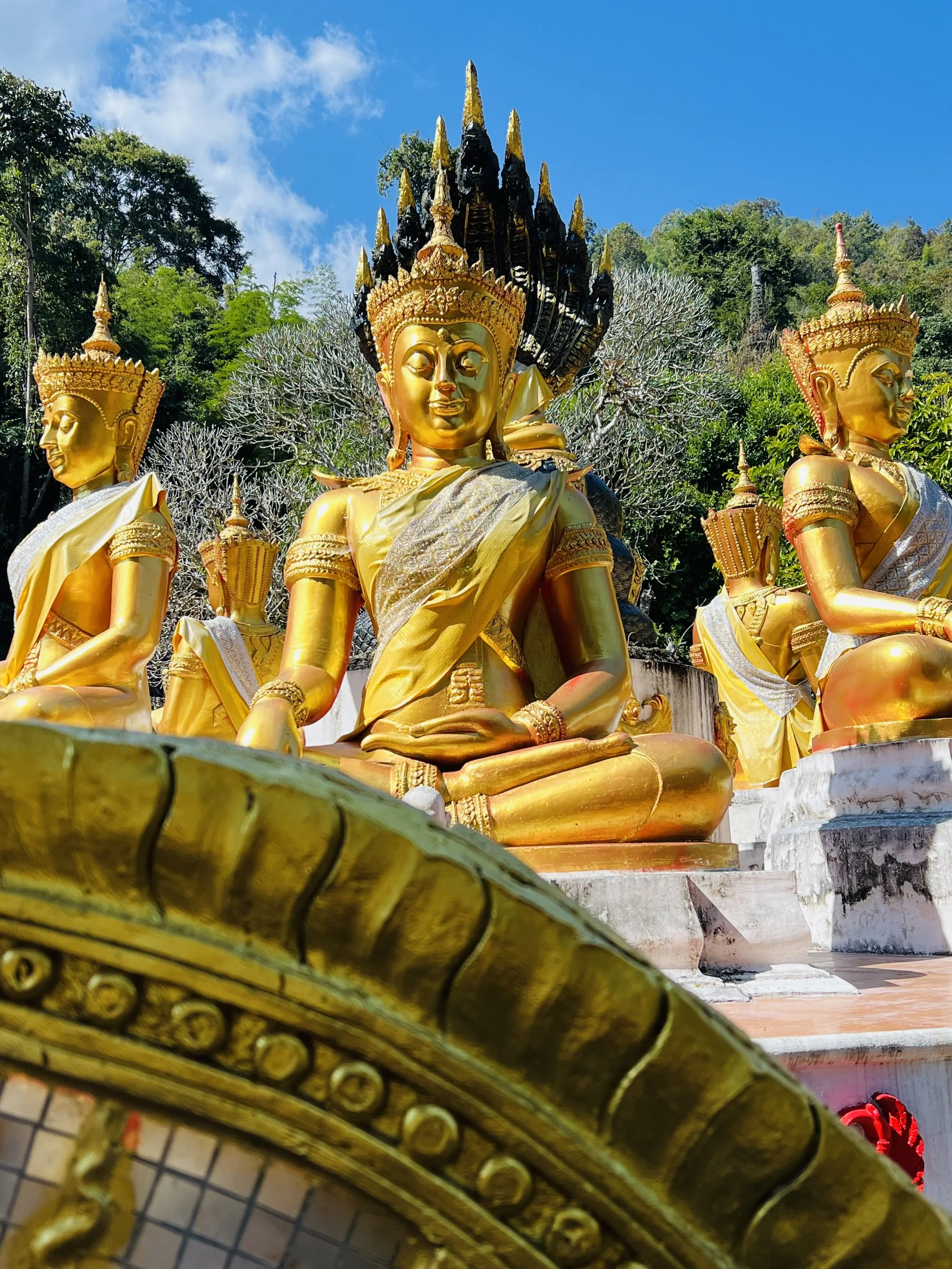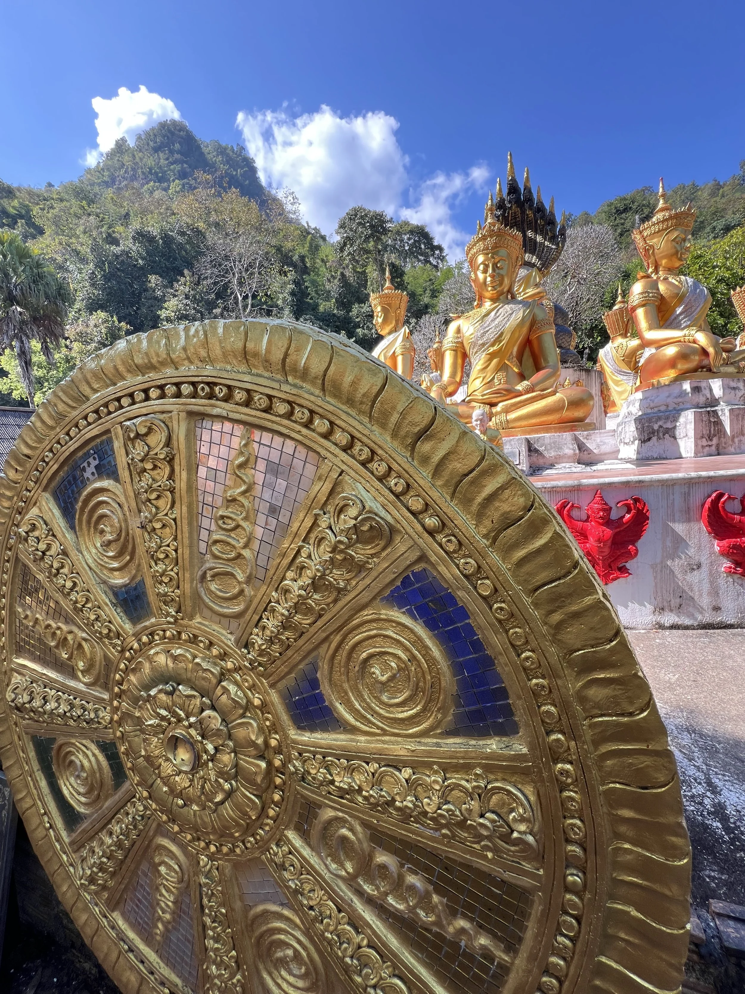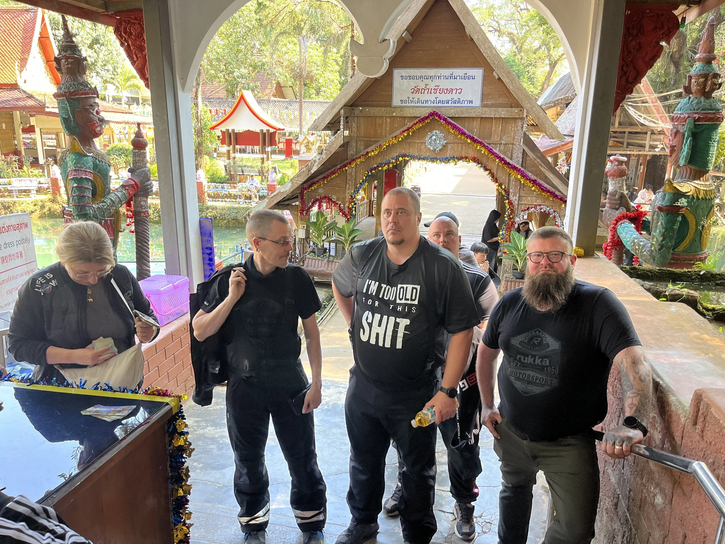 Päivän ensimmäinen nähtävyys oli ja samalla lounaspaikka, klo 12.00 aikaan tietenkin, oli What Dam Chiang Dao, luolassa sijaitseva Budhalaistemppeli.