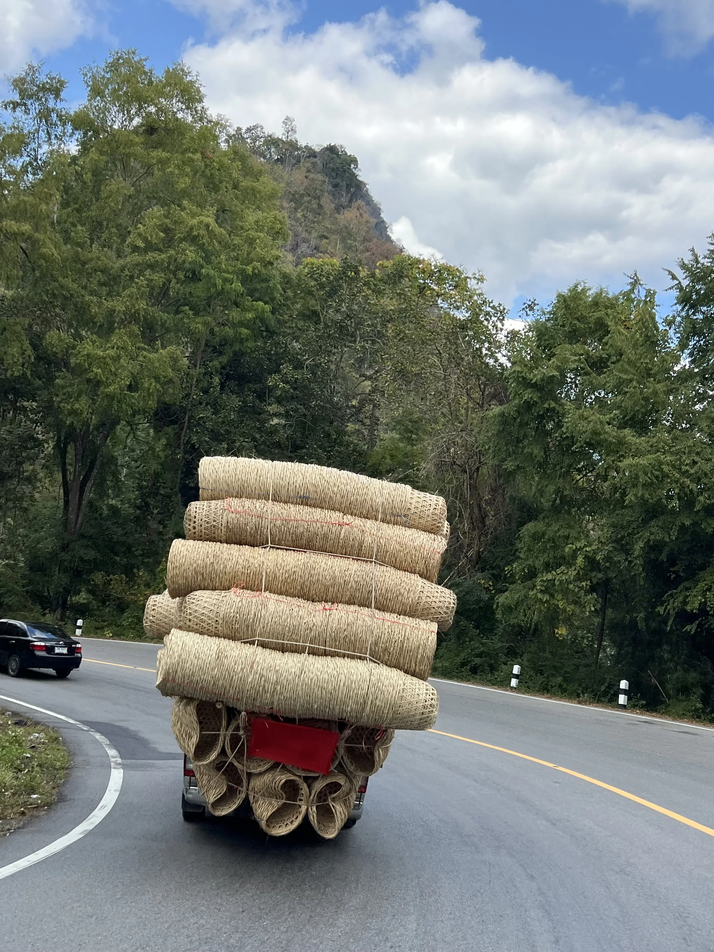 Huikea vuoriston ylitys päättyi klo 10.00 tuttuun taukopaikkaan. Pohjois-etelä -suunnassa kulkeva päätie sai meidät vieraakseen joksikin ajaksi keskinopeuksien noustessa samalla yli 50 km/h. Tämä tie oli Thaimaan ja Myanmarin välinen päätie, mukavasti mutkitteleva tie sekin.