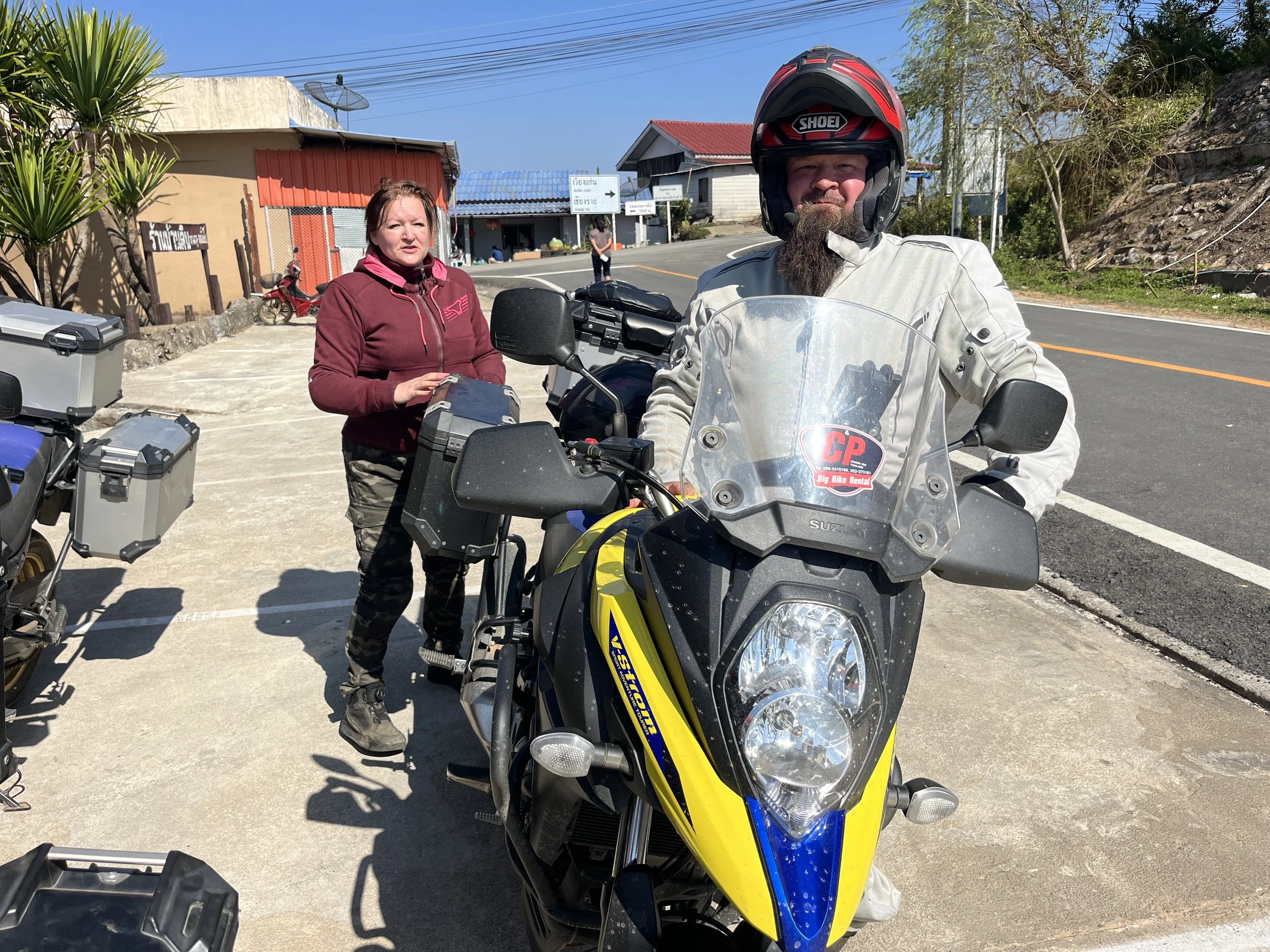 Elämän huumaamina ajelimme Opium -museolta viimeiset 30 km Mekong -joen Laosin rajaa seuraten Chiang Khongiin, tuttuun biker -ystävälliseen hotelliin. Ystävällinen General Manager oli meitä vastassa ja kaikki pelasi kun elokuvassa, eikä GM unohtanut mainita tälläkään kerralla omistavansa Harley-Davidson -merkkisen moottoripyörän.