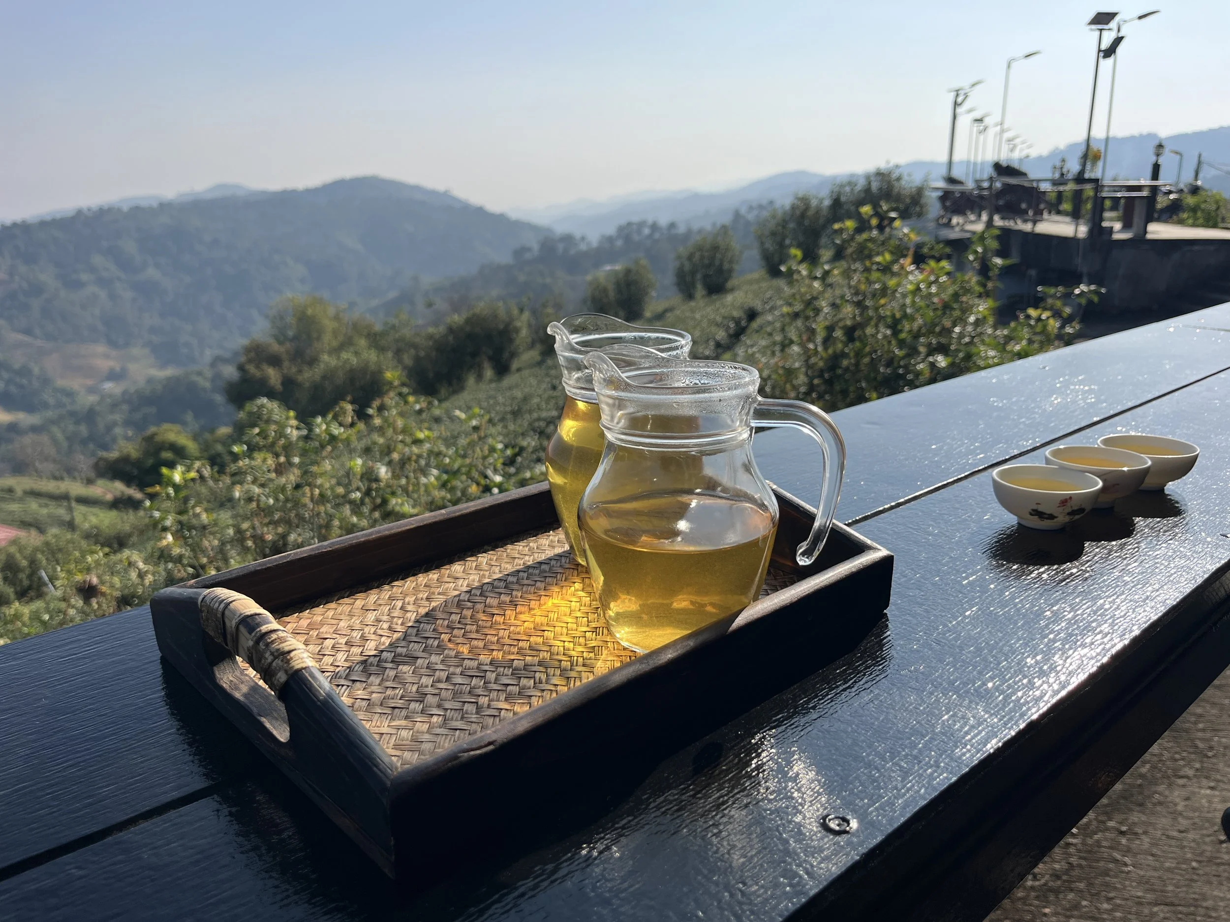 Suuntana oli pohjoinen ajamaan lähemmäs Myanmarin rajaseutujen pikkuteitä. Päätieltä poikettuamme lyötiin läpyt Villelle, joka oikaisi suoraan Chiang Raihin parantamaan flunssaansa. Me muut ajelimme tee-tilalle nautiskelemaan aamuteestä. Ei ollut ihan tasajako, mutta hyvin perustelu epäreiluus.