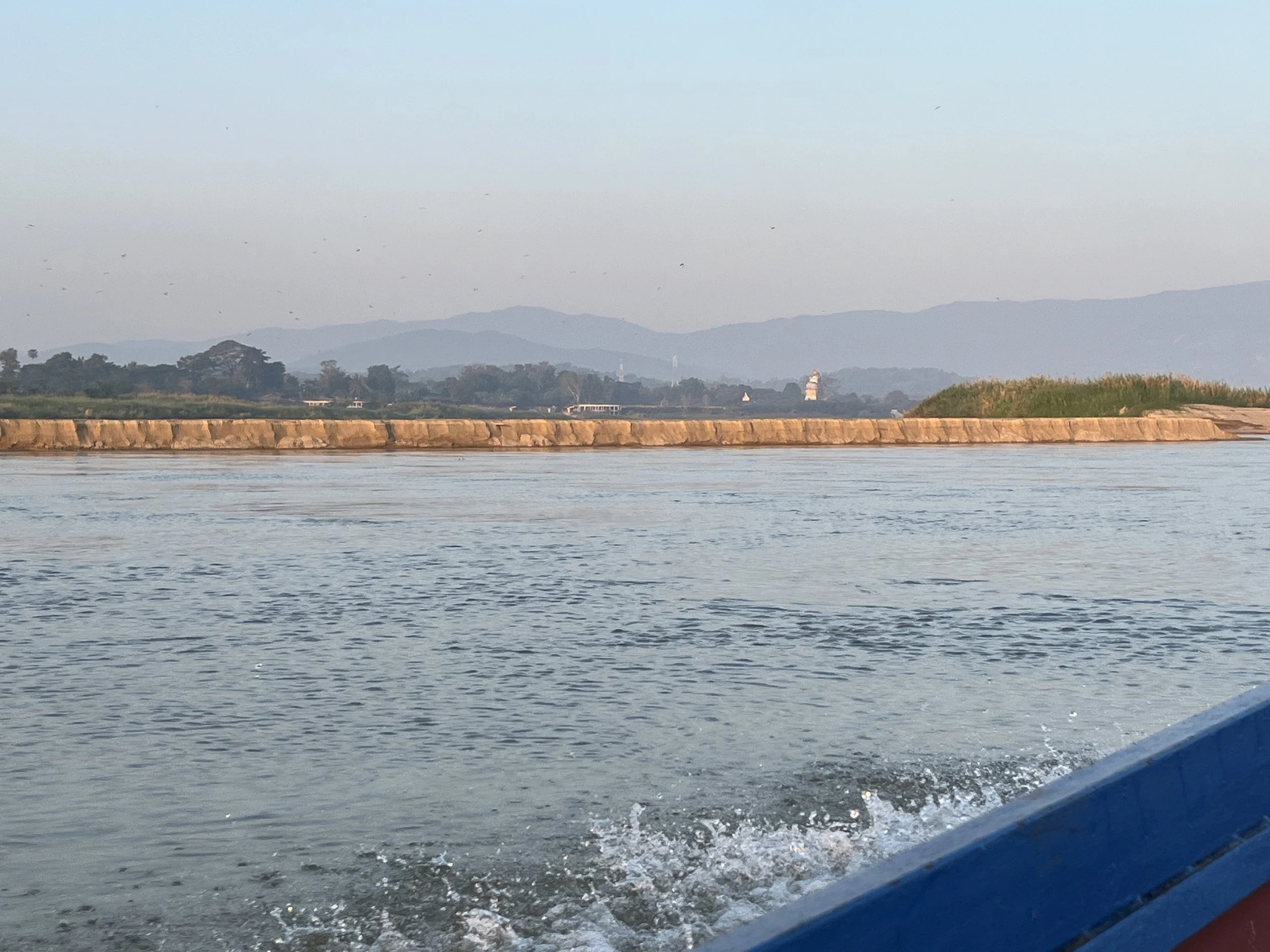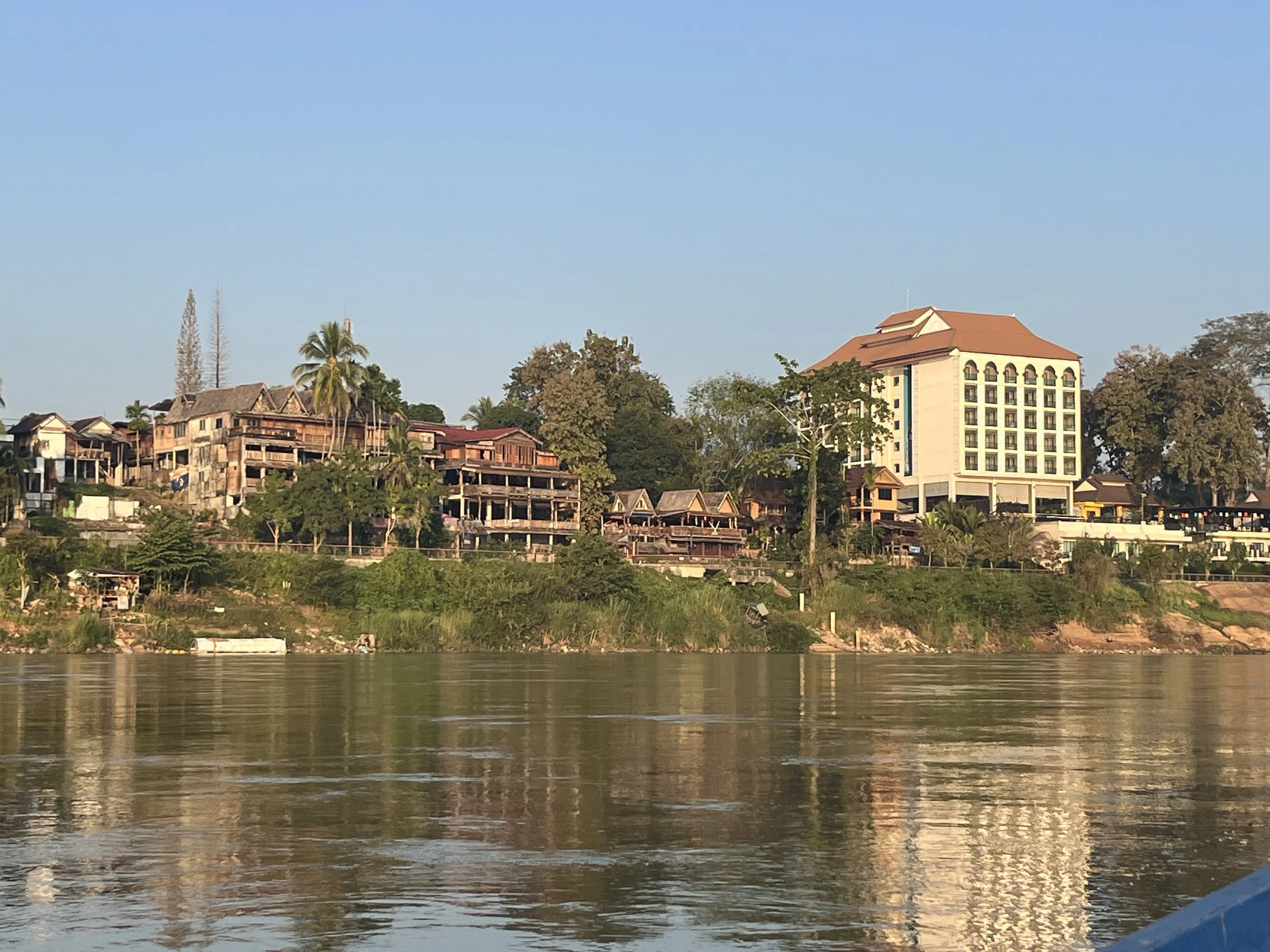 Maisemat olivat kuitenkin perinteiset Mekong -joen virratessa noin 300 metrin korkeudessa meren pinnasta kohti Etelä-Kiinan merta. Matkaa merelle jokea pitkin oli enää vaivaiset 2600 km. Täällä Chiang Khongin korkeudella joen vedenpinnan korkeus laskee noin metrin verran kilometrin matkalla ja virtaus on huomattava, vaikka joki näyttää muuten rauhalliselta.