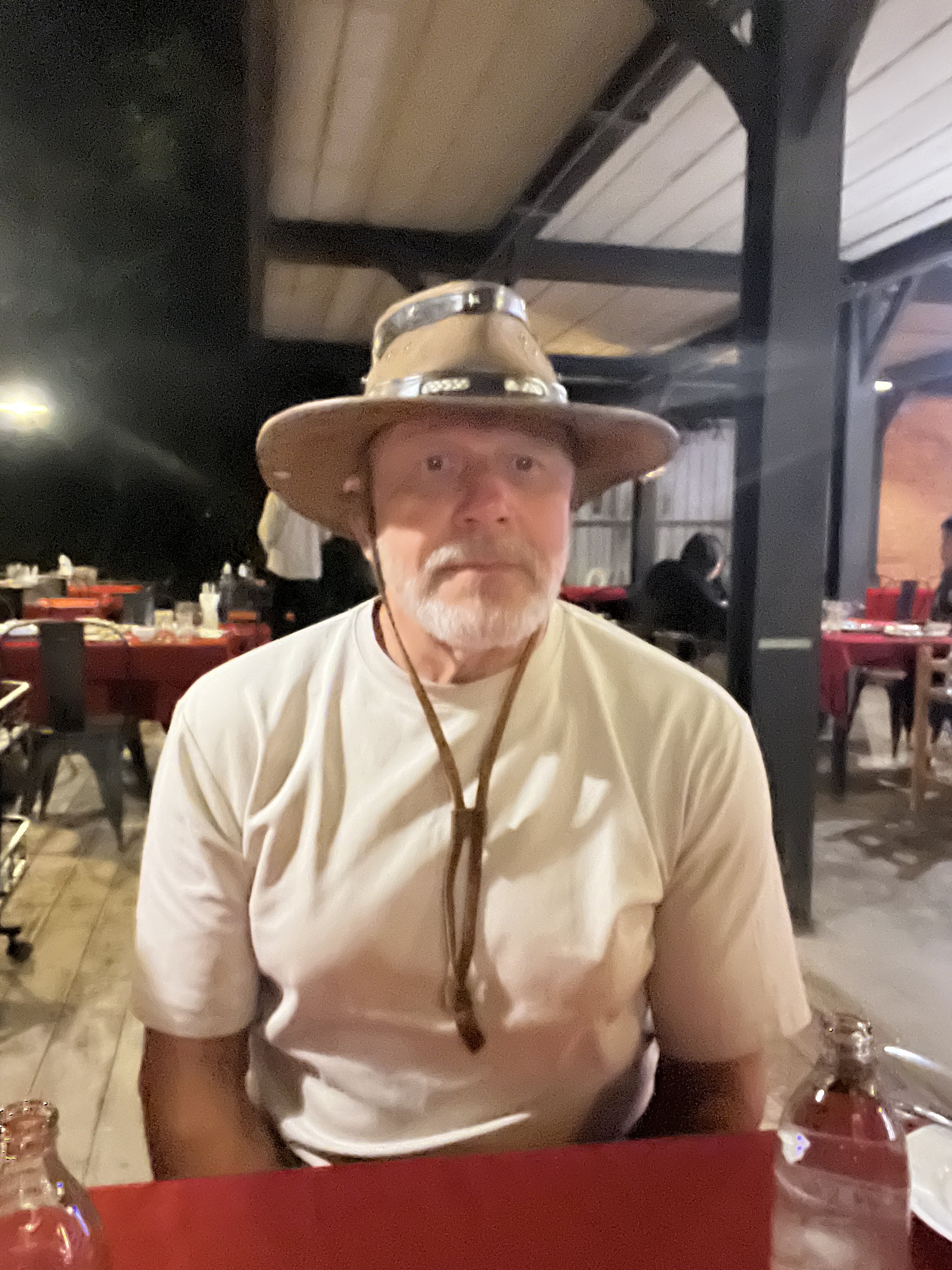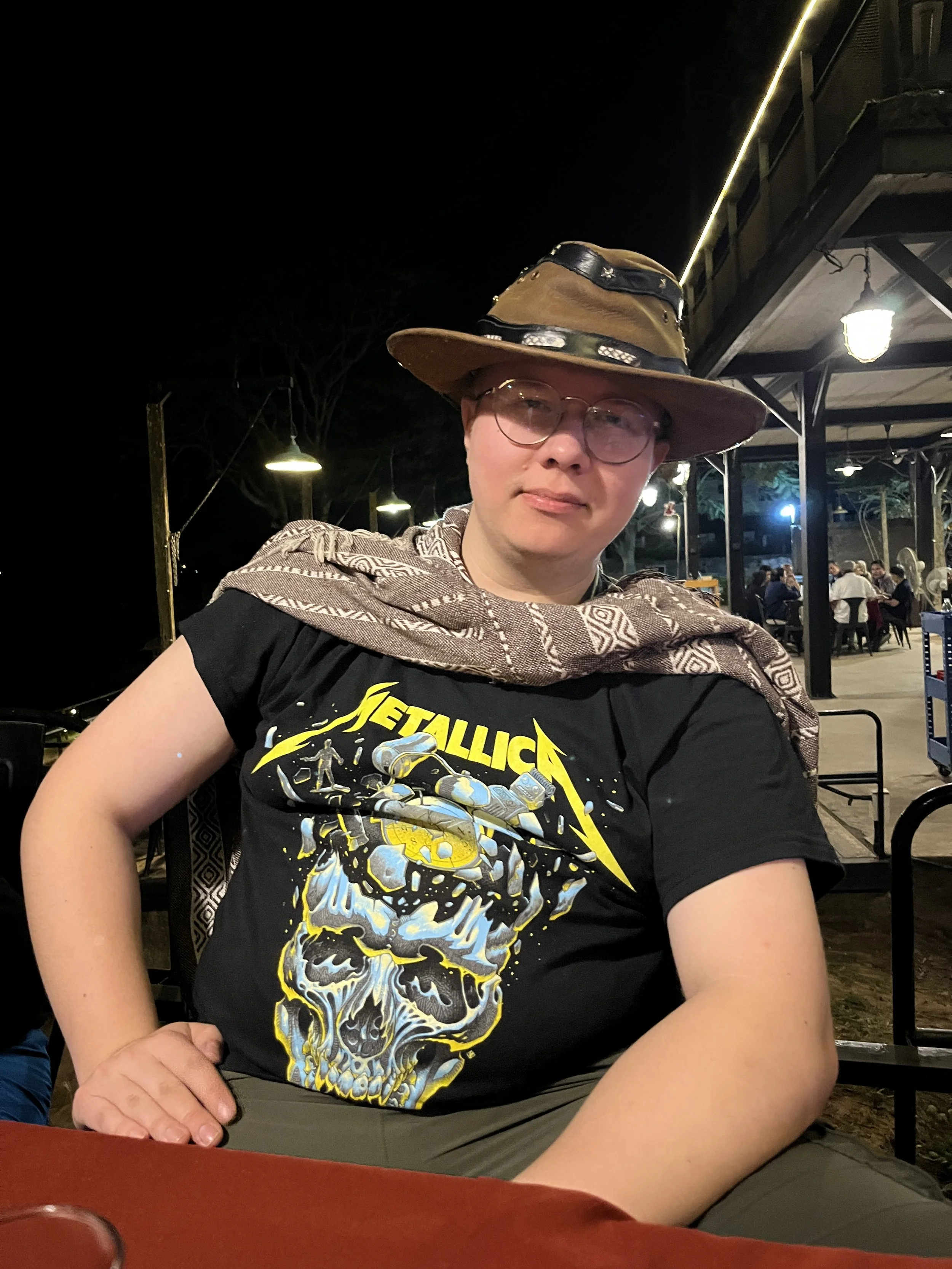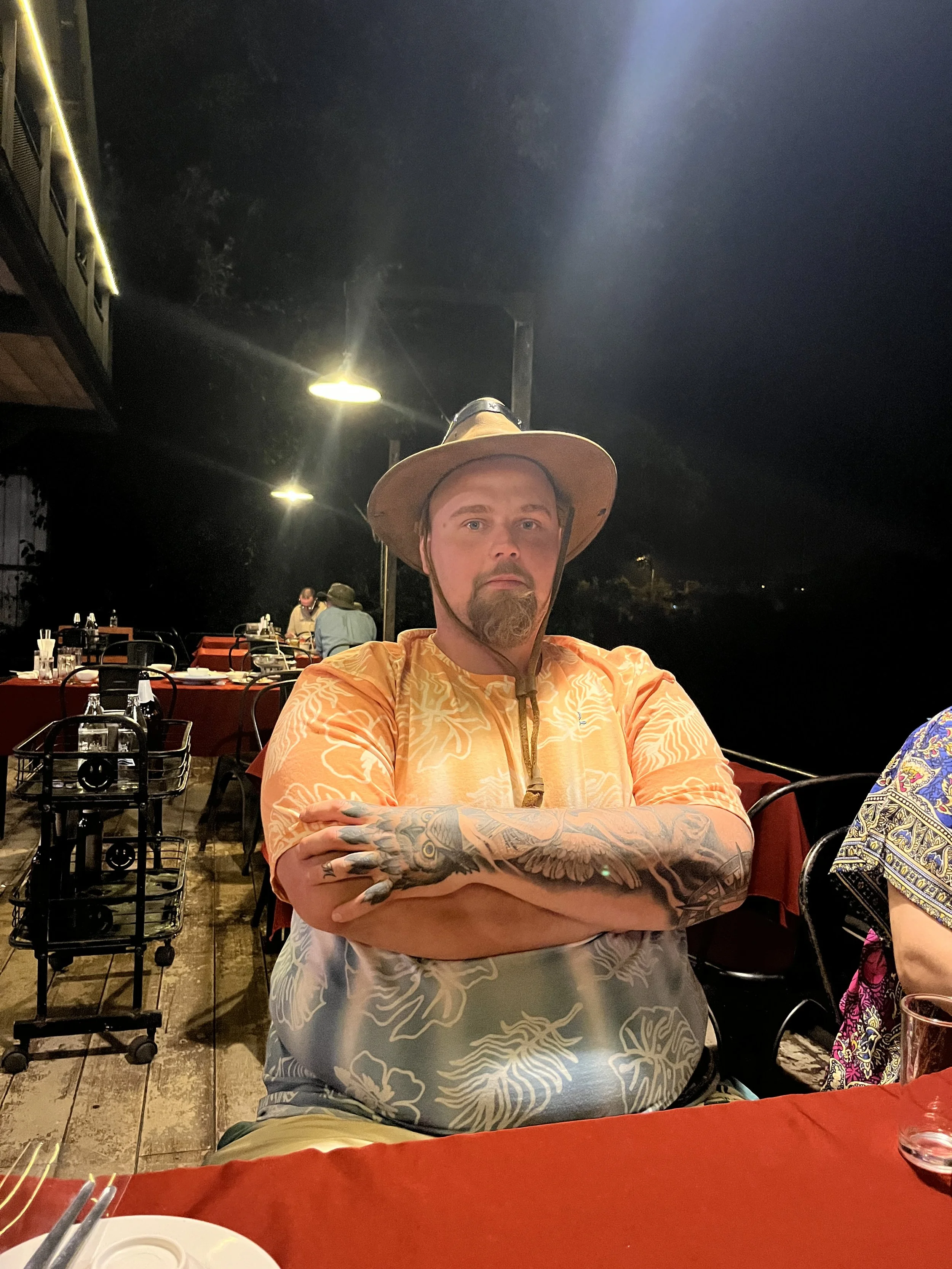 Päätettiin ruokaa odotellessa laittaa pystyyn hassu hattuleikki Jerimiaksen uuden nahkahatun kunniaksi.