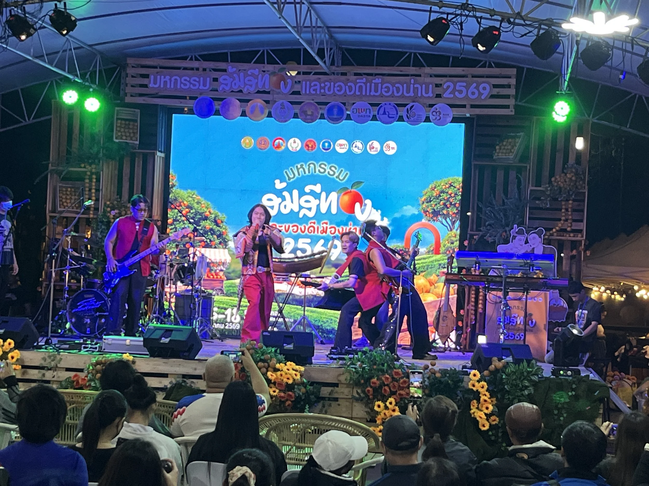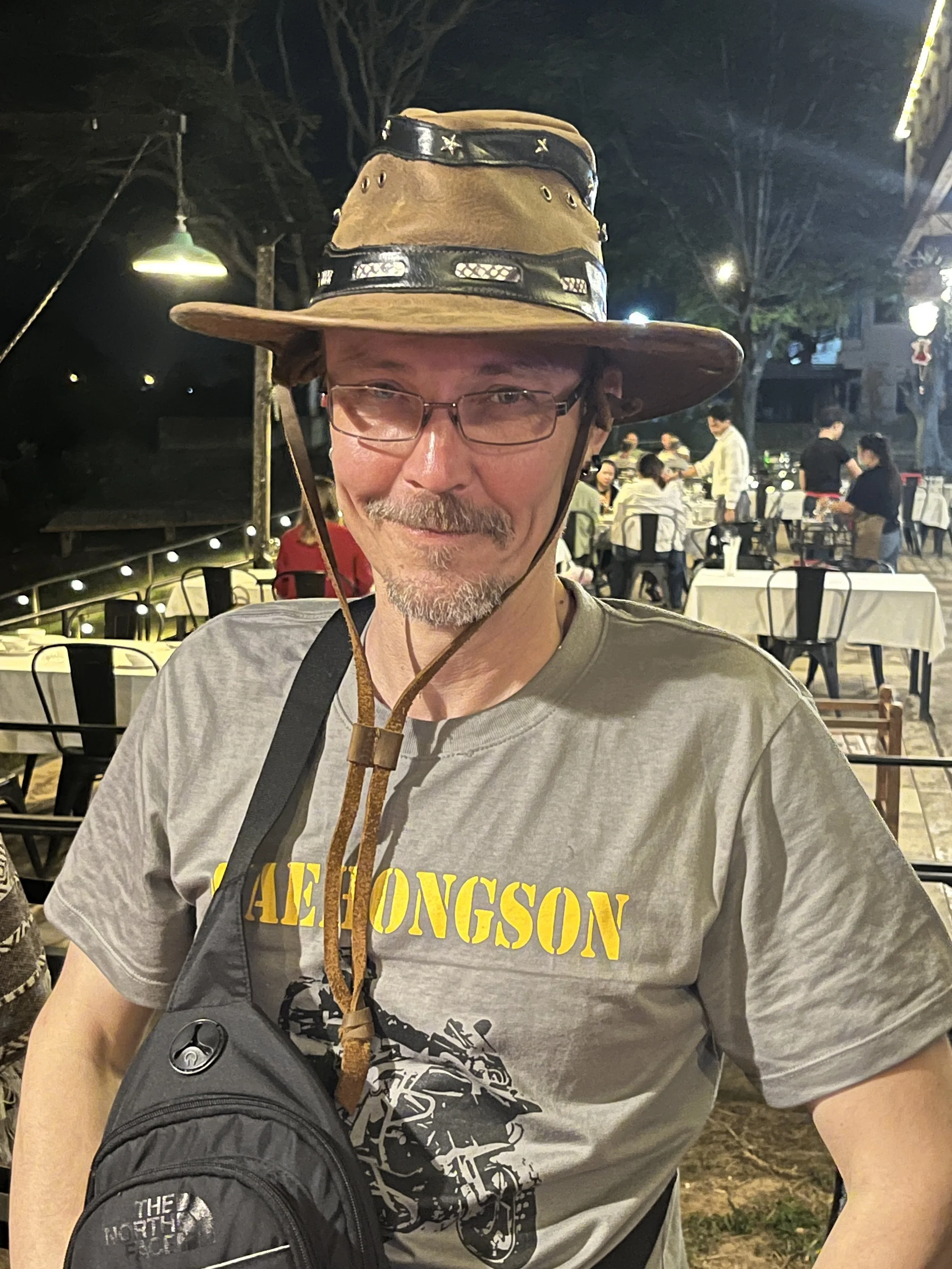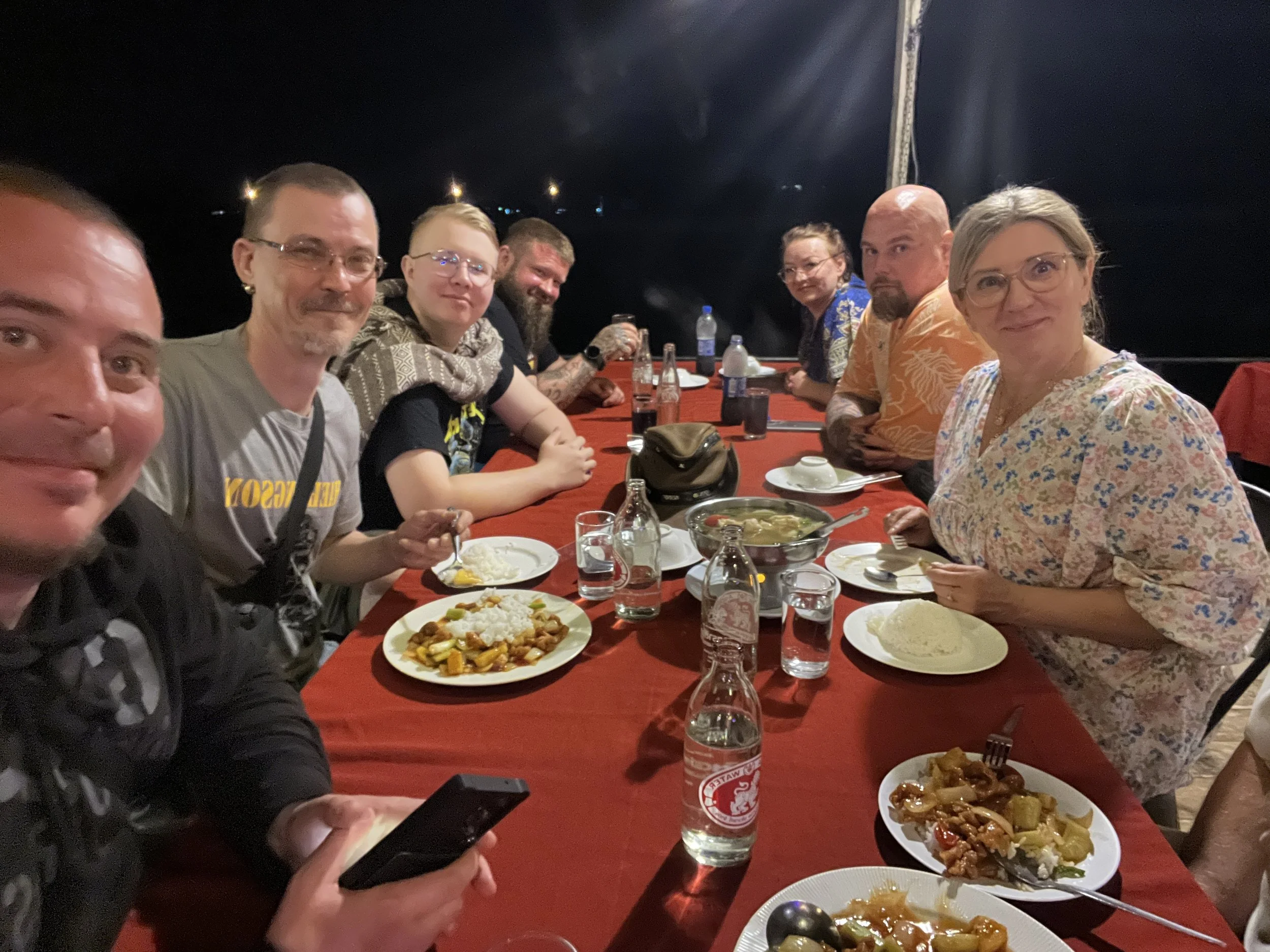 Nanissa oli käynnissä mandariinimarkkinat ja muu kaupunki, kuin markkina-alue oli hiljainen. Me suunnistimme joen varteen illalliselle. Kyydin tarjosi matkan varrella olleen hotellin pikkubussi, ihan vain ystävällisyyttään. Thaimaassa voi tällaistakin tapahtua.