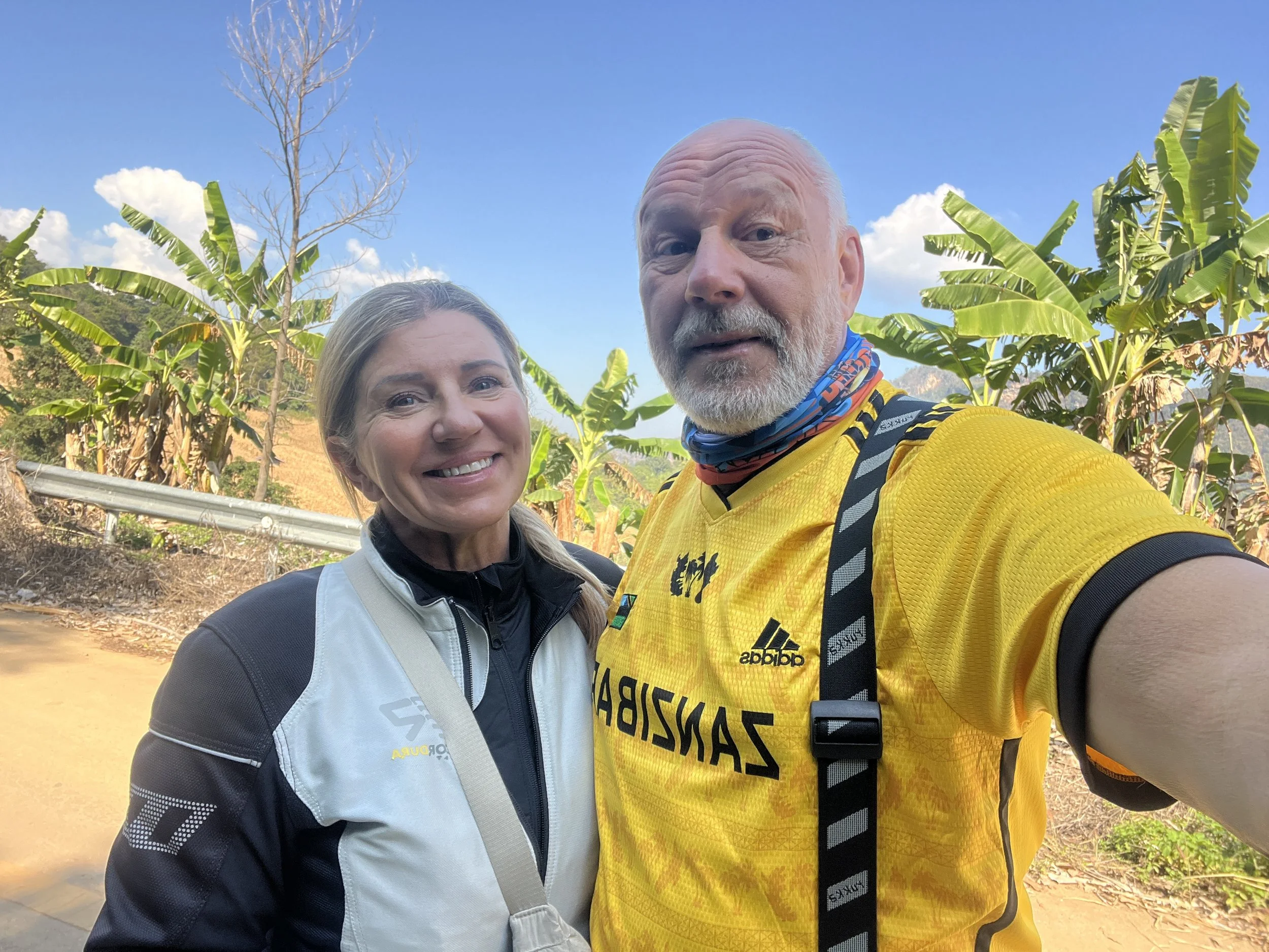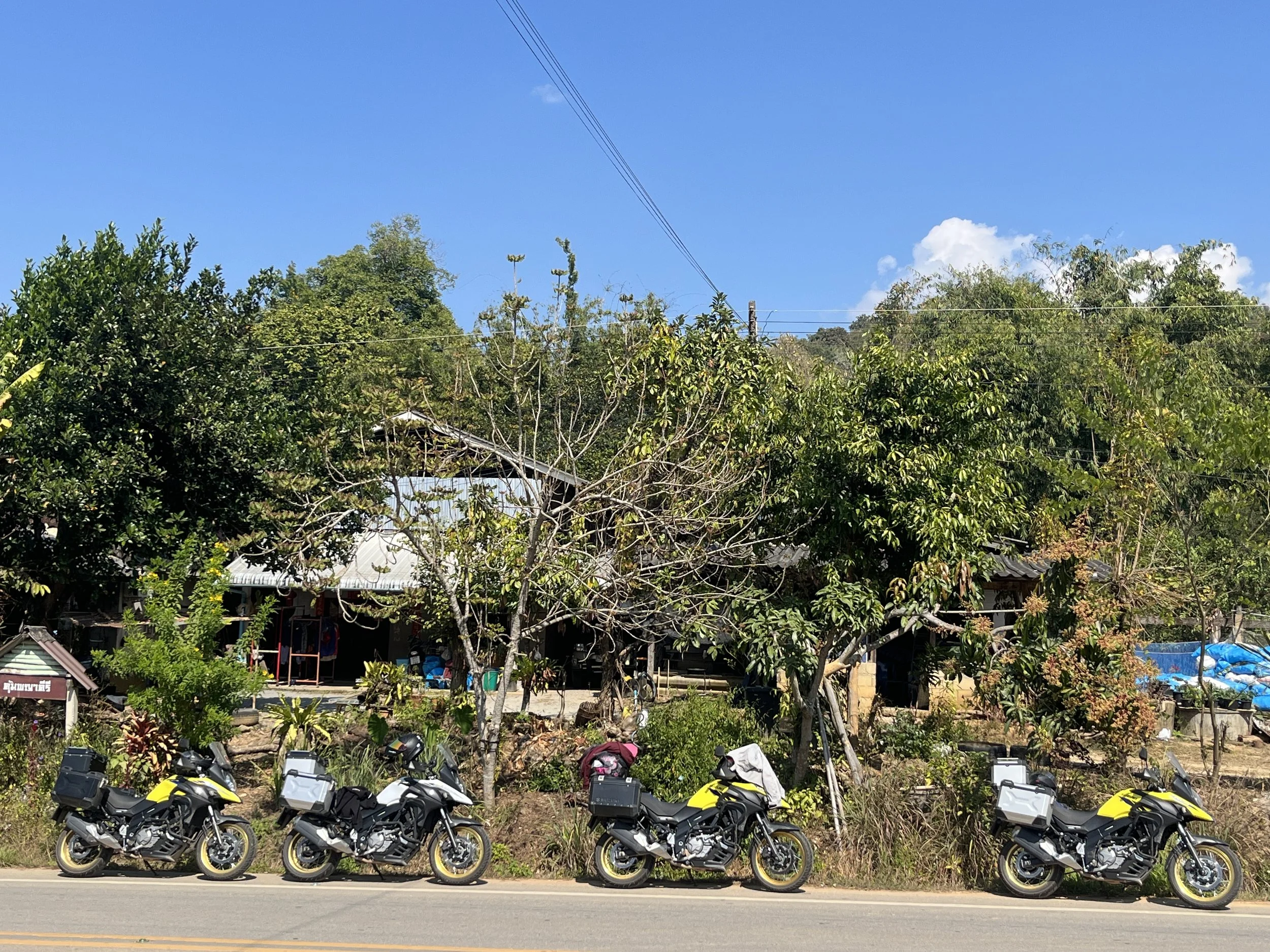 Alkumatkan aamujen vuoristolämpötilat olivat nyt takanapäin ja ajopäivä aloitettiin suoraan mukavuusalueelta.. Chiang Raista palattiin lähes samaa reittiä kumipuu metsien halki takaisin Laosin rajan tuntumaan ja jatkettiin siitä, mihin toissa päivänä jäätiin. Näin taittui helposti melkein 100 kilometriä, joka tasoitti muuten hurjalta kuulostavaa 320 kilometrin päiväetappia.
