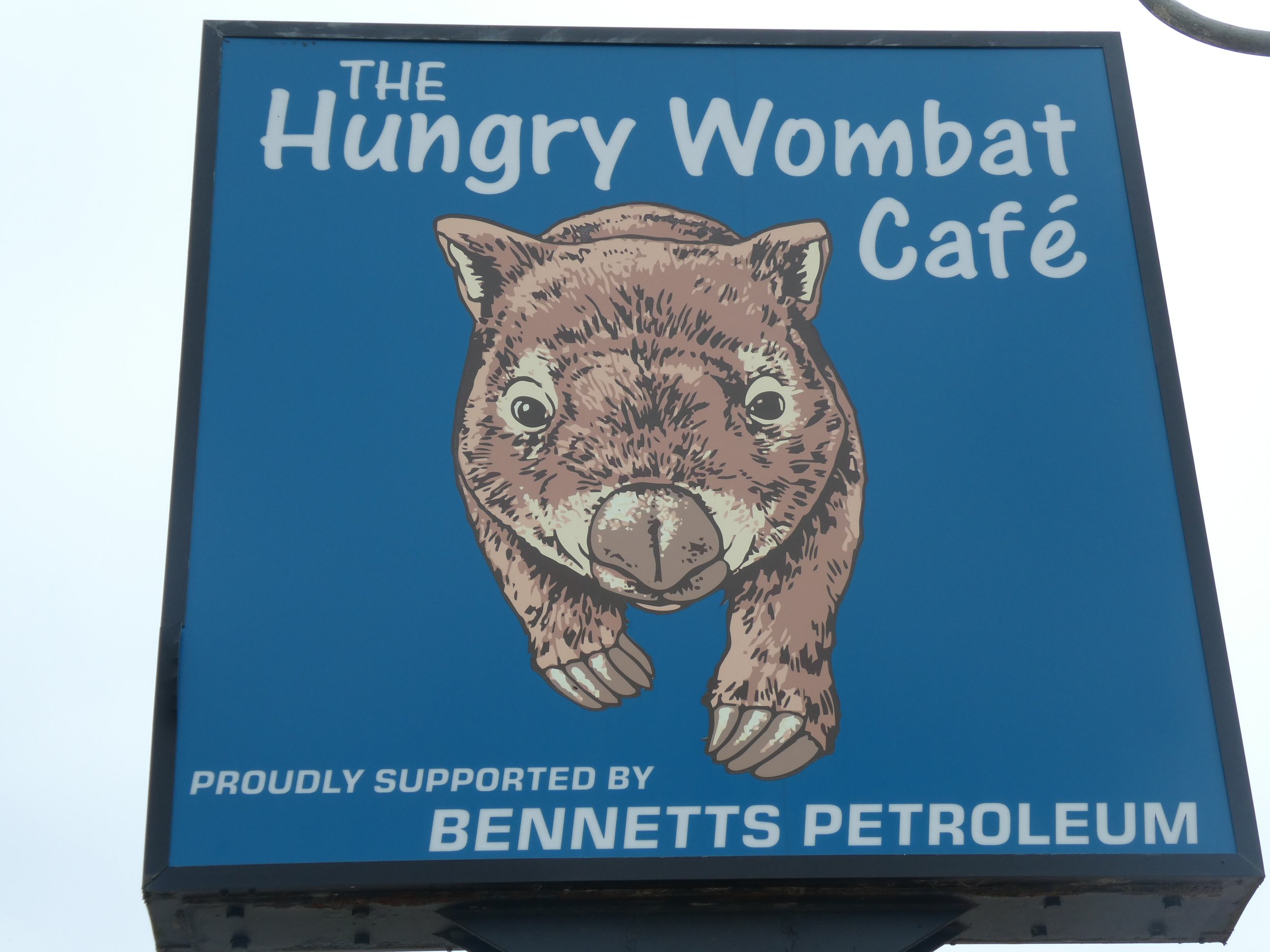 Pysähdyttiin kahville ja välipalalle Hungry Wombat -kahvilaan, ja pakkohan sinne oli jättää myös PeterPanBiken tarra ikkunaan 🙂