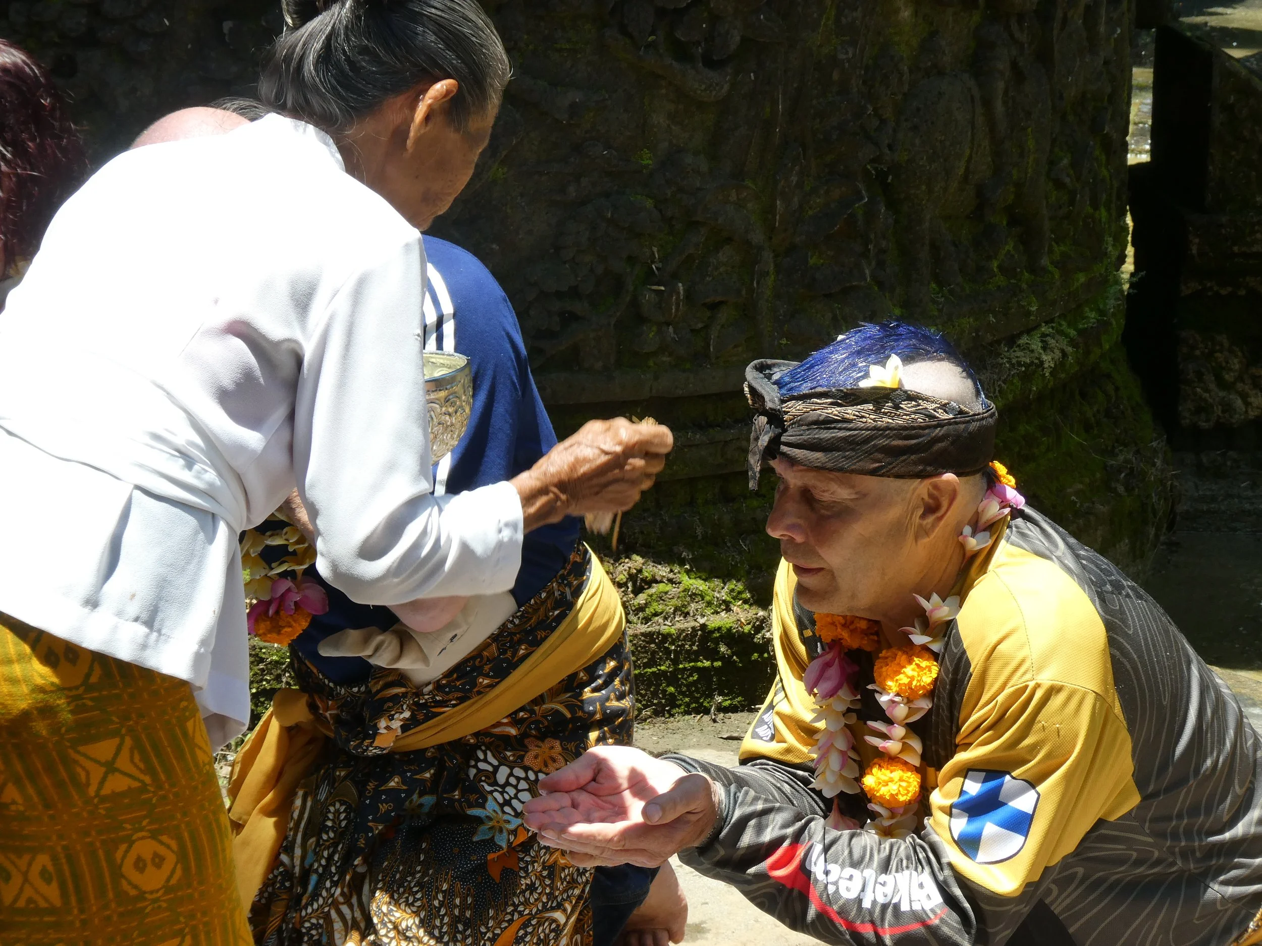 Tanssin jälkeen kaikkien niskoille asetettiin kukkaseppeleet, jonka jälkeen siirryttiin itse rituaalin pariin. 🌺