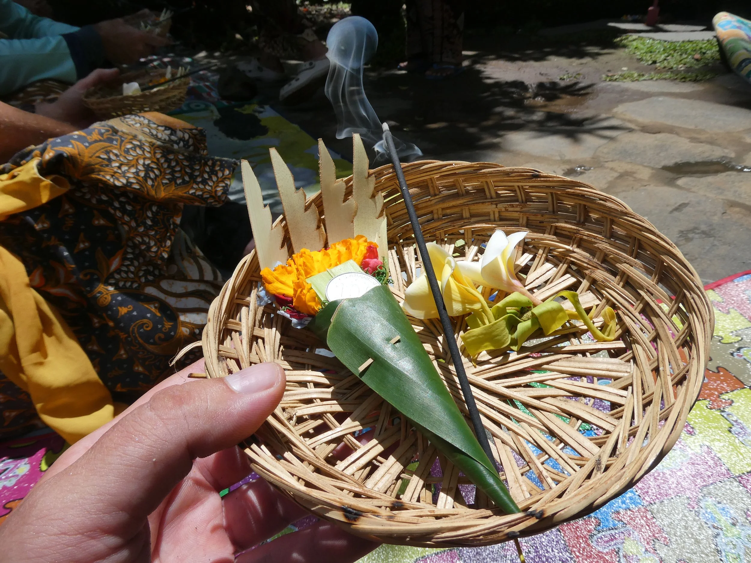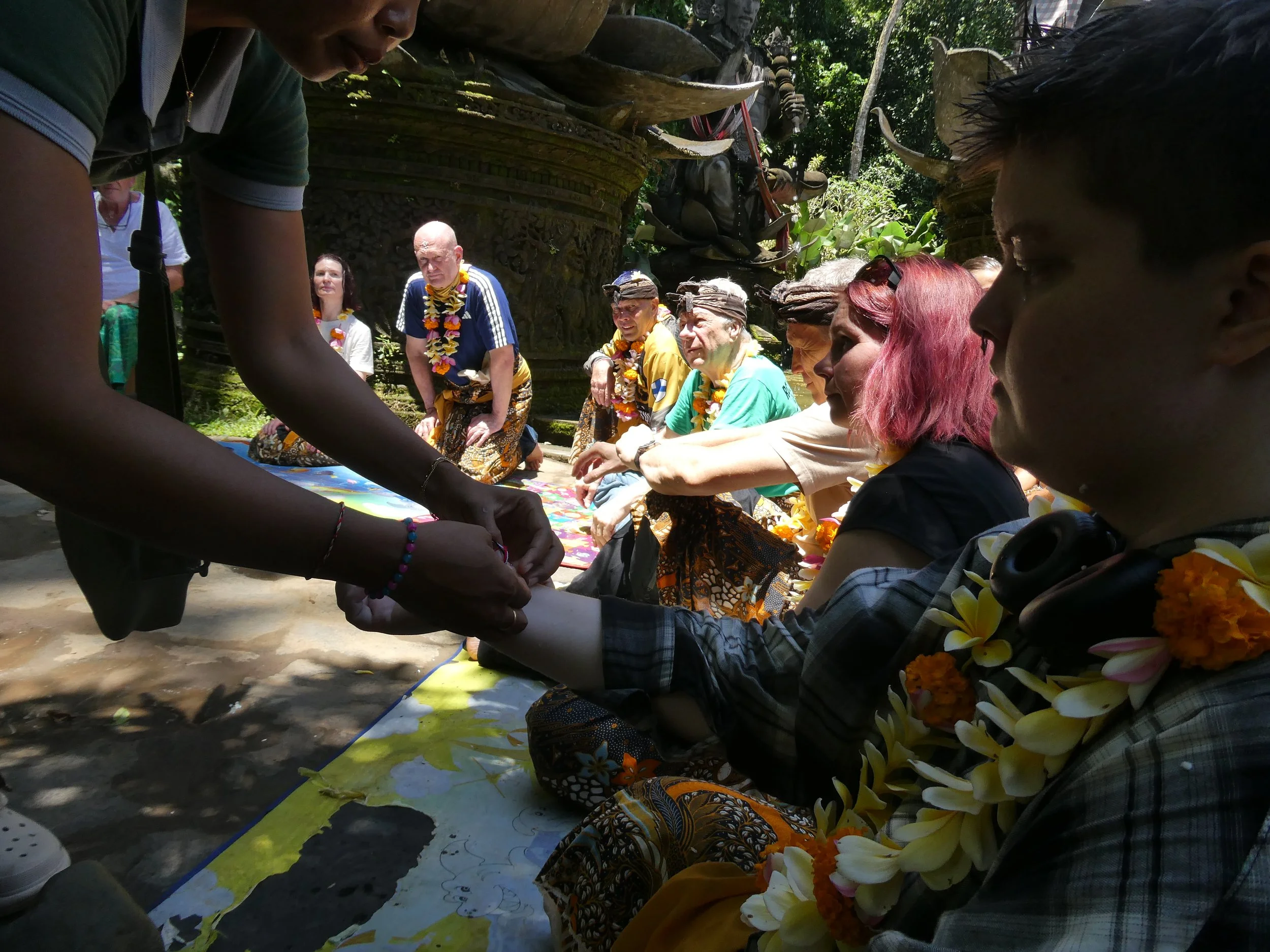 Balilaisessa hindulaisuudessa korostuu tasapaino. Hyvän ja pahan, ihmisen ja luonnon sekä näkyvän ja näkymättömän maailman välillä pyritään jatkuvaan harmoniaan. Rituaalit eivät ole erillisiä juhlahetkiä, vaan osa arkea, tapa pitää tämä tasapaino kunnossa. Lopuksi saatiin käteen musta-, puna- ja valkoiset rannekkeet, joita ei kuulu ottaa pois - ne saavat pudota itsestään ajallaan.