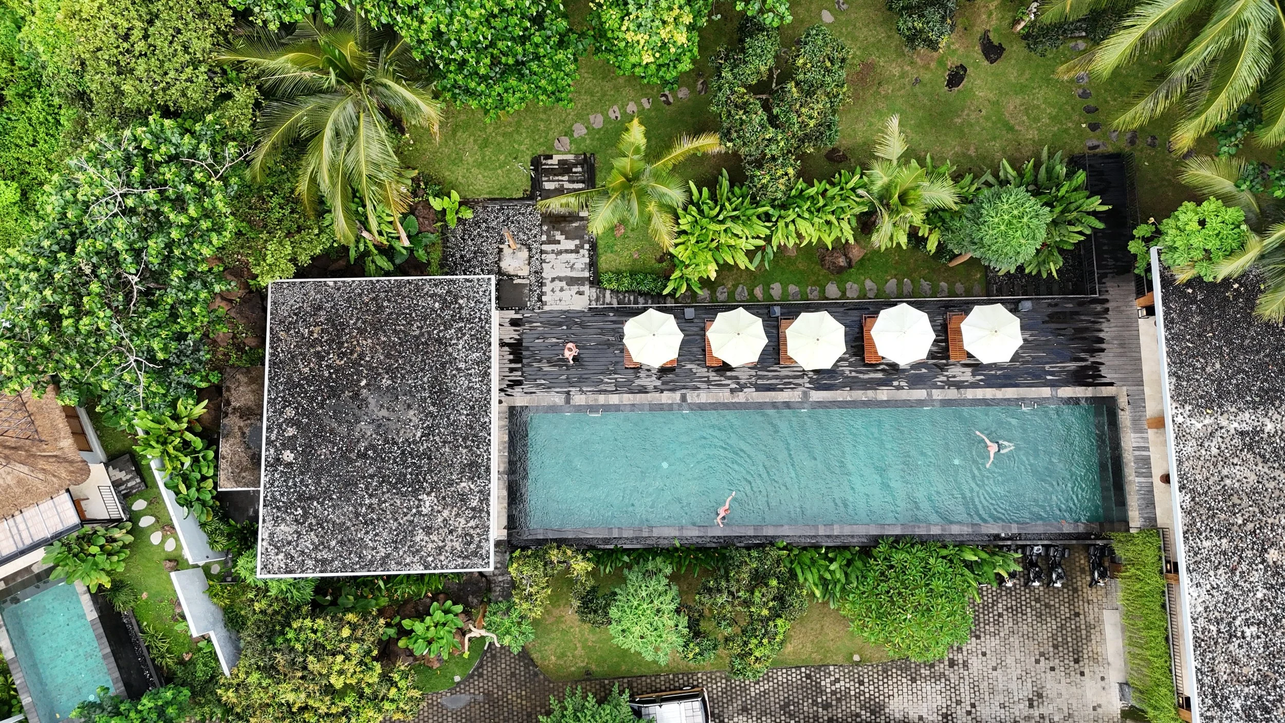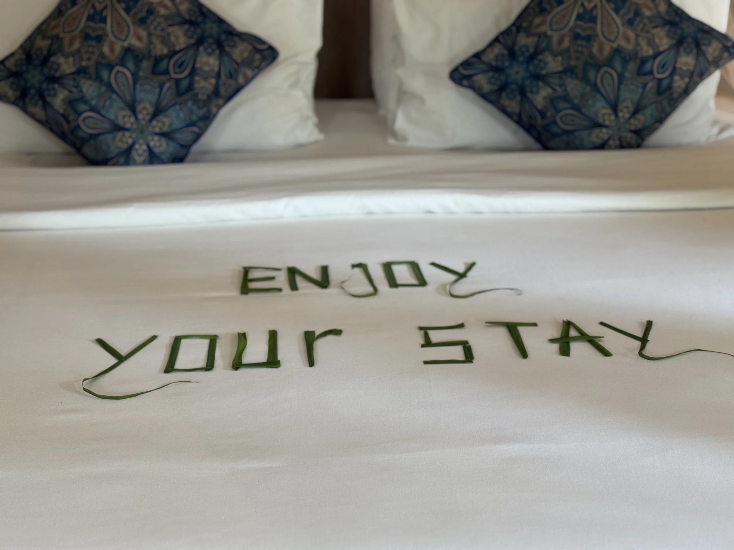 Illaksi saavuttiin Sanglung Villas -hotelliin, joka sijaitsee hieman ylempänä kukkuloilla. Sieltä avautui hienot näkymät auringonlaskuun, ja päivän päätteeksi oli täydellistä pulahtaa altaaseen.