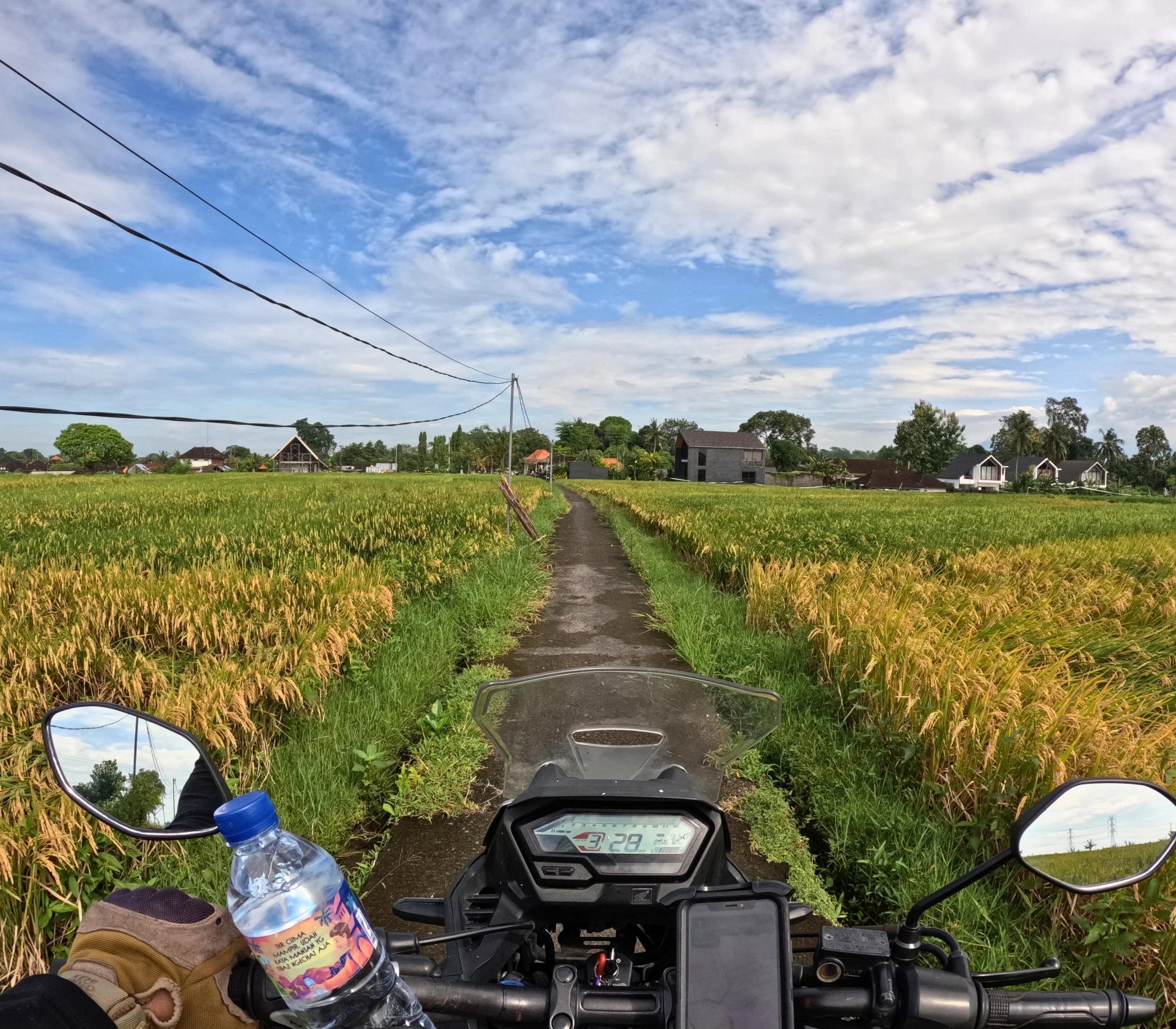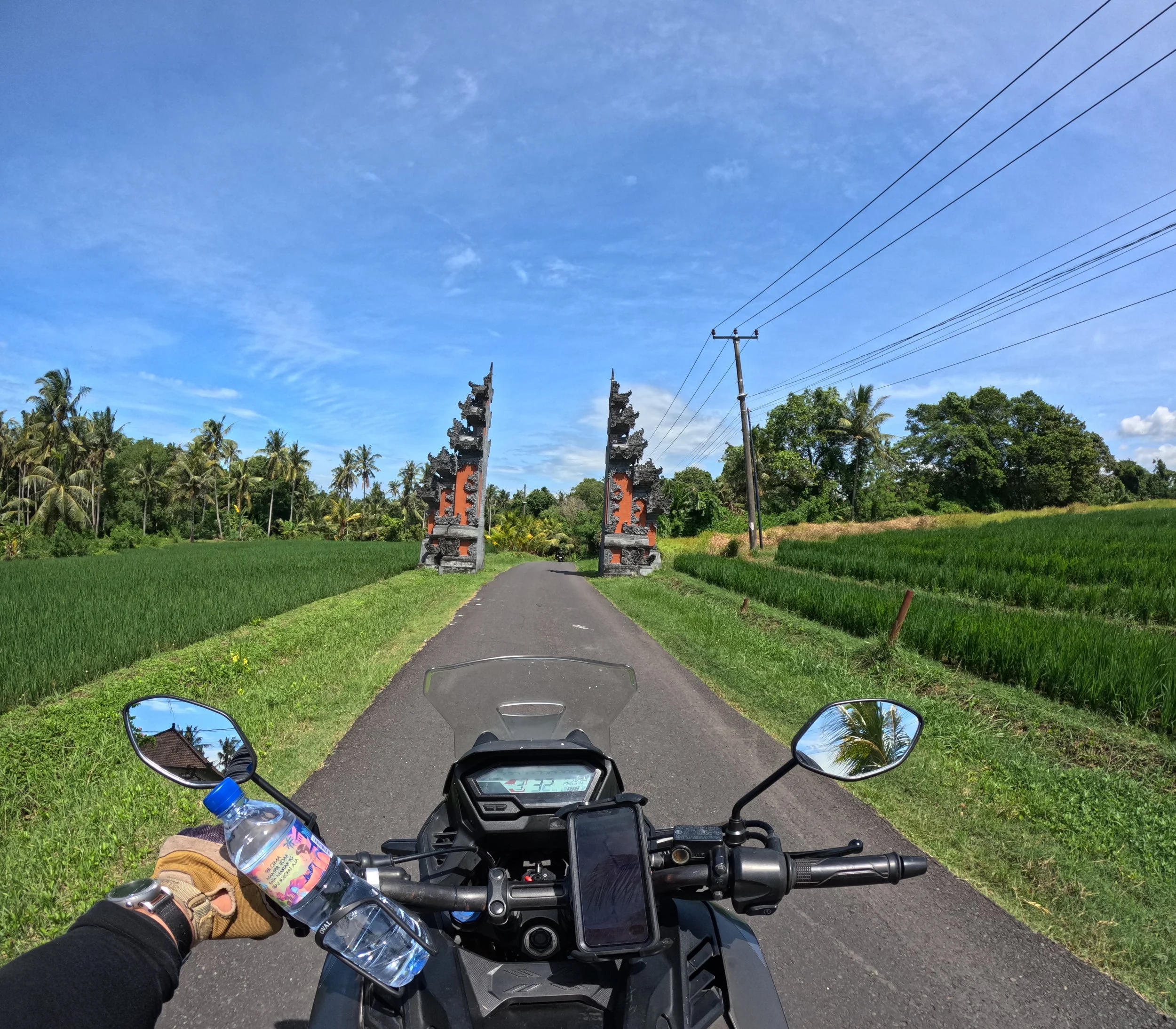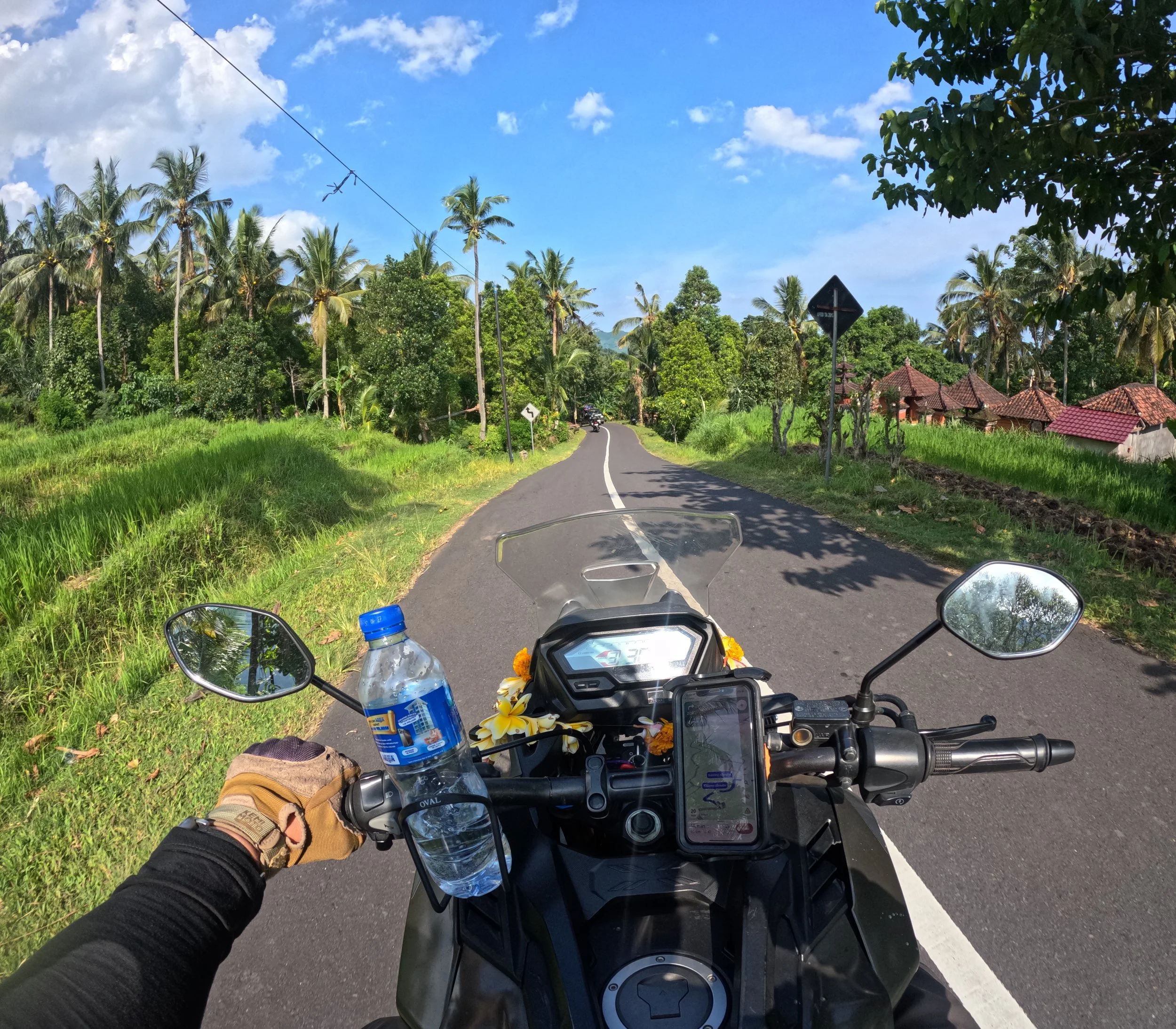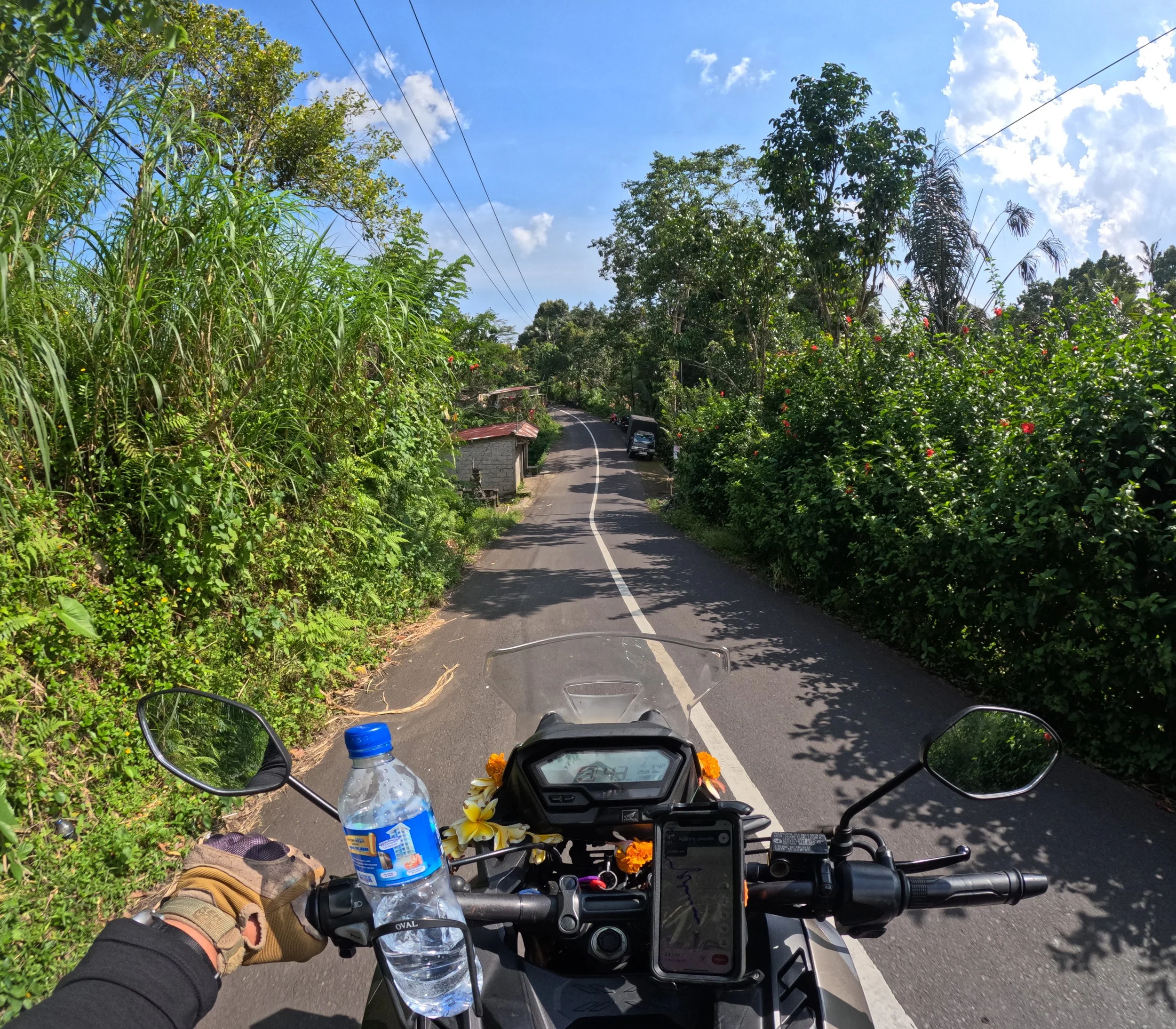 Denpasarin ja Kutan alueelta ulos pääseminen on päivän haastavin osuus. Liikenne on tiheää, tempo vaihtelee ja skoottereita on joka puolella. Ensimmäiset kilometrit menevät pitkälti siihen, että löytää rytmin ja alkaa luottaa omaan tekemiseen. Kun siitä pääsee läpi, ajaminen alkaa muuttua huomattavasti sujuvammaksi.