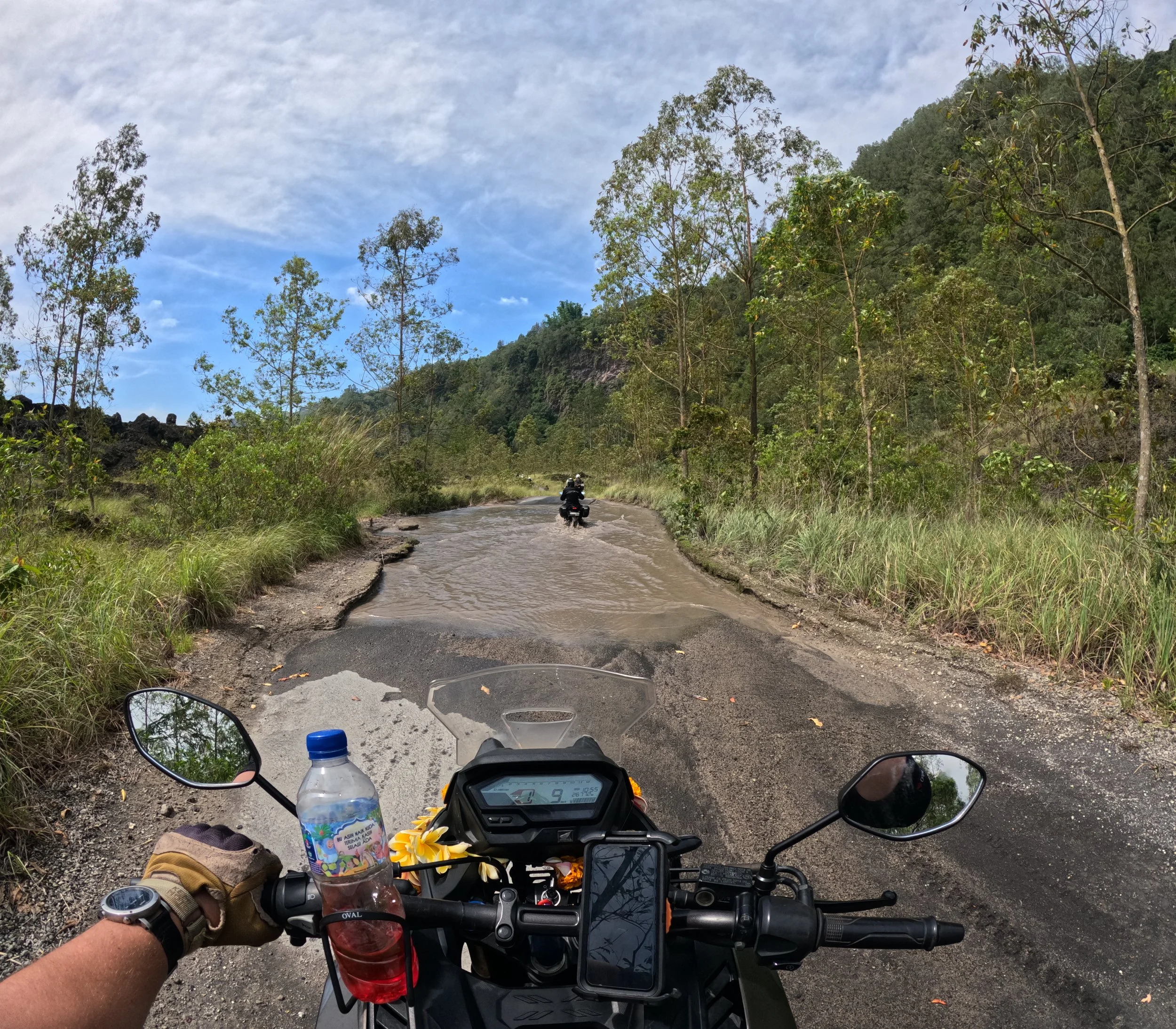 Rituaalin jälkeen hyvä onni oli käytännössä taattu, ja matkaa jatkettiin entistä paremmalla fiiliksellä 🏍️
