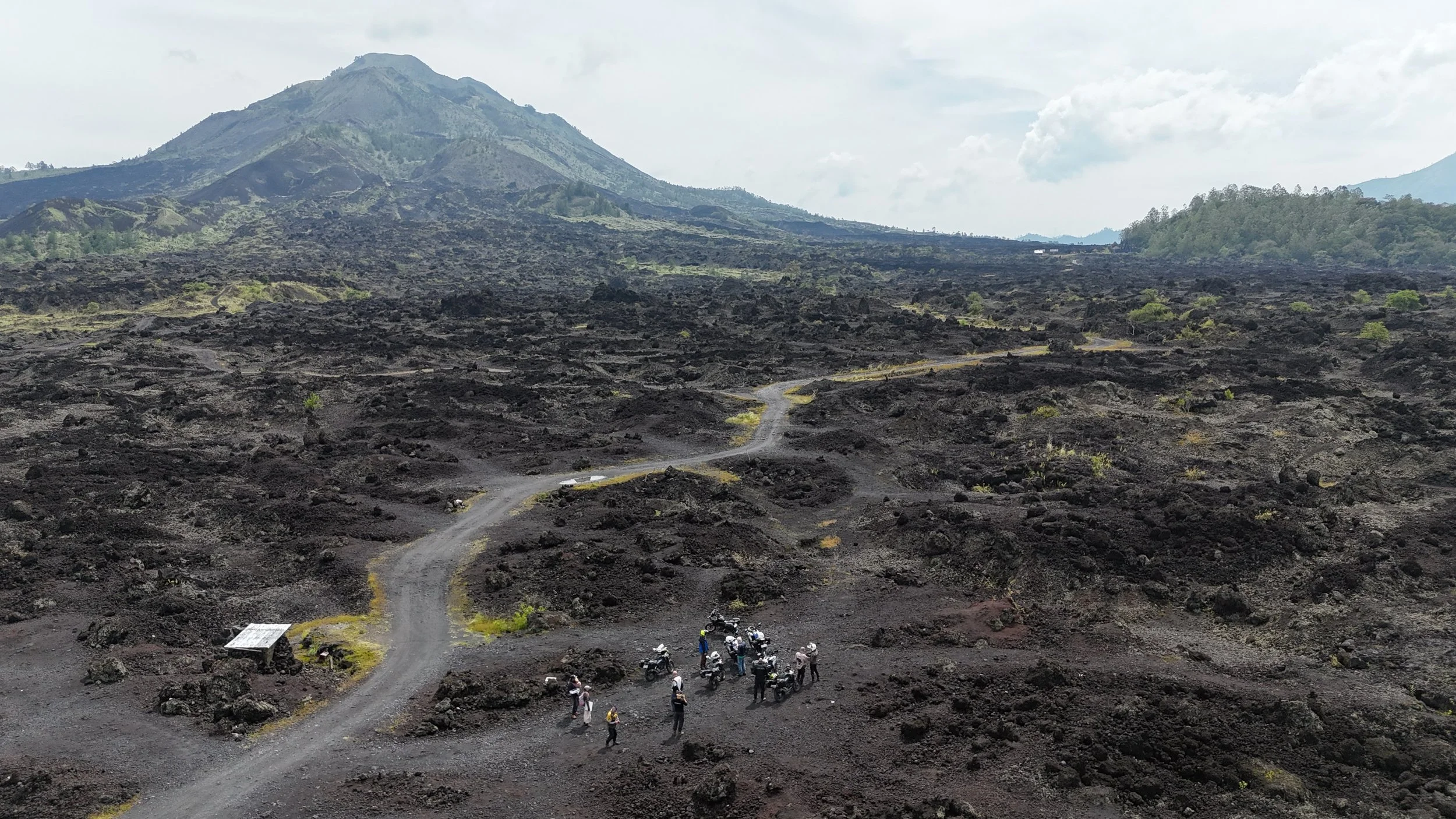 Päästiin kuitenkin vesiesteiden läpi lähemmäs Baturin rinteitä ja mustia laavakenttiä.
