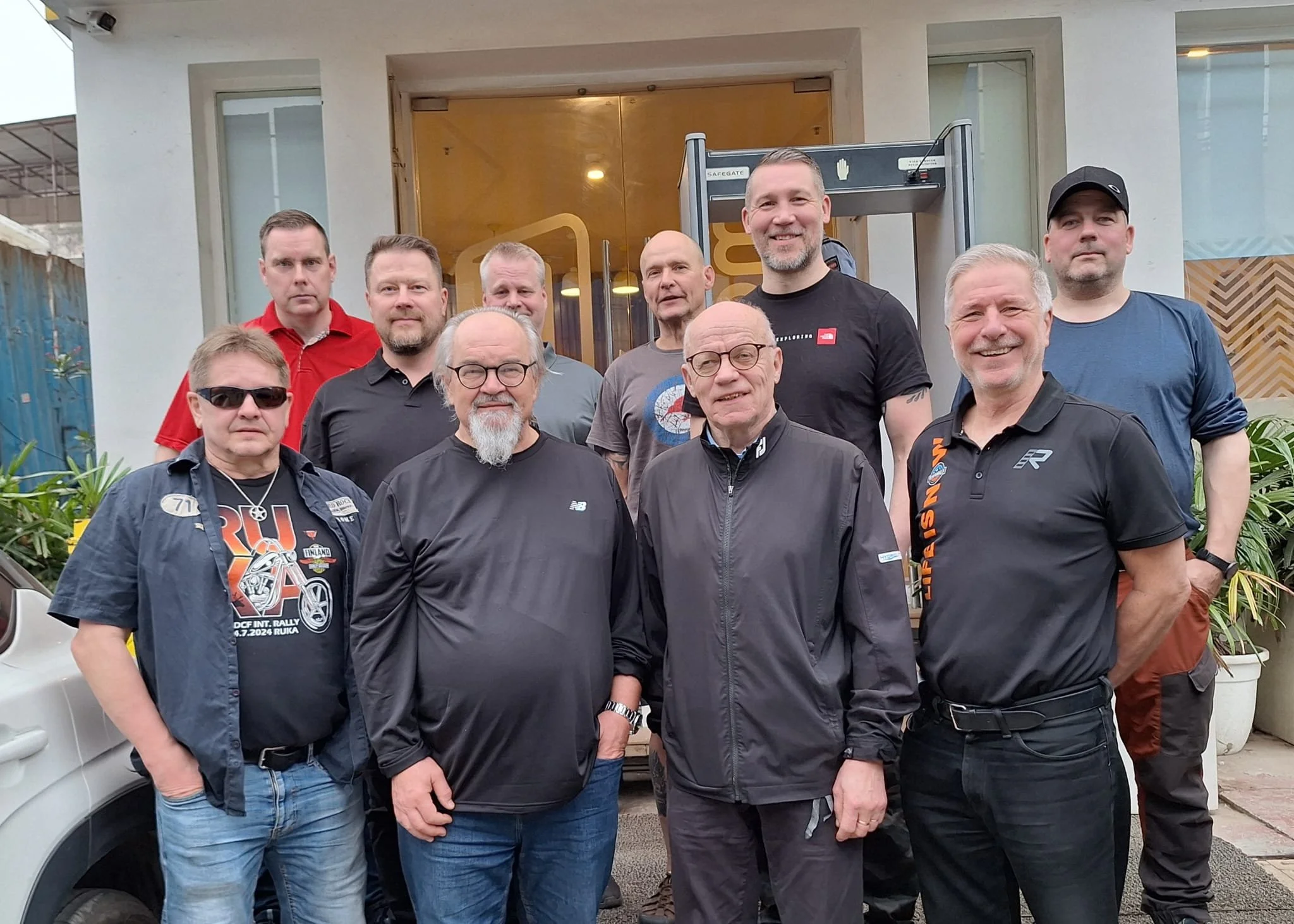 Aloitetaampas reissu ryhmäkuvalla, niin ei pääse unohtumaan. Koko jengi koossa ja alkuvaikutelman mukaan porukan kemiat toimivat hyvin yksiin. Ikähaarukkaakin on hieman, mutta aikuisia miehiä kaikki.