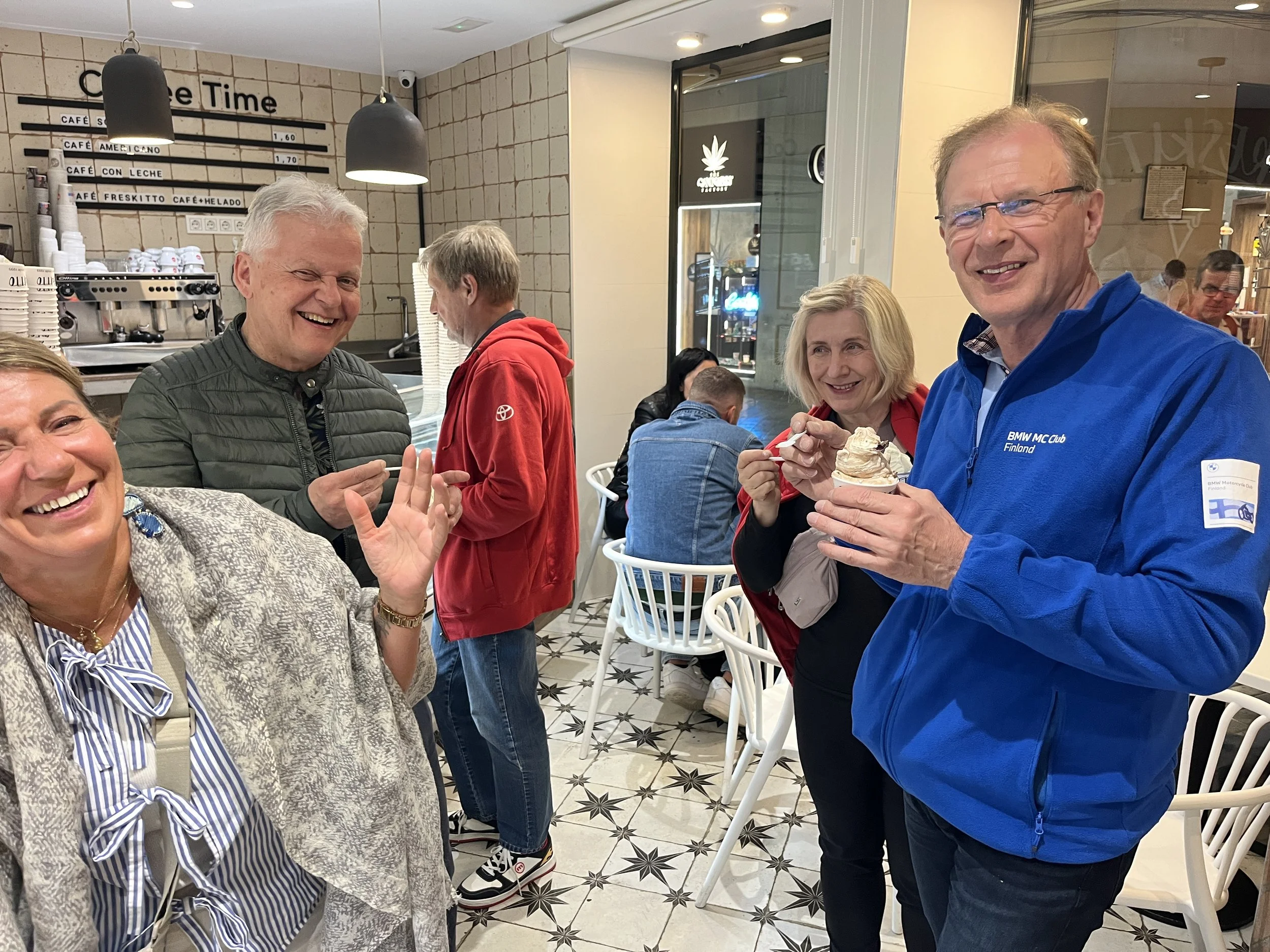 Kaupungilta käveltiin jäätelöbaarin kautta hotellille, ja tämä ajopäivä oli paketissa. Tämä oli itse asiassa koko matkan viimeinen todellinen matkapäivä, sillä aamulla kukin oli vapaa lähtemään aamiaisen jälkeen kohti kotia. Me Tapanin ja Hilkan kanssa vaihdoimme majapaikkaa ja siirryimme Torremolinokseen odottamaan sinne saapuvia BMW kerhon kavereitamme, joiden kanssa matka jatkuisi kavereiden kesken kohti kotia omilla pyörillä ajaen.