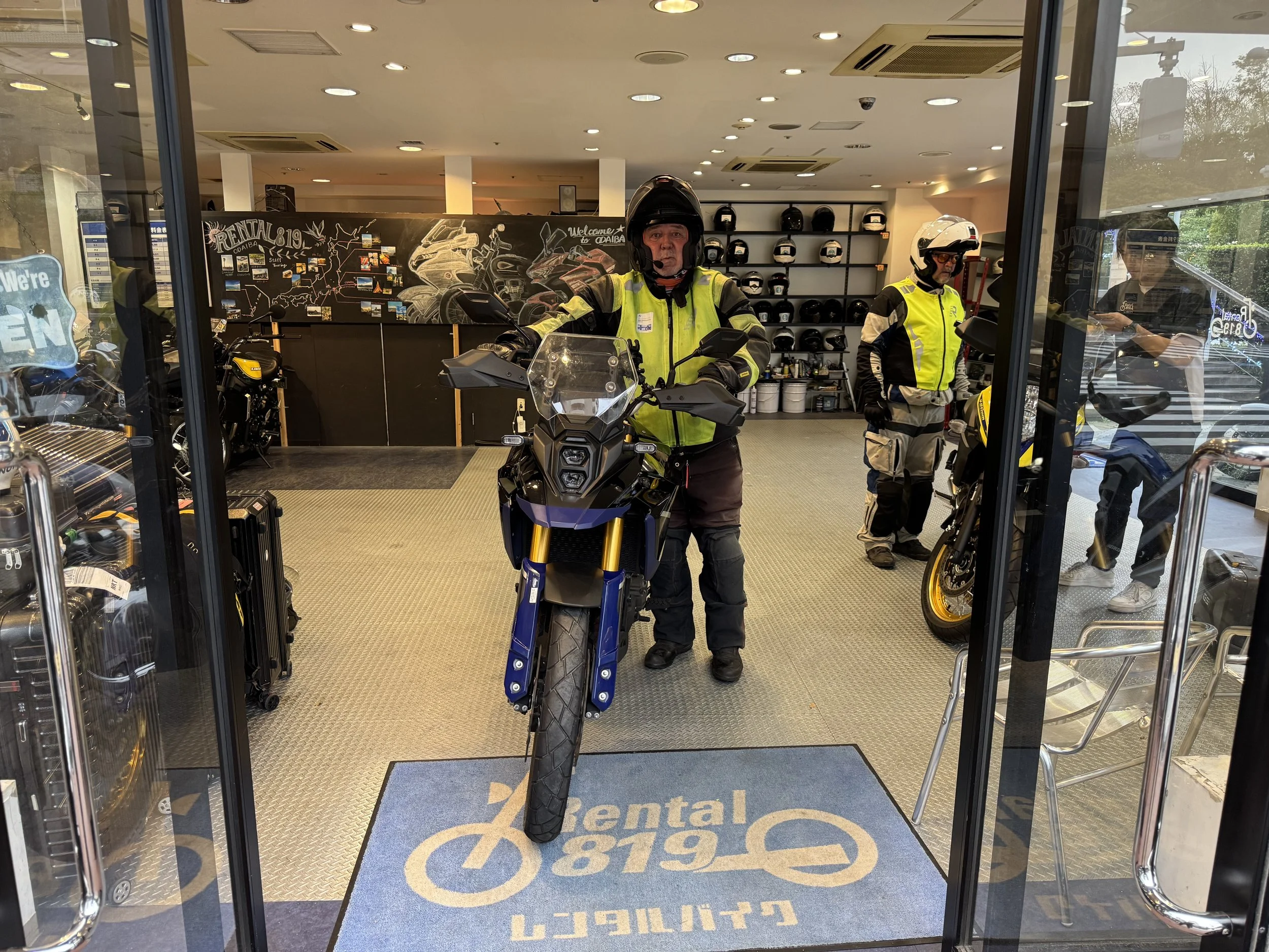 Viimeiset pakkailut, ajovarusteet niskaan ja ylimääräiset kamat hotellin säilöön – tänne palataan vielä reissun lopussa. Kello lähestyy yhdeksää, kypärät menee päähän ja koneet hörähtää käyntiin parkkihallin hämärässä. Ulos ja suoraan Tokion liikenteeseen. Ensimmäiset minuutit ovat aina pieni totuttelu: vasemmanpuoleinen liikenne, peilit, vilkut, rytmi. Pari korttelia, pari käännöstä ja oltiinkin jo isolla tiellä kohti kaupungin laitoja…