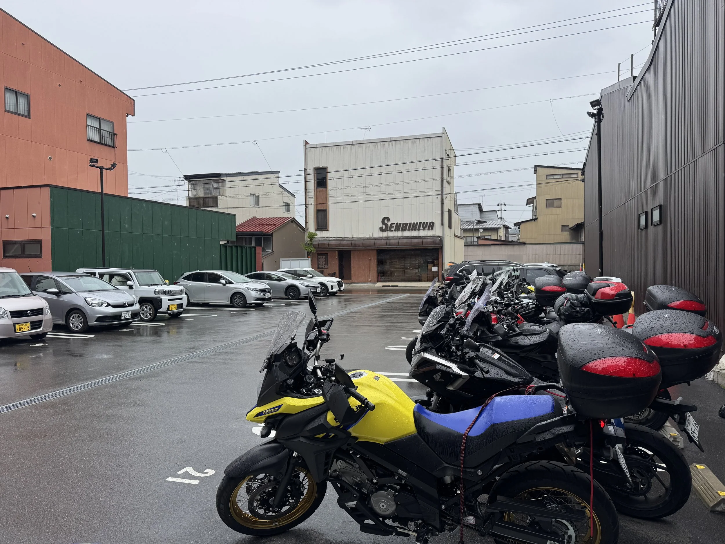 Useamman ajopäivän jälkeen tämä tuli juuri oikeaan kohtaan. Ei herätyskelloa, ei aikatauluja – pelkkä rauhallinen aamu vuoristokylässä. Ajovarusteet saivat kuivua eilisen sateen jäljiltä, ja hotellin pyykkikoneet lauloivat aamusta asti, kun porukka pesi vaatteita.