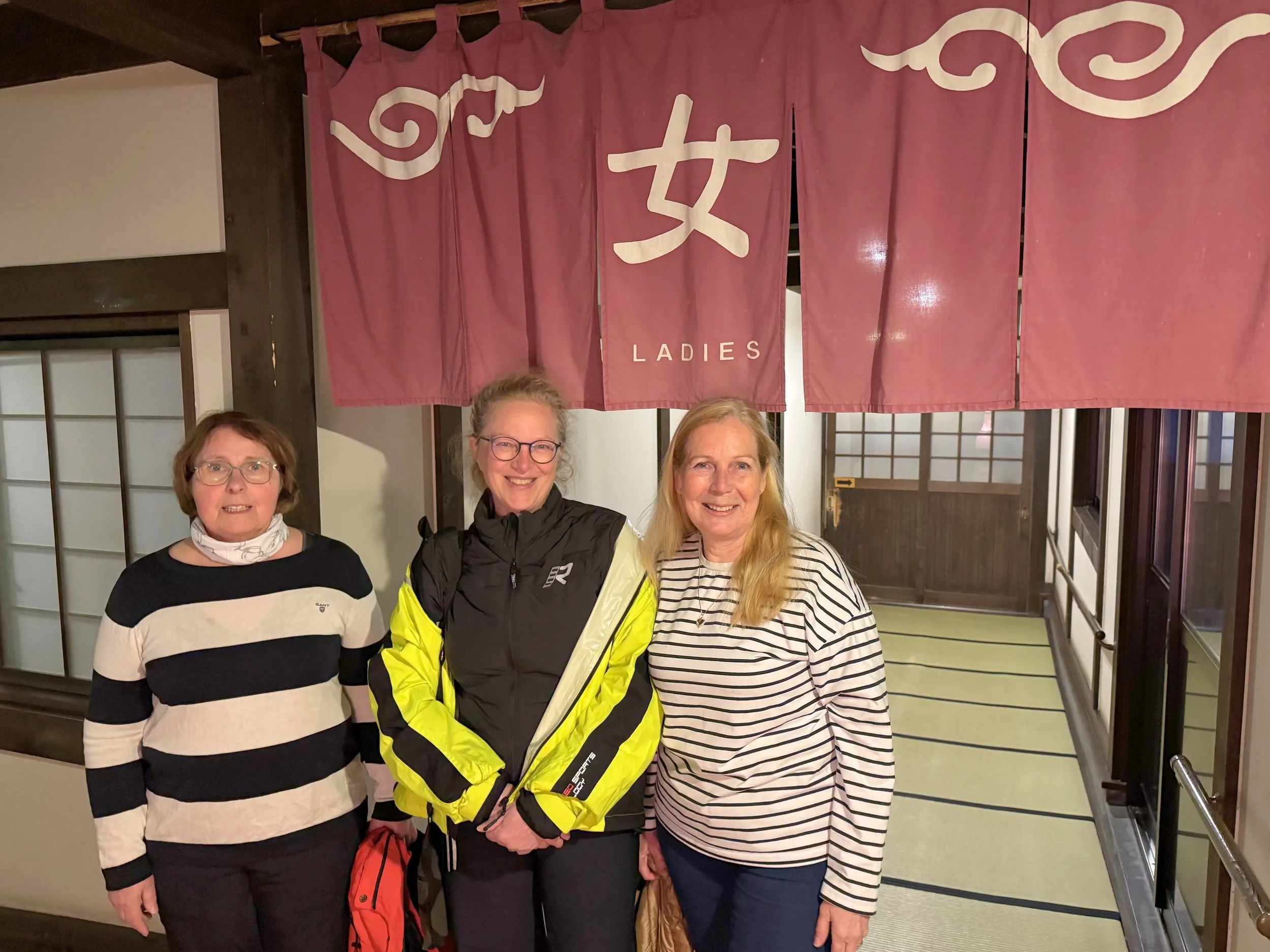 Enemmän tai vähemmän märkinä saavuttiin vihdoin perille perinteiseen onsen-ryokaniin Hirayun kylässä.