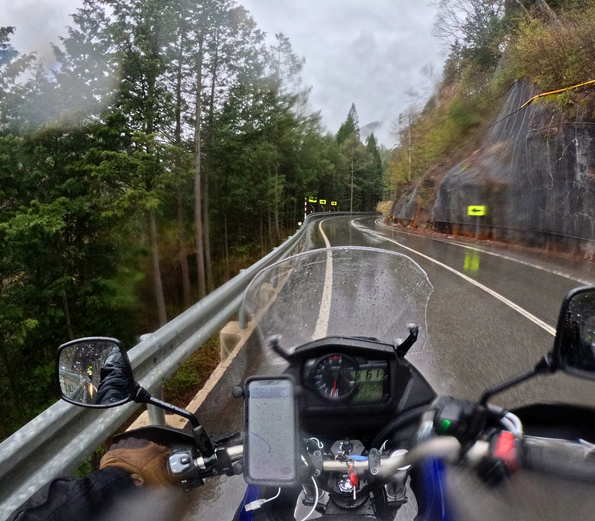 Mutta matkamotoristi ei valita. Jos sataa, niin ajetaan sateessa.