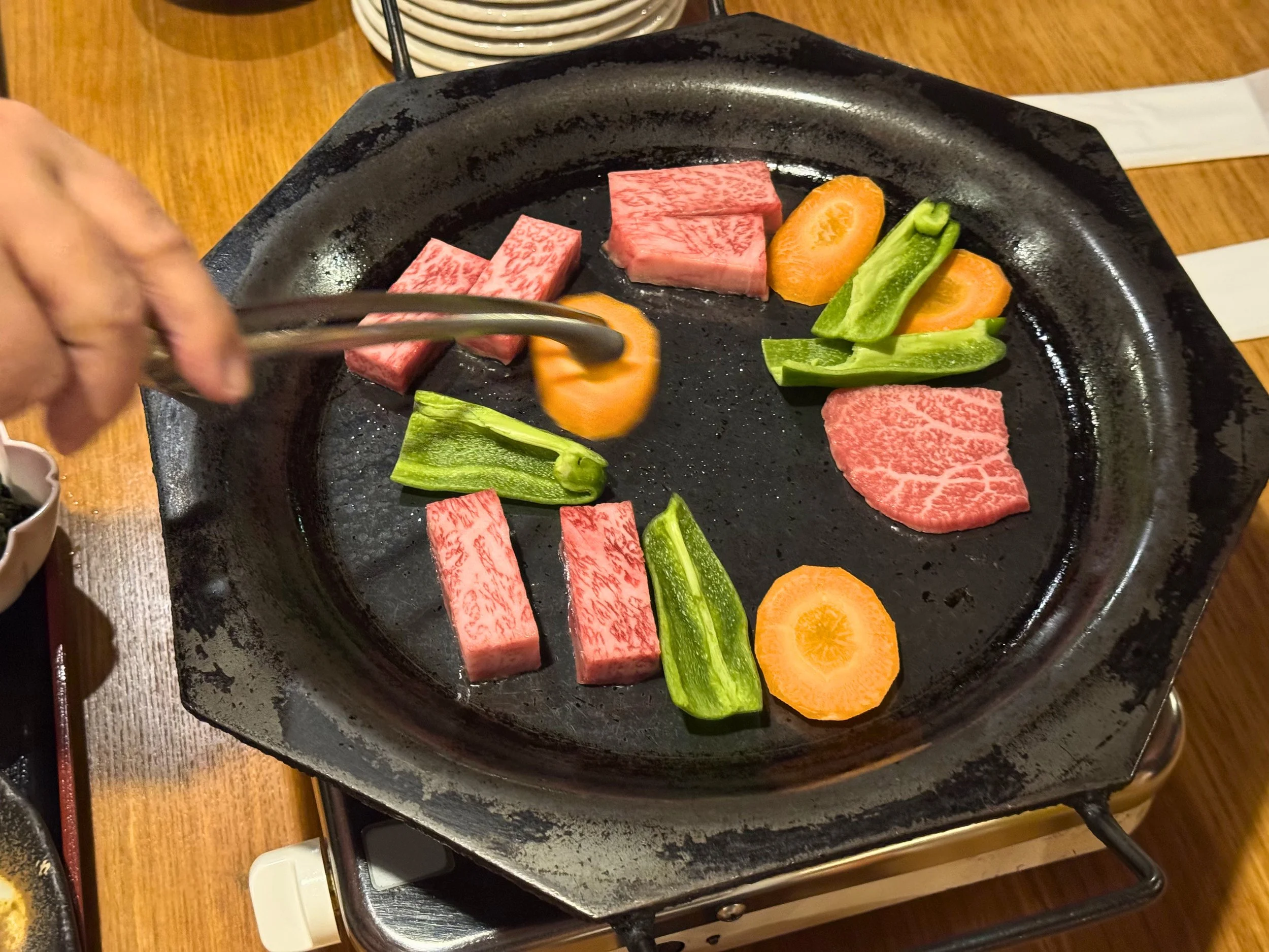 Illalliseksi löytyi oikein mukava ravintola, jossa liha paistettiin itse pöydässä kuumalla pannulla.