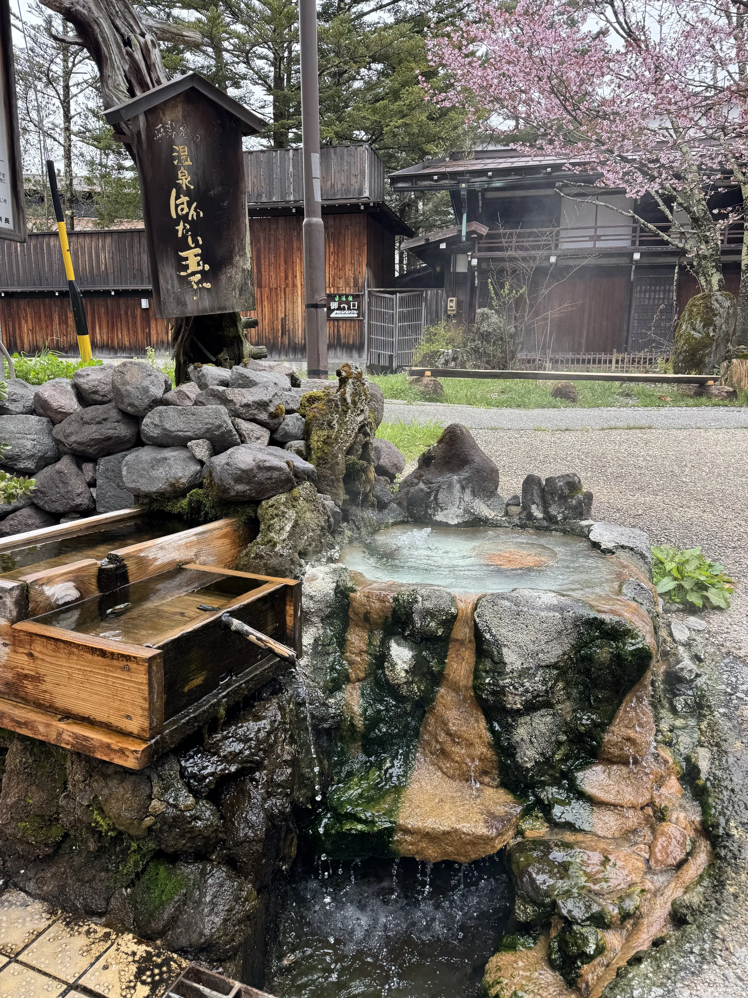 Kylä on elänyt vuosisatoja kuumien lähteidensä ympärillä. Onsenit ovat täällä luonnollisia, mineraalipitoisia lähteitä, joiden veden sanotaan auttavan lihasjännityksiin ja palautumiseen – juuri sitä, mitä sateisen ajopäivän jälkeen tarvittiin.