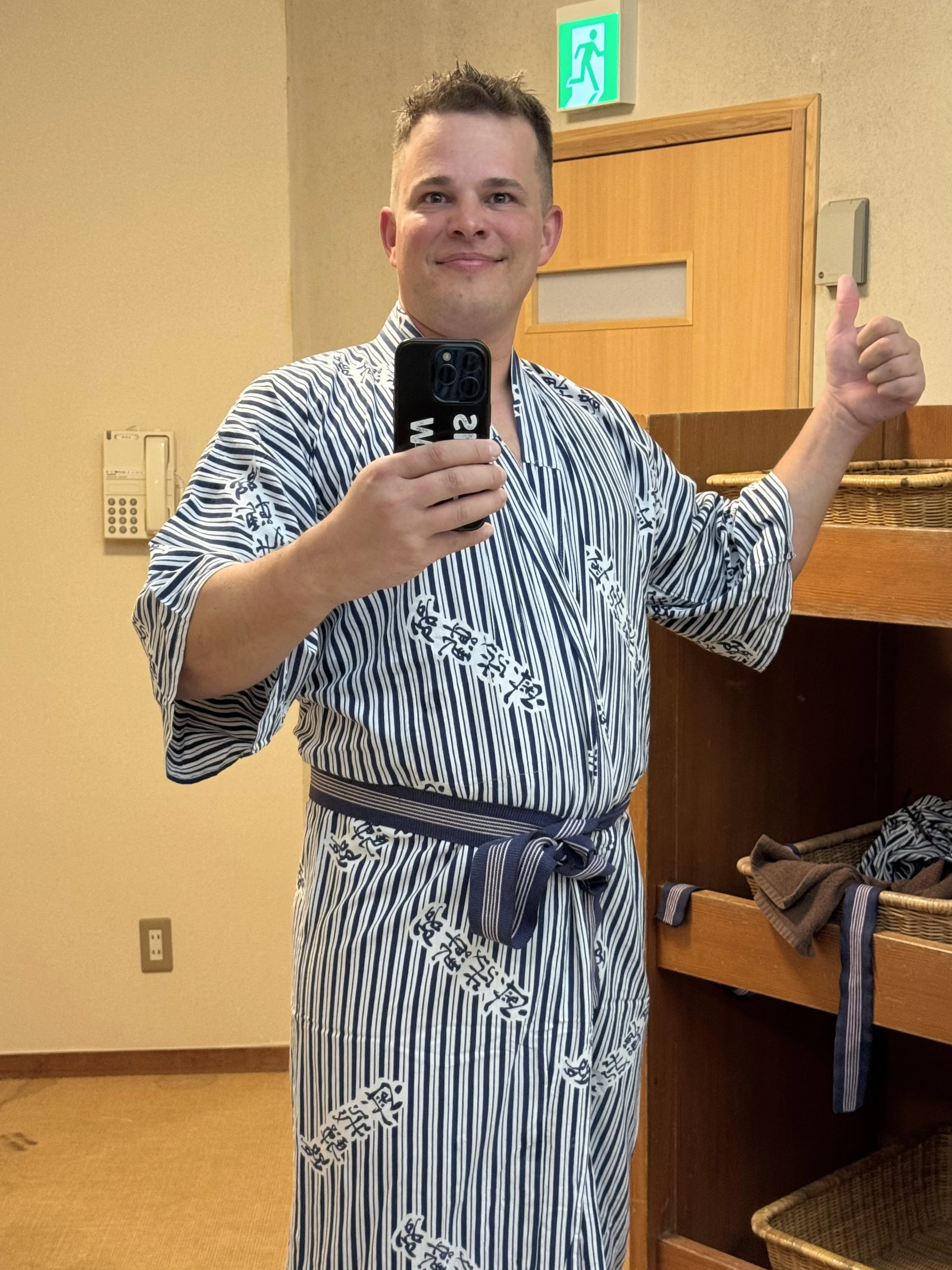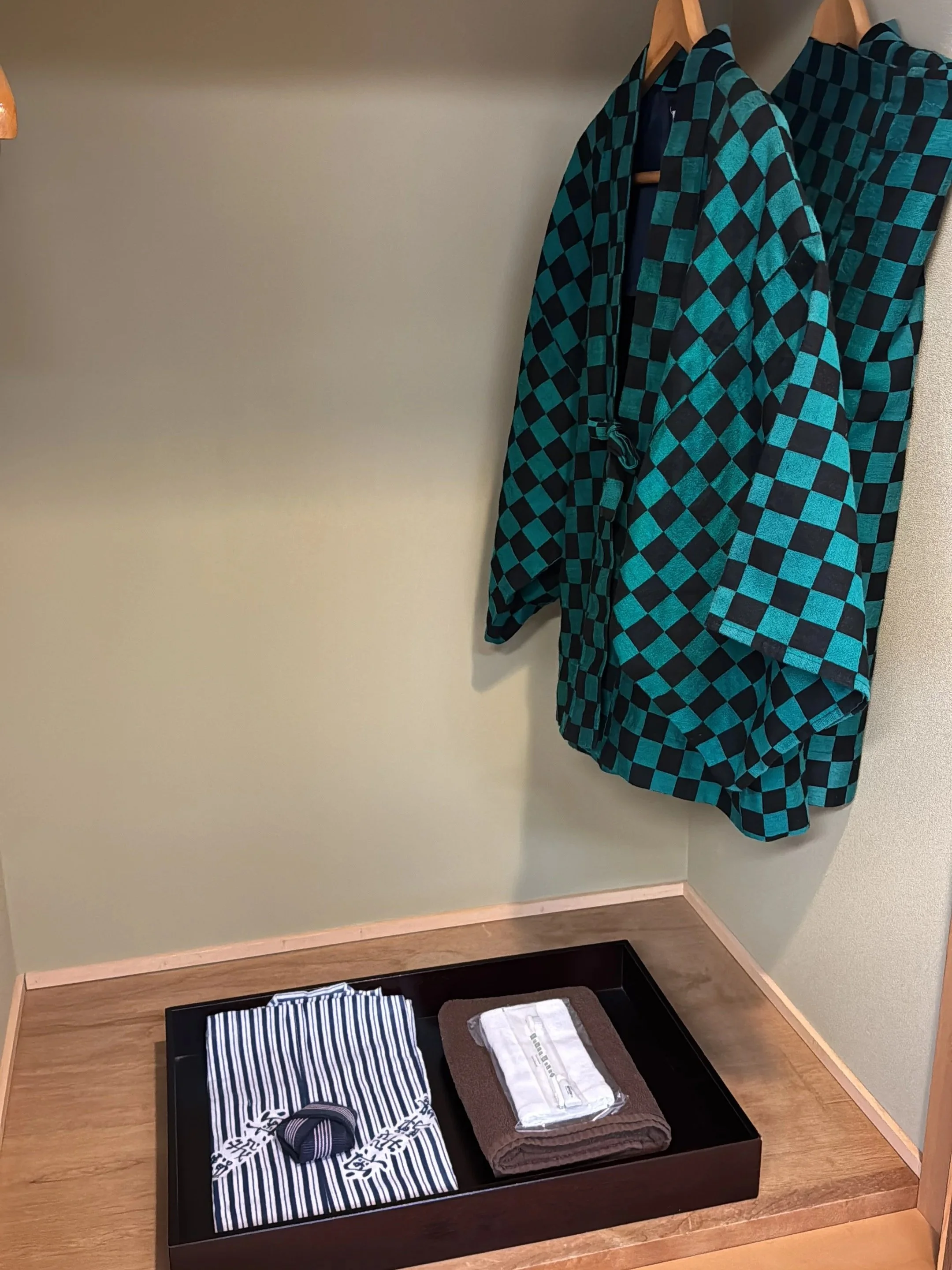 Vieraille tarjotaan yukata eli kevyt puuvillainen aamutakki, jota voi käyttää sekä huoneessa että onsenille mentäessä.