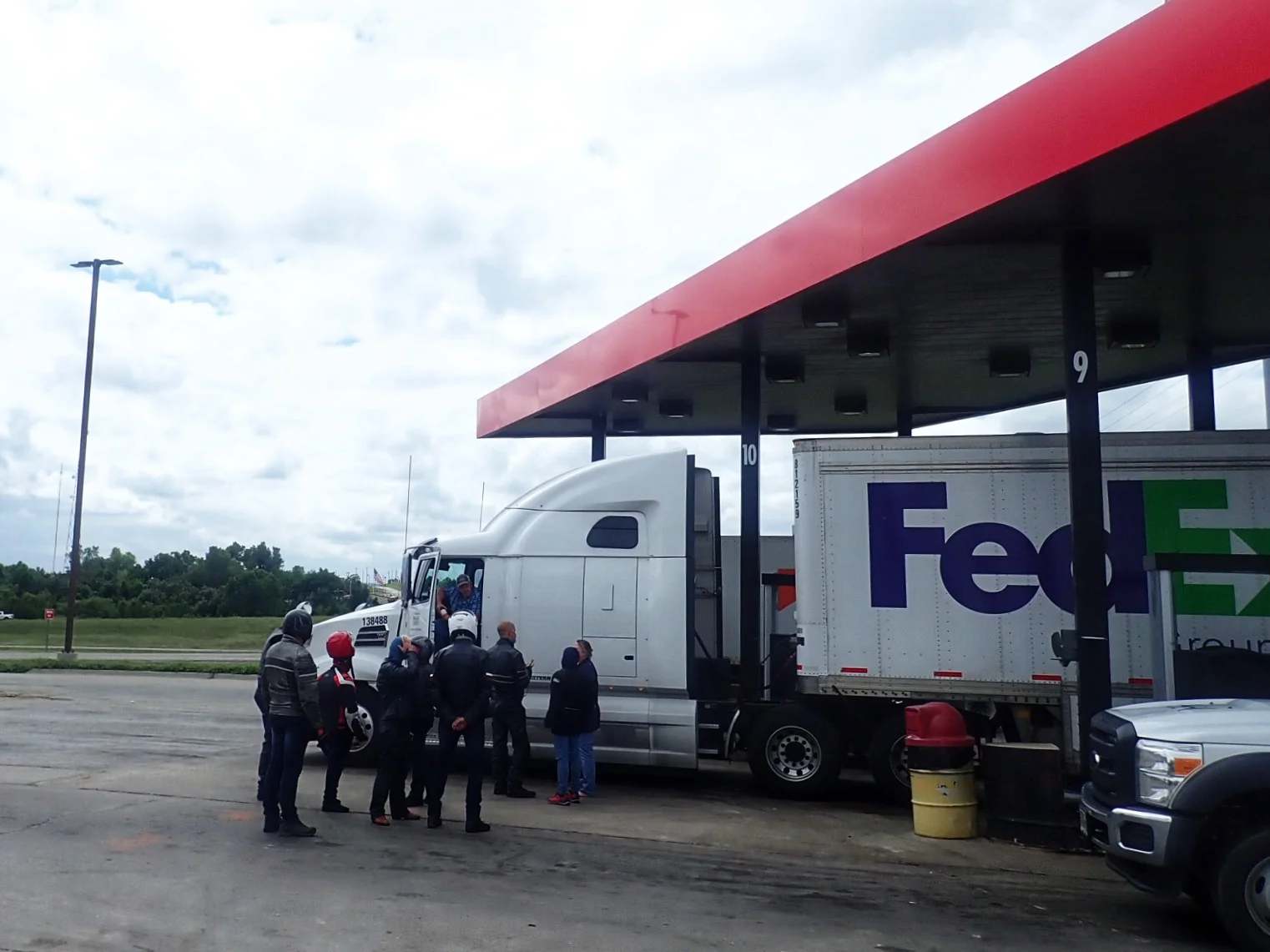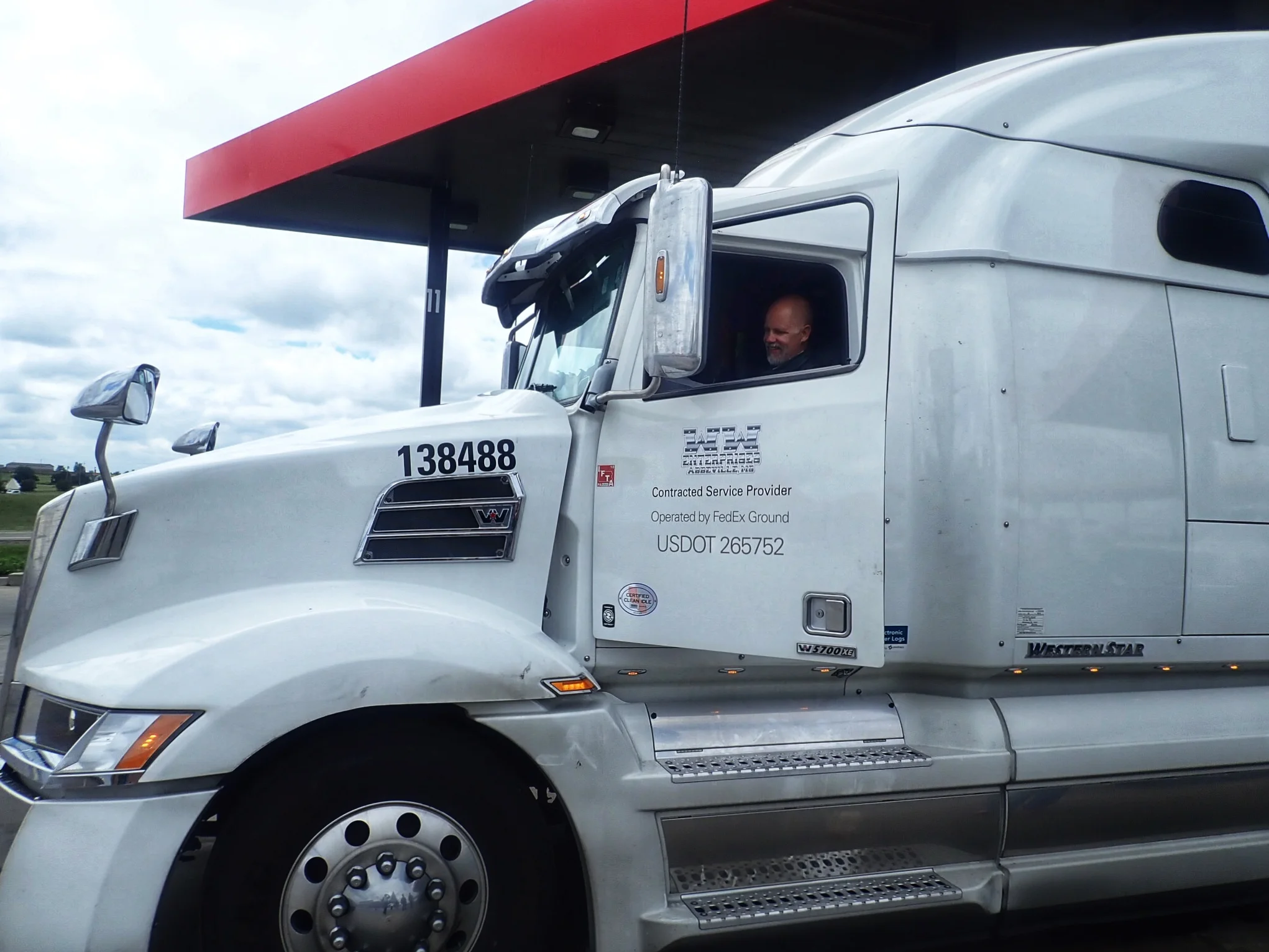 Tankkaustauon aikana jäimme ihmettelemään valtavaa FedExin rekkaa. Ystävällinen naiskuski tuli esille kabiinin uumenista ja kutsui meidät sisään katsomaan paikkoja :)
