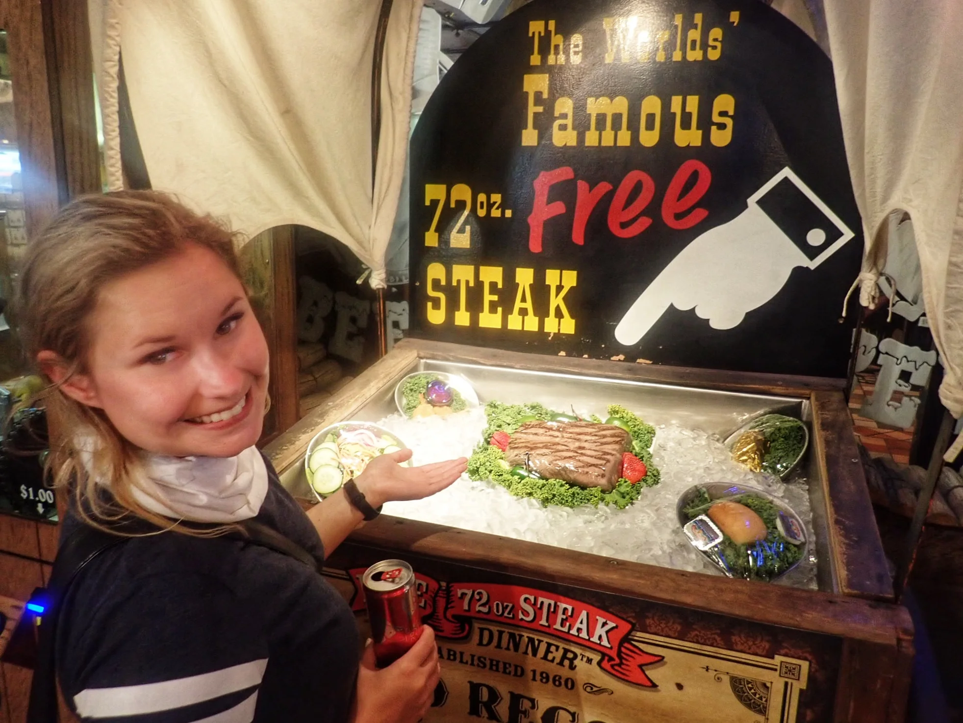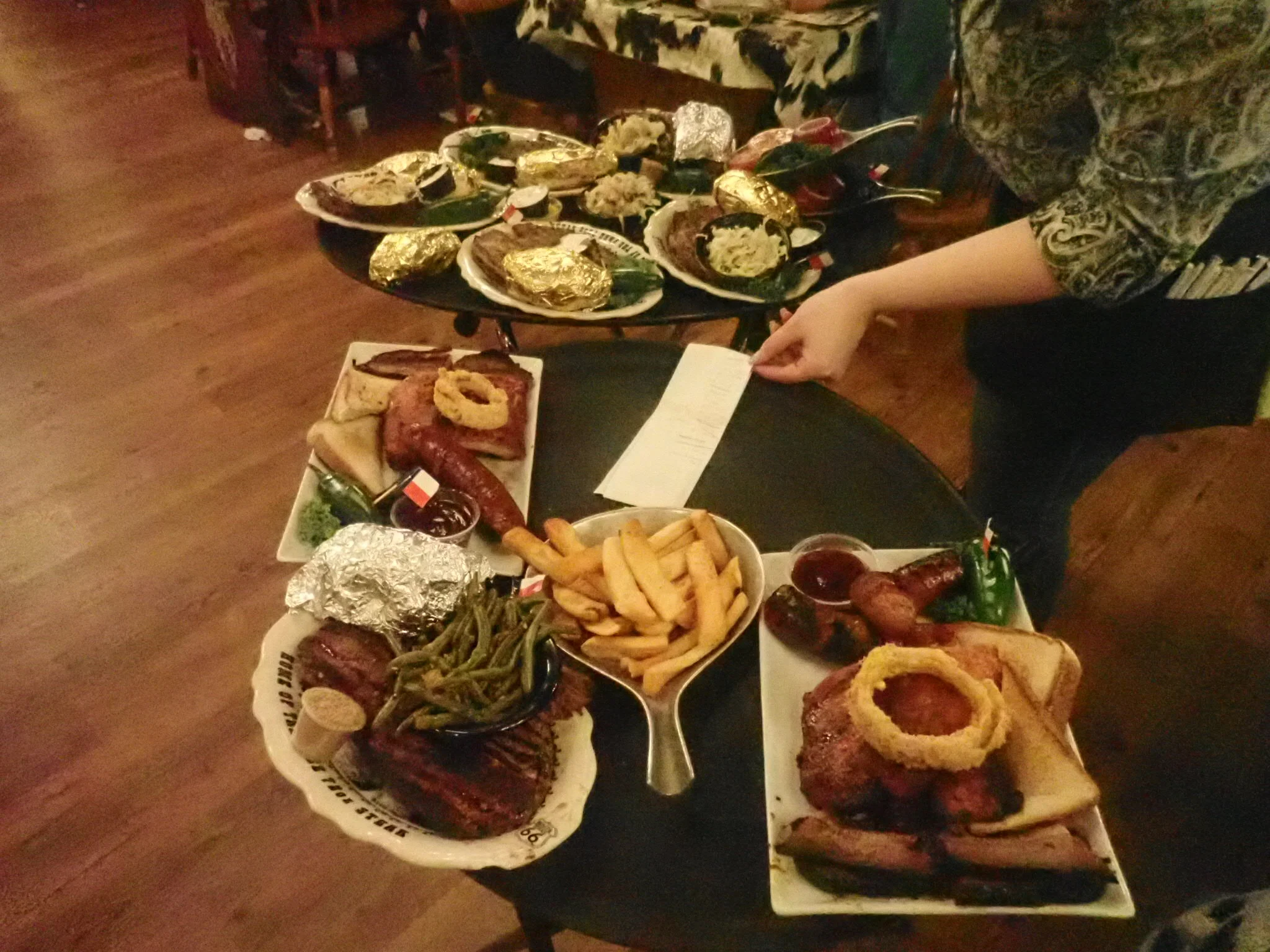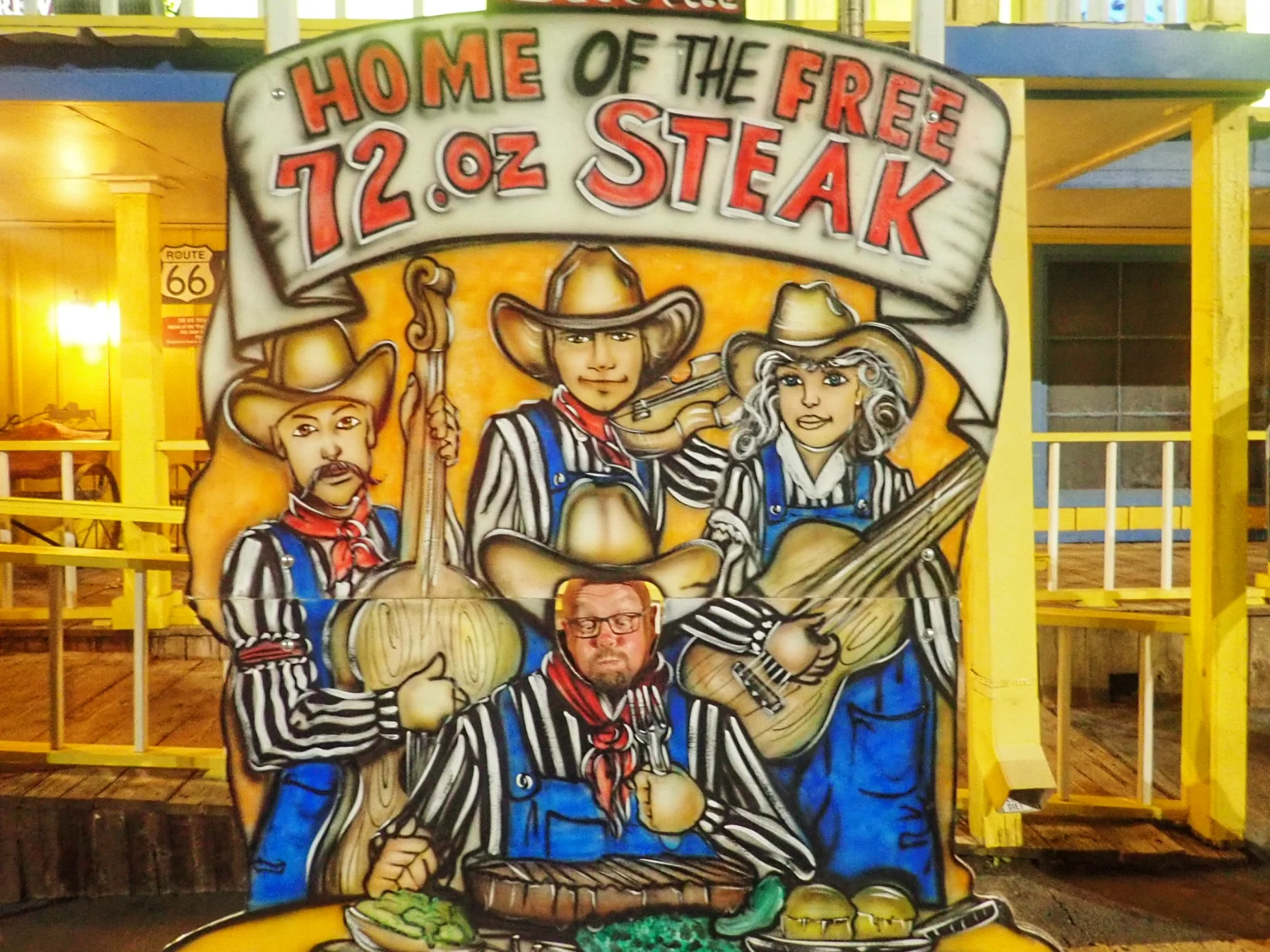 Big Texan on mielestäni vähän niin kuin Teksasin ruumillistuma - letkeä, rento ja äänekäs! Paikka on kuuluisaa 2 kilon pihvin haastesta - syö sen alle tunnin, niin ateria on ilmainen! Kaikista vakuutteluista ja “kot, kot, kot” kana äänistä huolimatta kukaan ei tälläkään kertaa uskaltanut ottaa haastetta vastaan, vaan tyydyimme lasten annoksiin. Puolen kilon pihveihin…