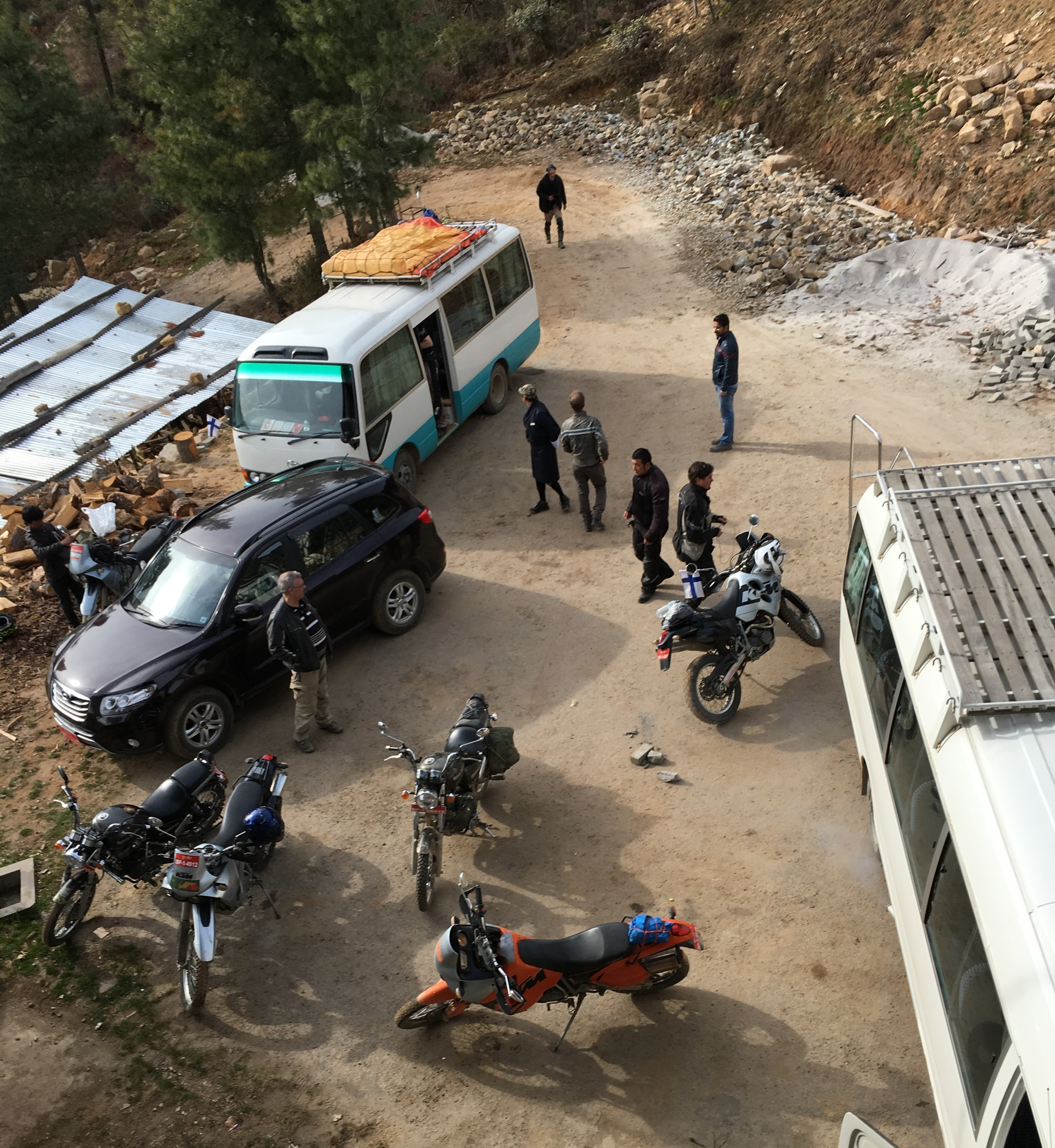 Pekalla alkoi eilen vähän turbulenssia vatsassa joten Pekka päätti tänään jäädä bussimieheksi. Paikallisopas otti yhden pyöristämme tosin minulle täksi päiväksi tulleen Enfieldin takavanne sanoi alkumatkasta sopimuksen irti joten se pyörä jäi korjattavaksi. Matka jatkui jälleen hienoissa maisemissa ja lähes koko matka tietyömaata.