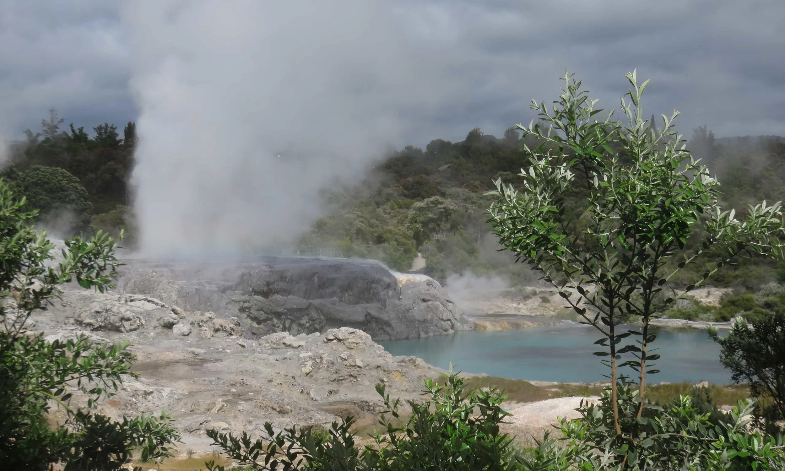 Herätyskello soi sisäisen kelloni mielestä liian aikaisin, mutta sepä ei moisesta mielipiteestä välitä. Jotakuinkin tasan 9am olemme Whakarevaravan portielle. Whakarevareva on Rotoruan asuttu terminen kylä, jossa ei ole pulaa kuumasta vedestä eikä lämmitys ole ongelma. Maa työntää uumenistaan kuumaa höyryä monilukuisista lähteistä 24/7. Kulttuuriryhmäni ei jaksa pitkään kuunella kuivahkoa opastamme kovinkaan pitkään vaan irtaudumme omille reiteillemme! Kotkalaiset hoitavat termisen kylän vartissa, meillä lopuilla menee vähän enemmän aikaa! :]