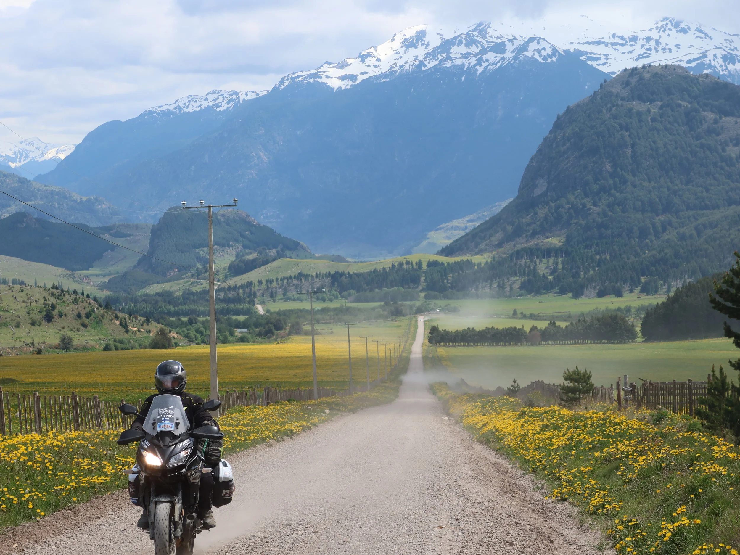 Bariloche jää peräpeileihin ja edessä avautuu Ruta 40:n parhaat palat. Andit kaasukahvan puolella aina rajalle asti ja taas Chileen. Rajat ovat näillä seuduilla Chilen ja Argentiinan välillä erittäin nopeat ja sujuvat! Yöksi jäämme Futaleufun kansallispuiston juurelle.