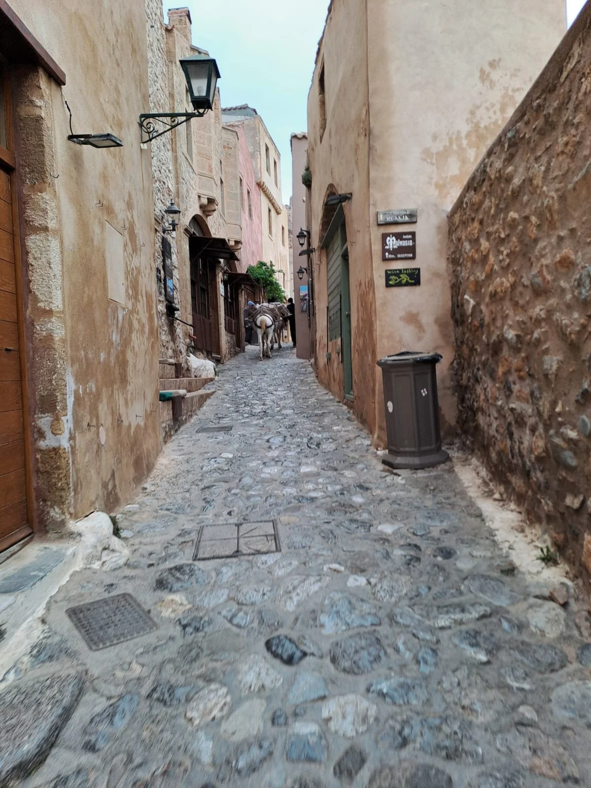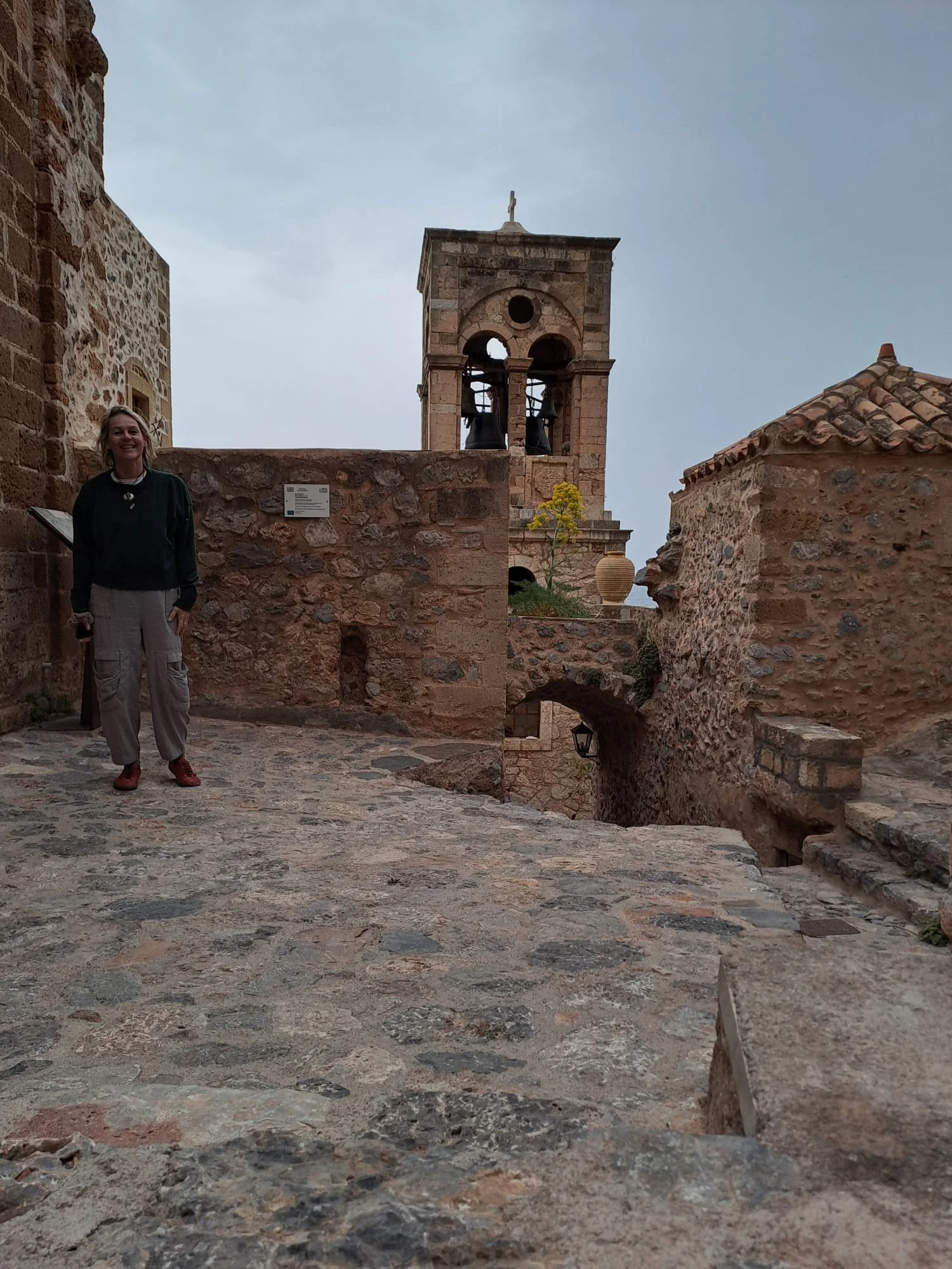 Määränpäänä on tänään Monemvasian linnoituskaupunki, joka sijaitsee Peloponnesoksen etelärannikolla. Matkalla pysähdyttiin pittoreskiin, myös kiipeilyreiteistään kuuluisaan Leonidion kylään. Seuraavana stoppina ennen lounasta oli kallion kylkeen rakennettu luostari Moni Elonis, josta toiset ostivat myös hunajaa kotiin viemiksi.