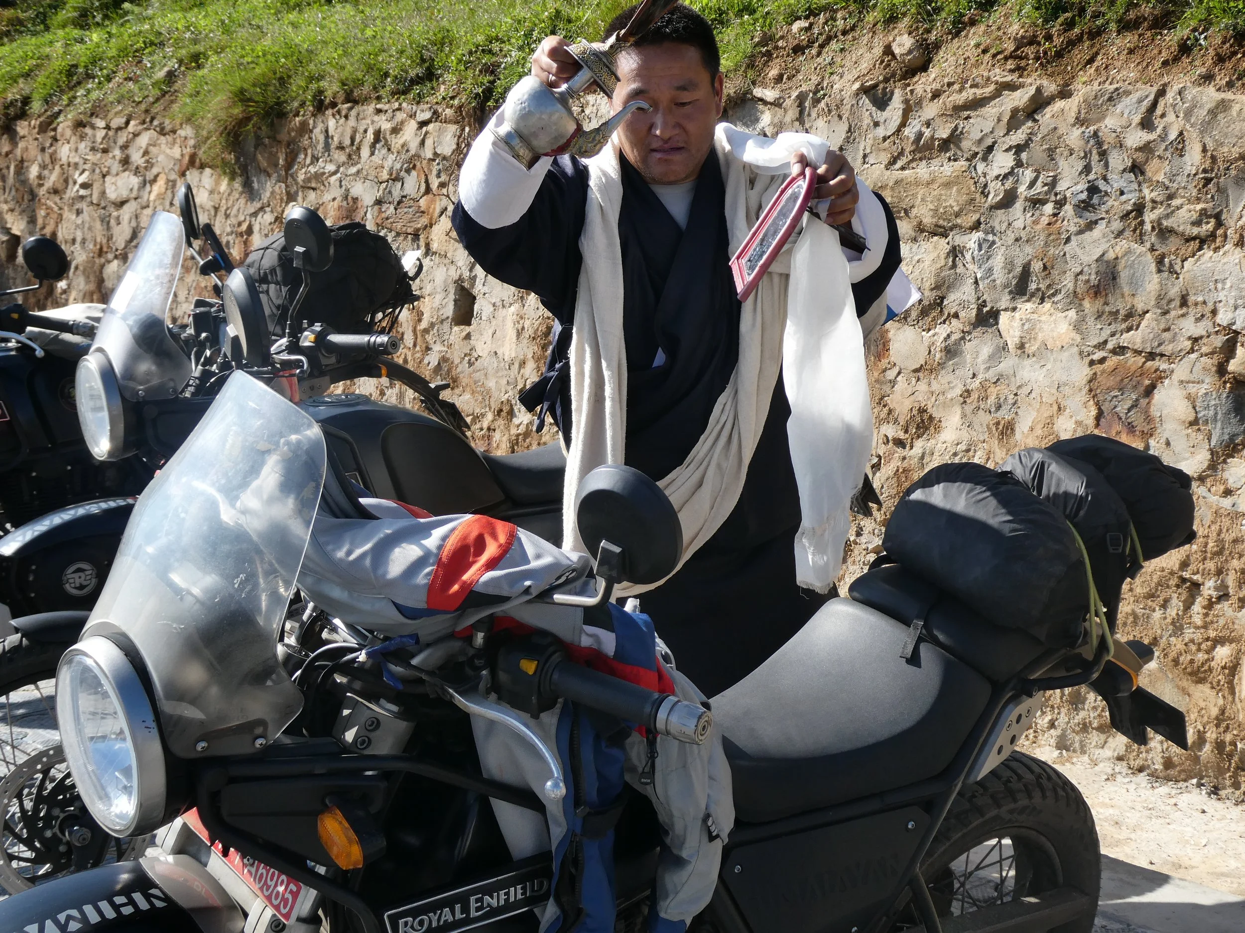 Bhutanissa ajokkina on kevyt ja toimiva allroad moottoripyörä – Royal Enfield Himalayan, jolla pitempikin matka taittuu laulaen, jopa kyytiläisen kanssa. Pyörän kone on LS410: yksisylinterinen nelitahtikone, josta irtoaa huikeat 24,5 hevosvoimaa!