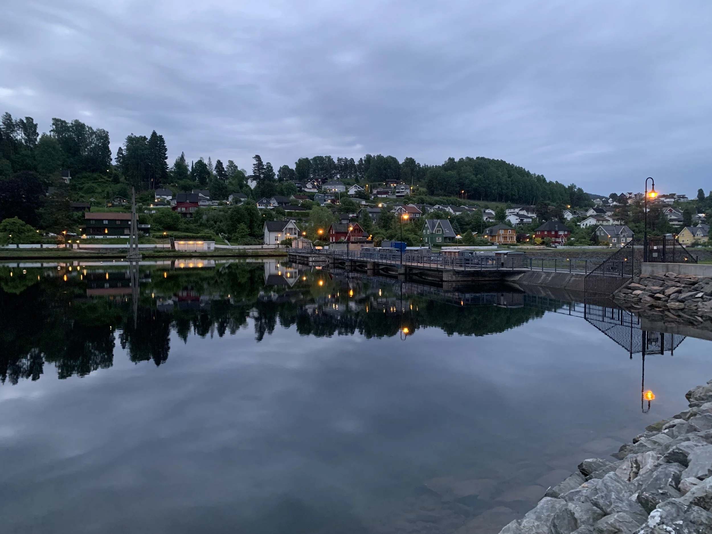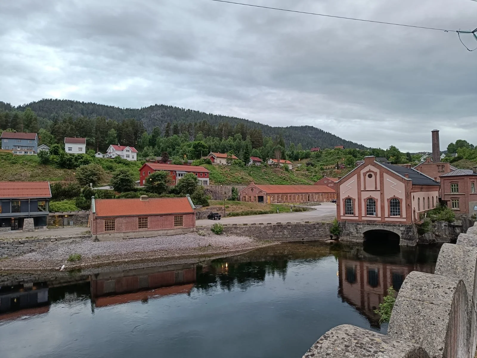 Illallisen jälkeen tehtiin noin tunnin kestänyt iltakävely, ja noustiin joen vartta kohti vanhaa ja nykyistäkin vesivoimalaitosta. Voimalaitos voi näyttää myös keskiaikaiselta linnalta, kuvassa linnan neito.