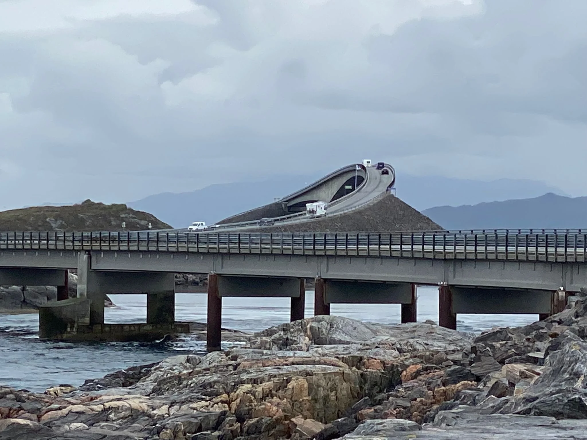 Se iki-kuuluisa Peikonpolku, Trollstigen koettiin tänään!  Samoin koettiin uusimman James Bond -elokuvan myötä saanut Atlantin tien kaareva silta sen hienosti kuvattuine kallioluoto- ja merimaisemineen.