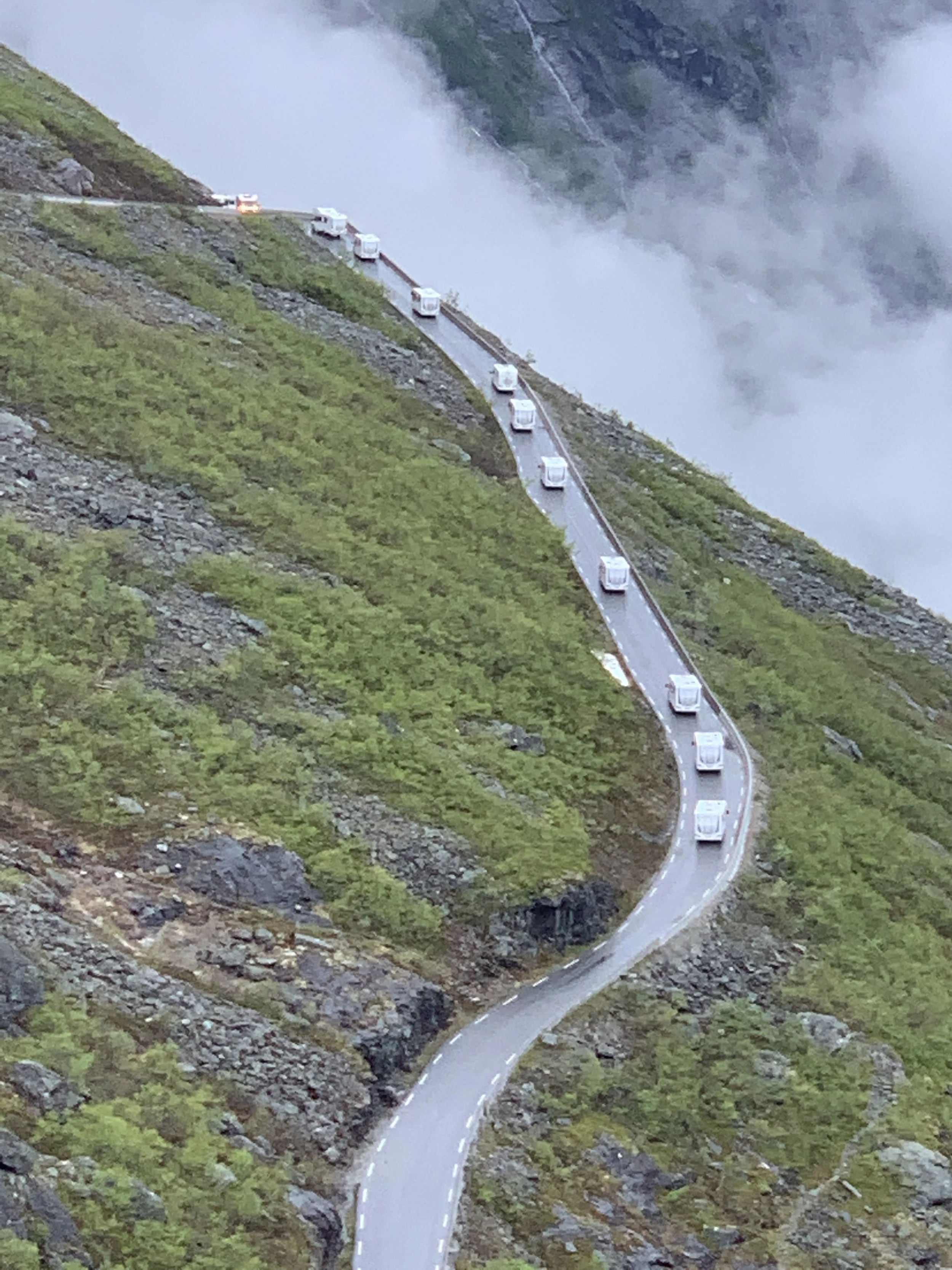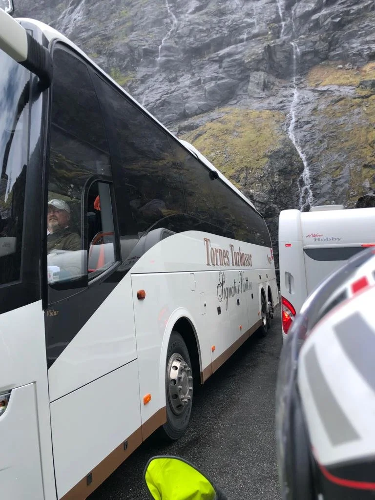 Olisiko peikko mennyt kuvassa näkyvää possujunaa piiloon, sillä turistikauden alkaessa näin kesäkuun puolivälissä matkailuautoja kulkee pitkin teitä kun muurahaisia konsanaan. Näistä moni kuski on toteuttamassa Norja -unelmaansa oman vuokra-matkailuauton puikoissa, ensimmäistä kertaa elämässään.