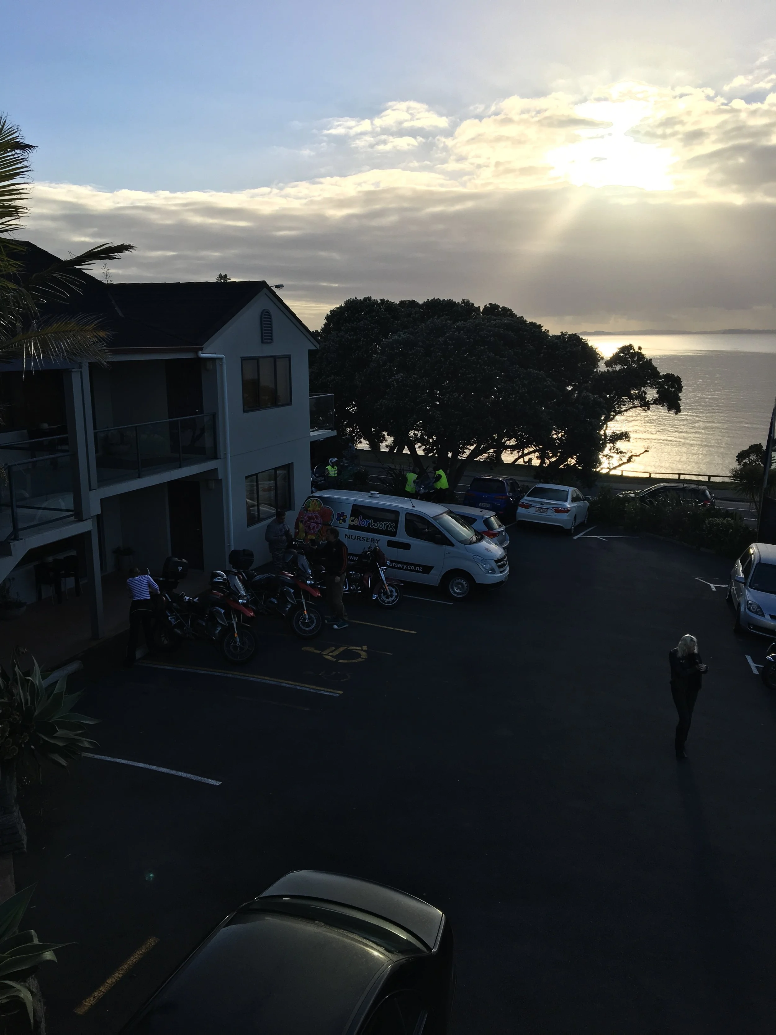 Edellisenä iltana järkeilimme, että Aucklandin kokoisen miljoonakaupungin läpi ajaminen voi ottaa aikaa, joten kannattaa lähteä ajoissa liikenteeseen.
